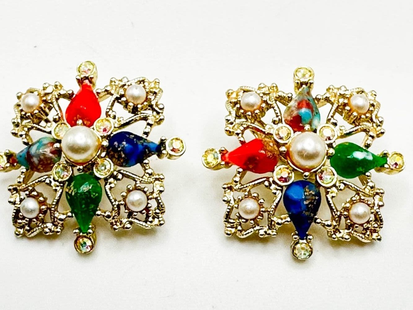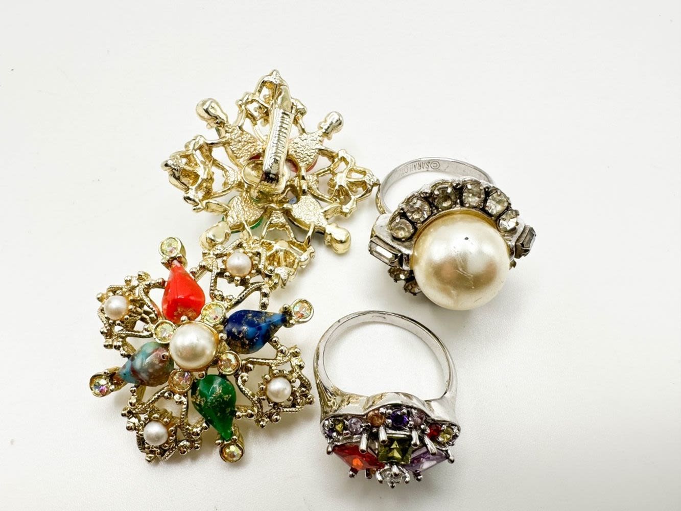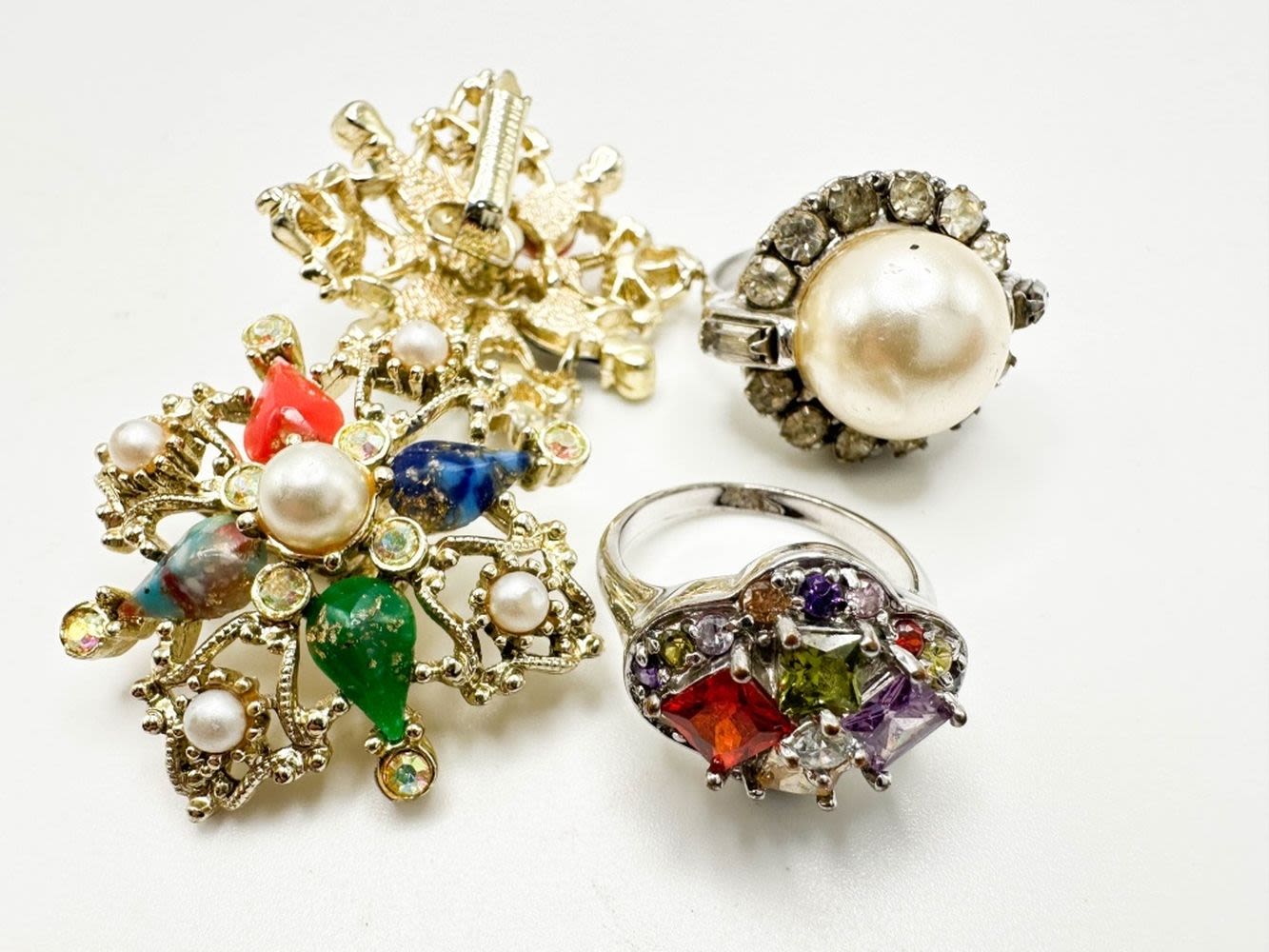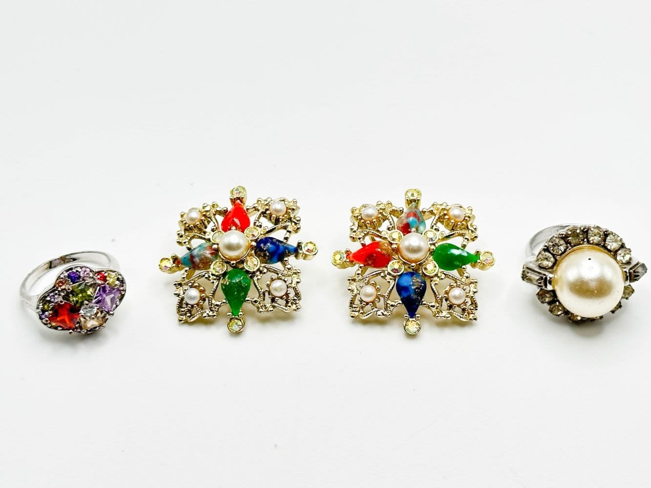 SARAH COVENTRY EARRINGS COLOR STONES AND SARAH COVENTRY LARGE Faux pearl ring and other color ring
