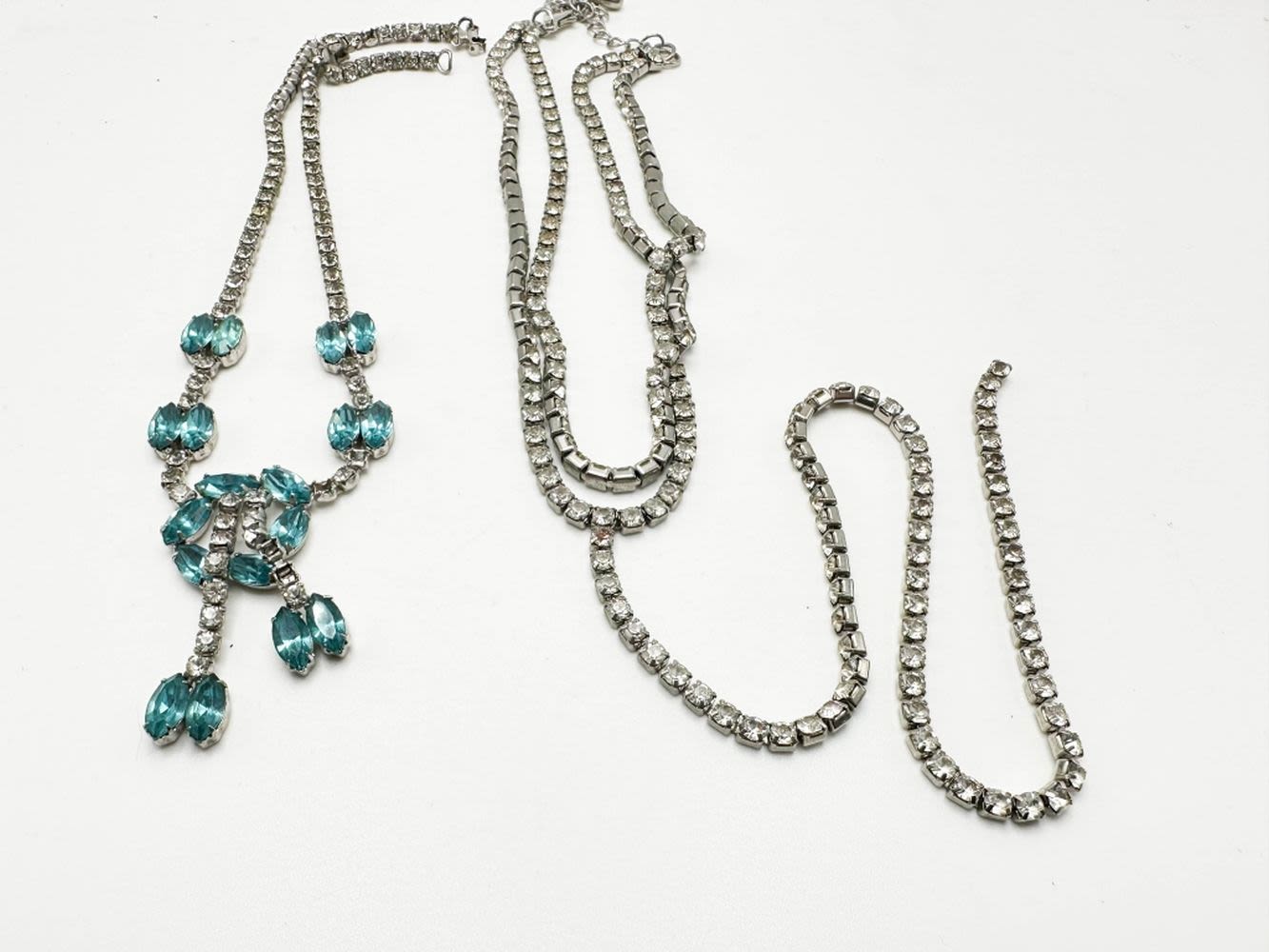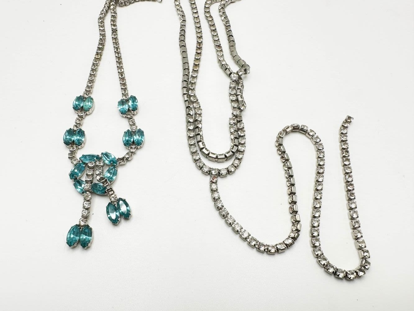 RHINESTONES NECKLACES, AQUA BLUE AND LARGE LONG SINGLE DANGLE