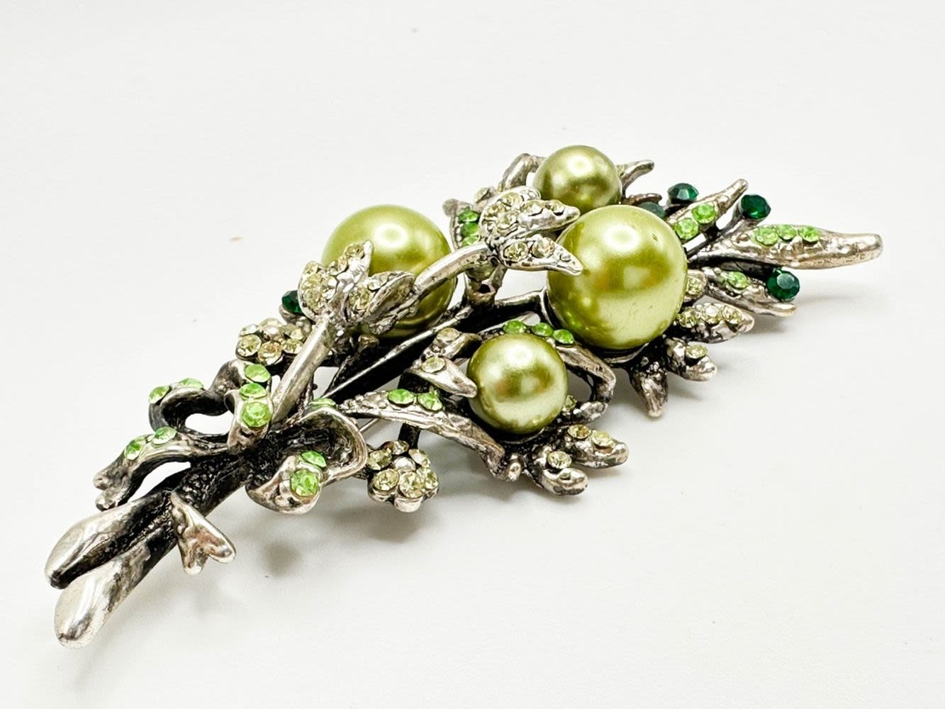 GREEN FLORAL SPRAY BROOCH