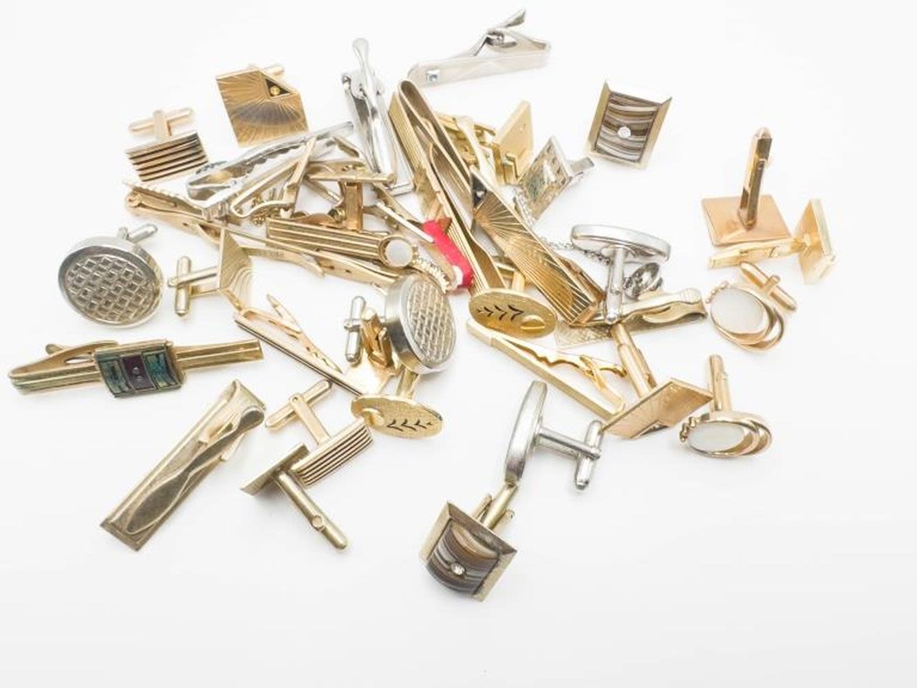 CUFF LINKS WITH STONES AND TIE CLIPS