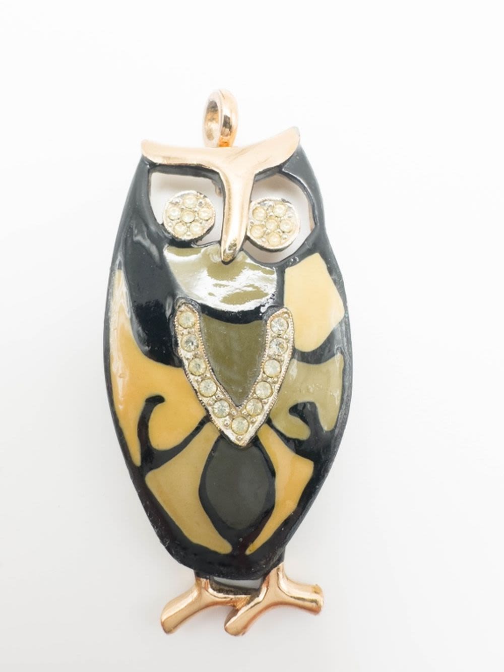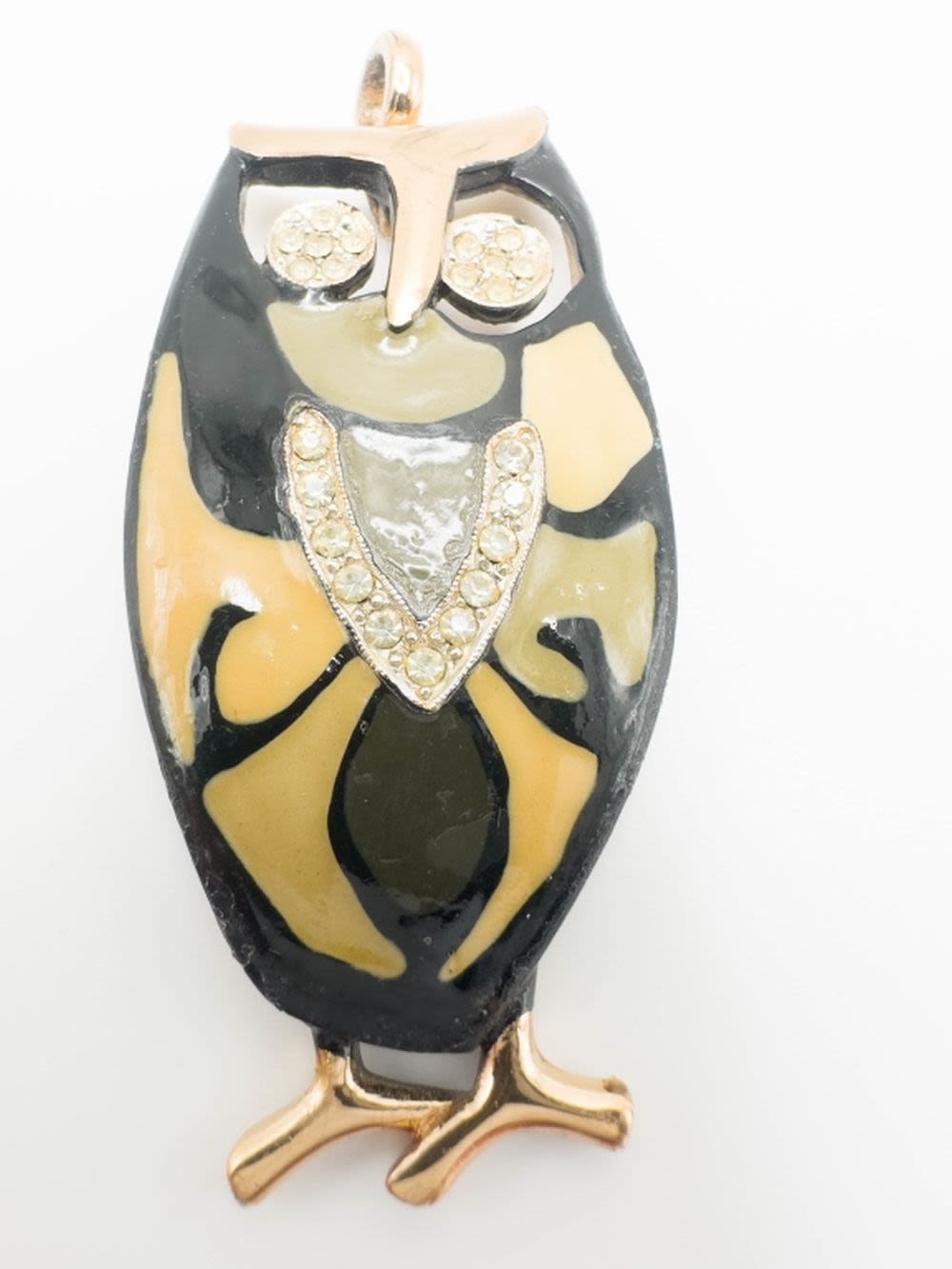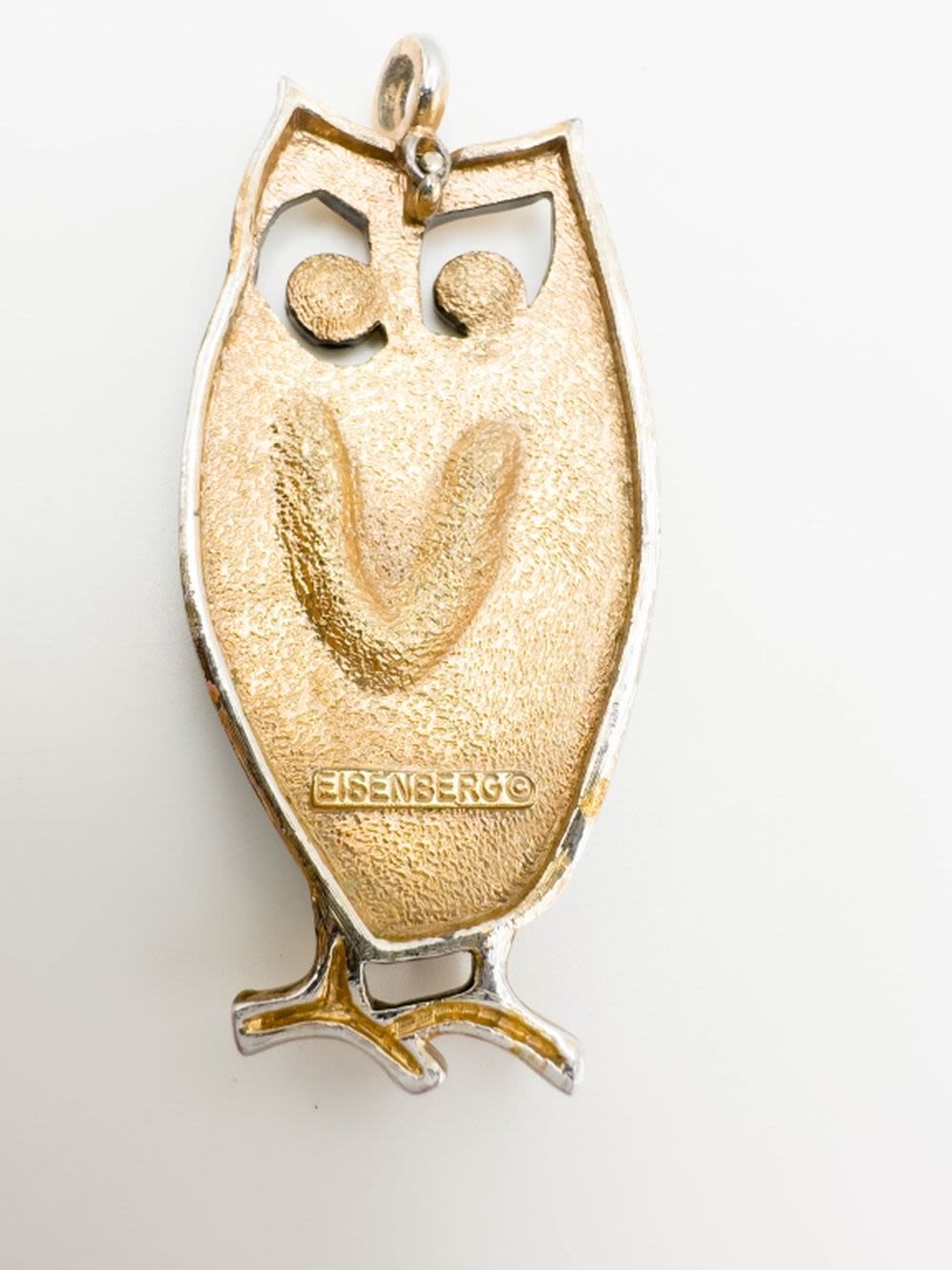 EISENBURG LARGE OWL PENDANT WITH STONES EYES AND CHEST , GOLD TONE HIGHLIGHTS