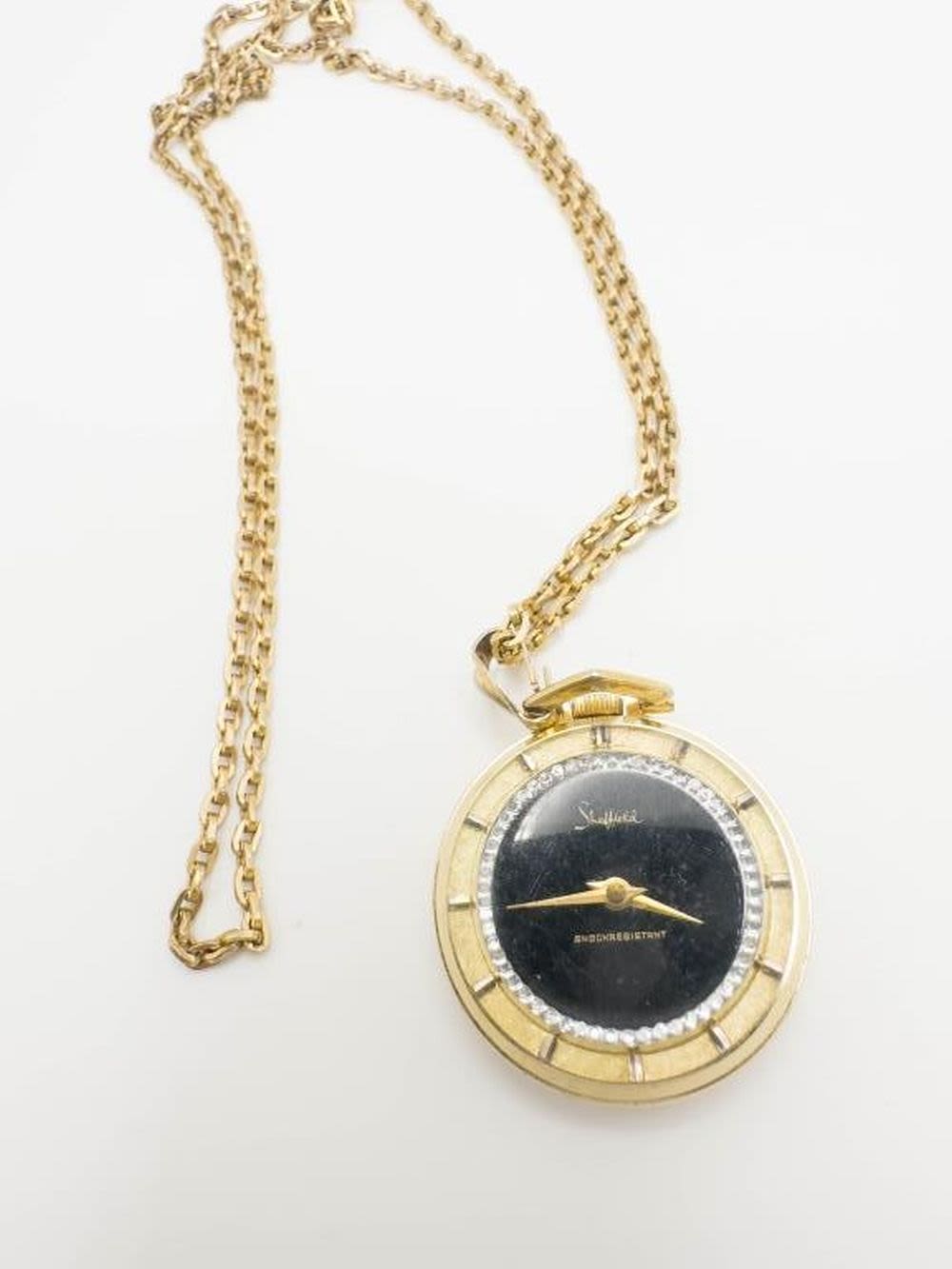 SHEFFIELD WATCH NECKLACES ON CHAIN WITH RHINESTONE SURROUND, NOT TESTED