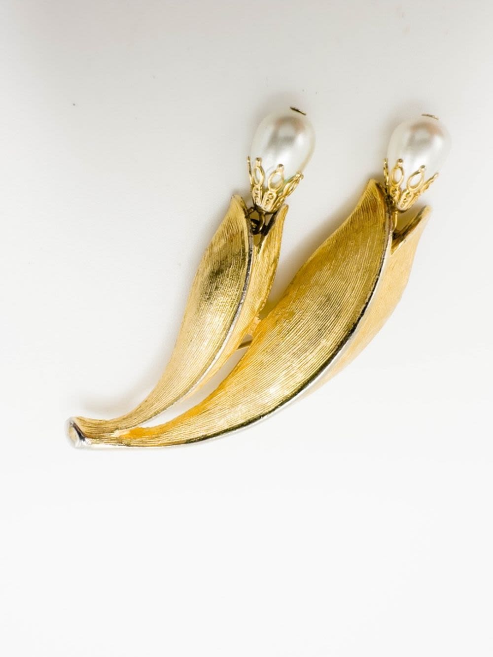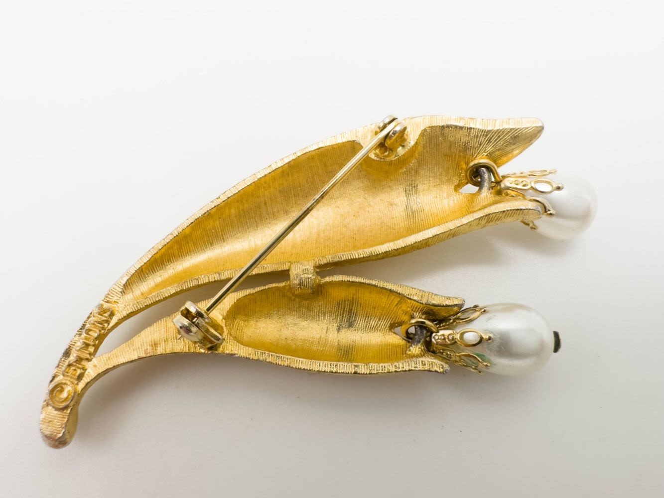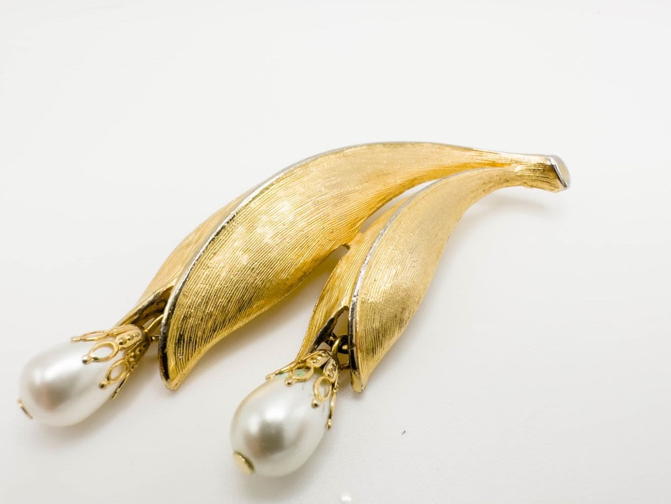 EMMONS SIGNED DOUBLE DANGLE FAUX PEARL BROOCH