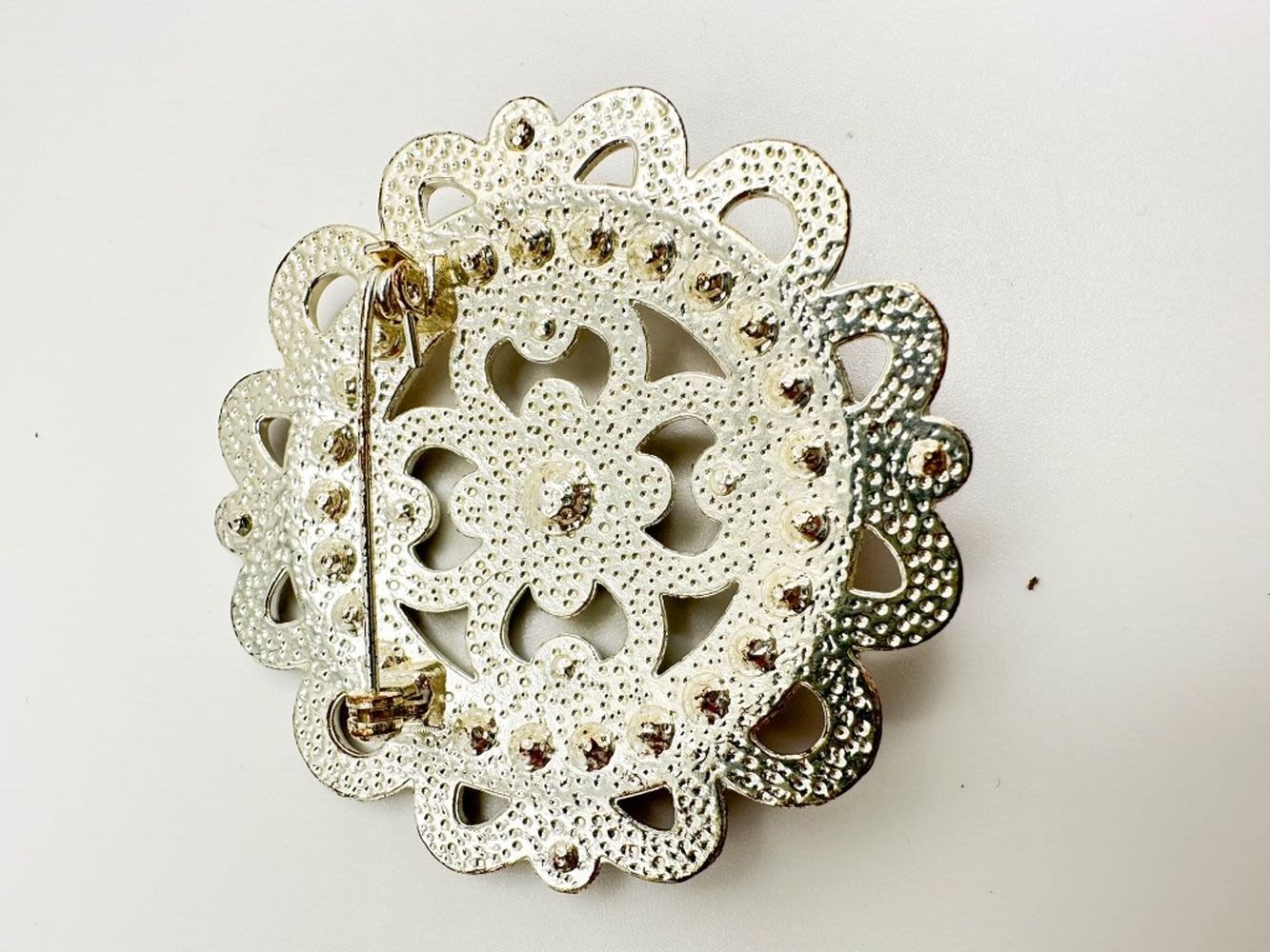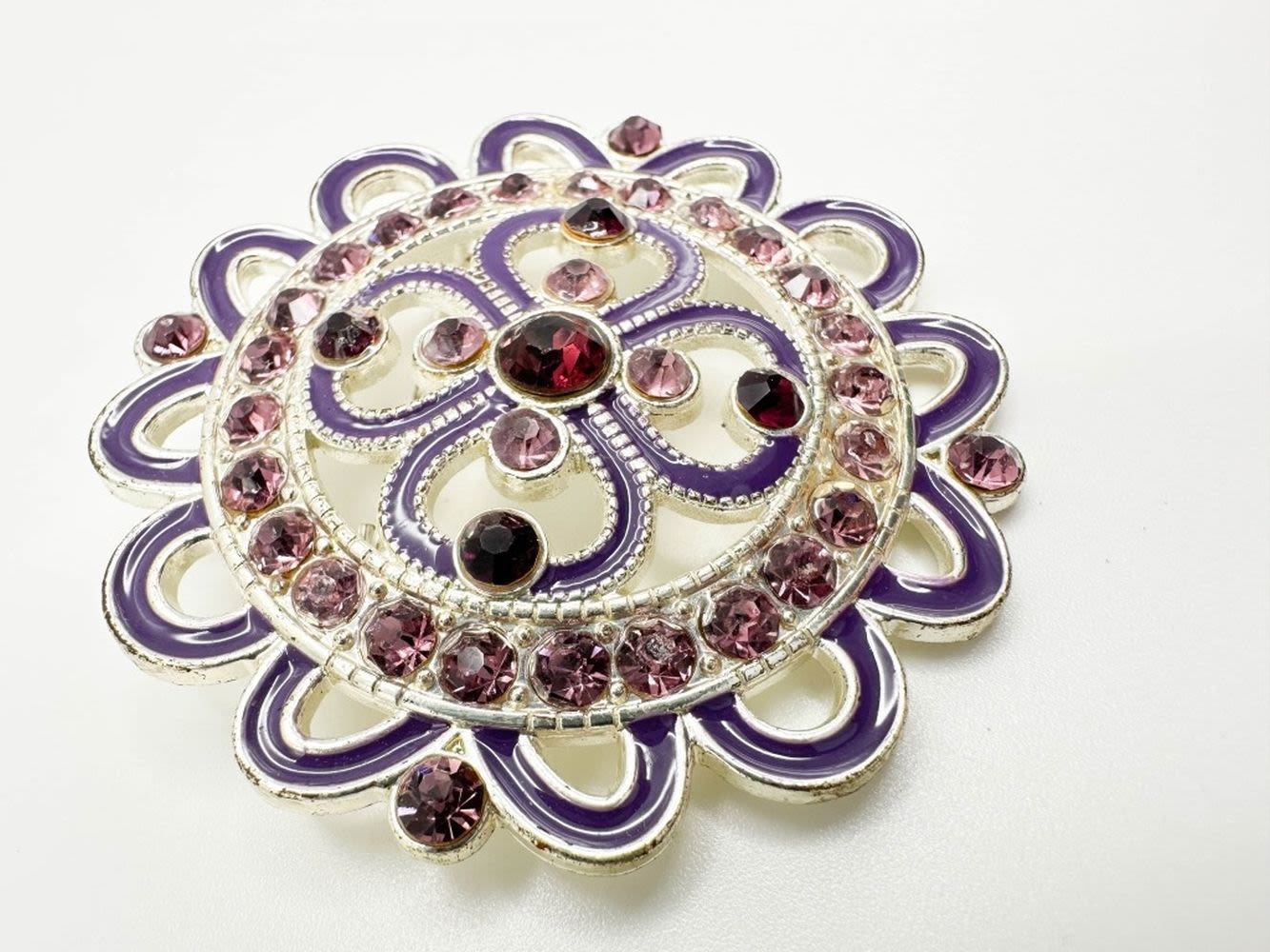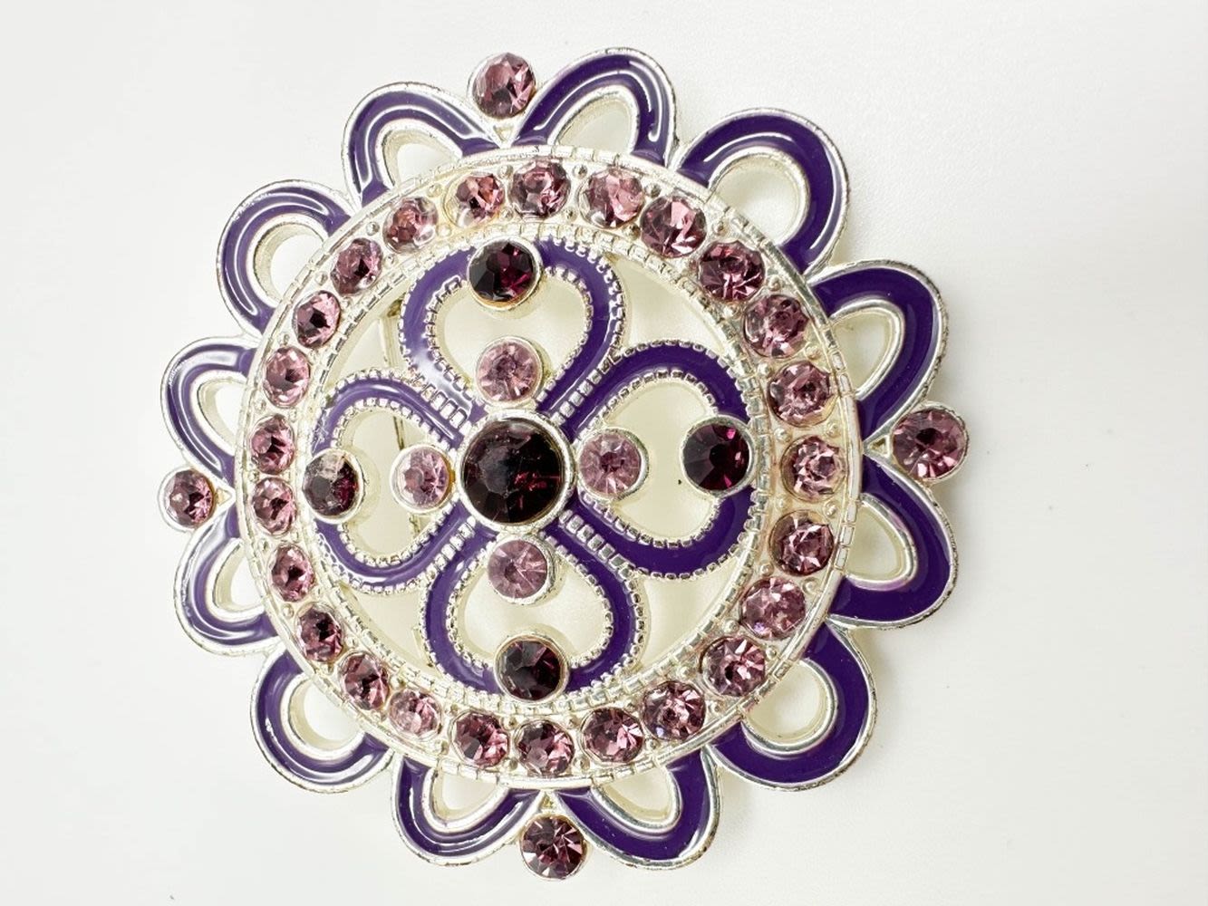 AMETHYST AND PINK STONE BROCH WITH WHITE BACK