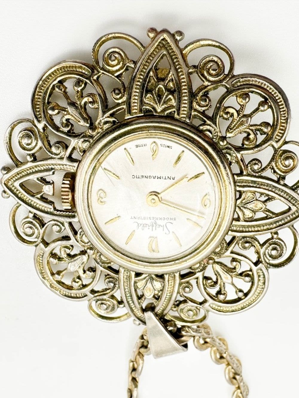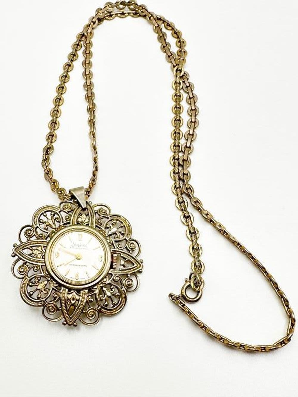 SHEFFIELD WATCH NECKLACES ON CHAIN WITH BROOCH CLIP, NOT TESTED