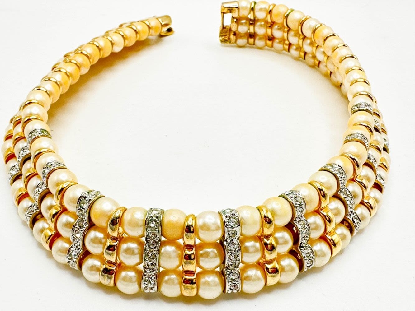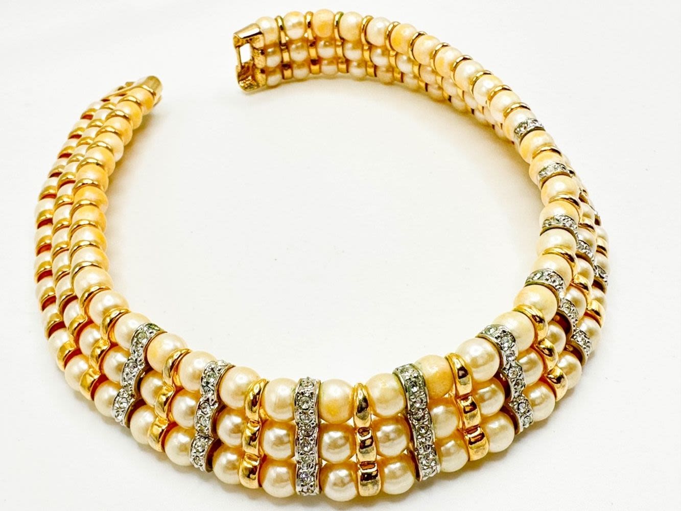 LARGE WIDE CHOKER NECKLACE IN FAUX PEARLS TRIPLE STRANDS