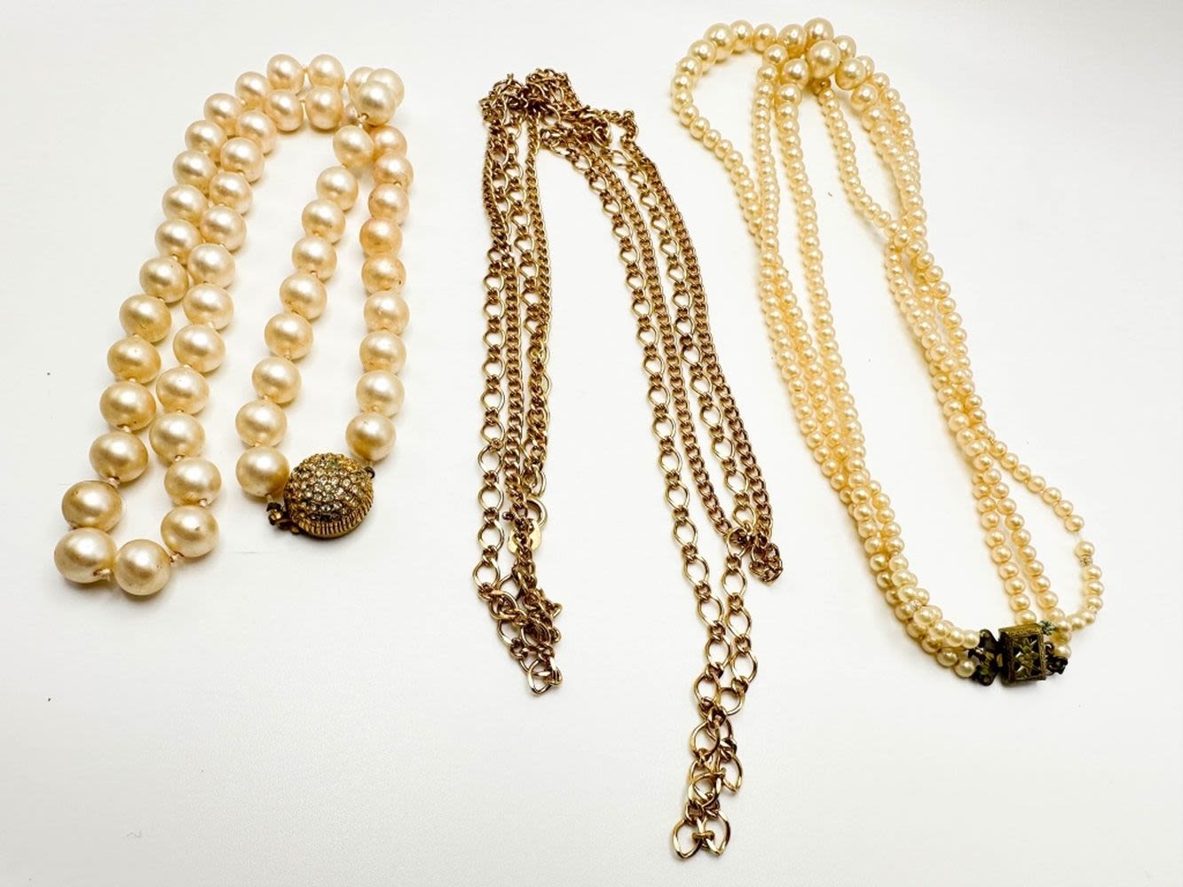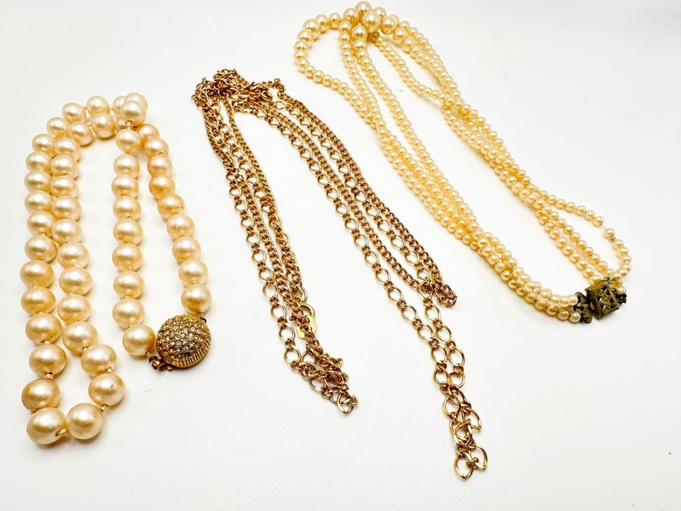 VINTAGE FAUX PEARL NECKLACES, ONE DOUBLE KNOT