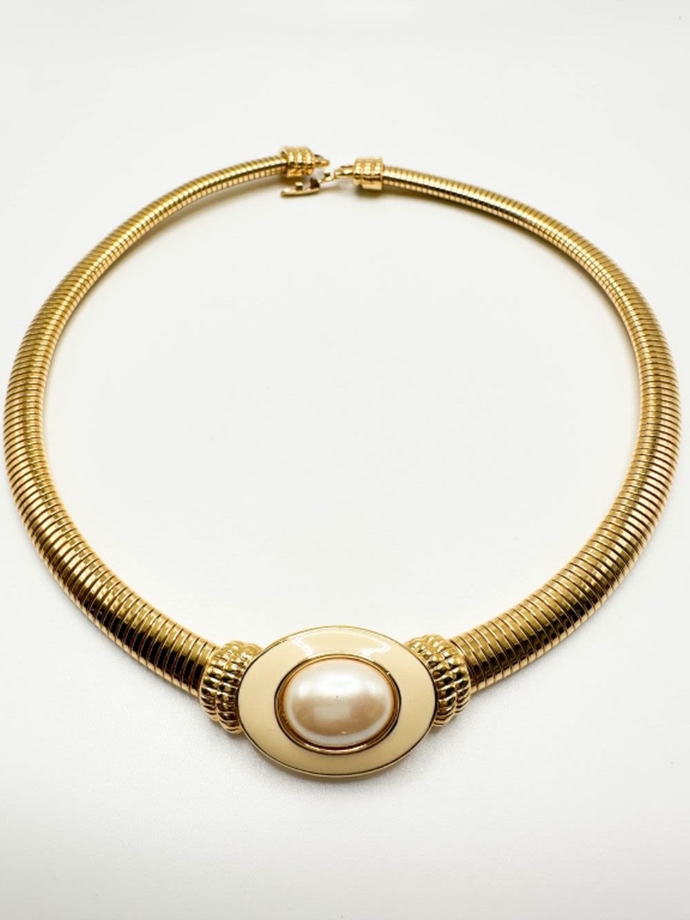 MONET SIGNED CHOKER NECKLACE WITH FAUX PEARL LARGE STONE SETTING