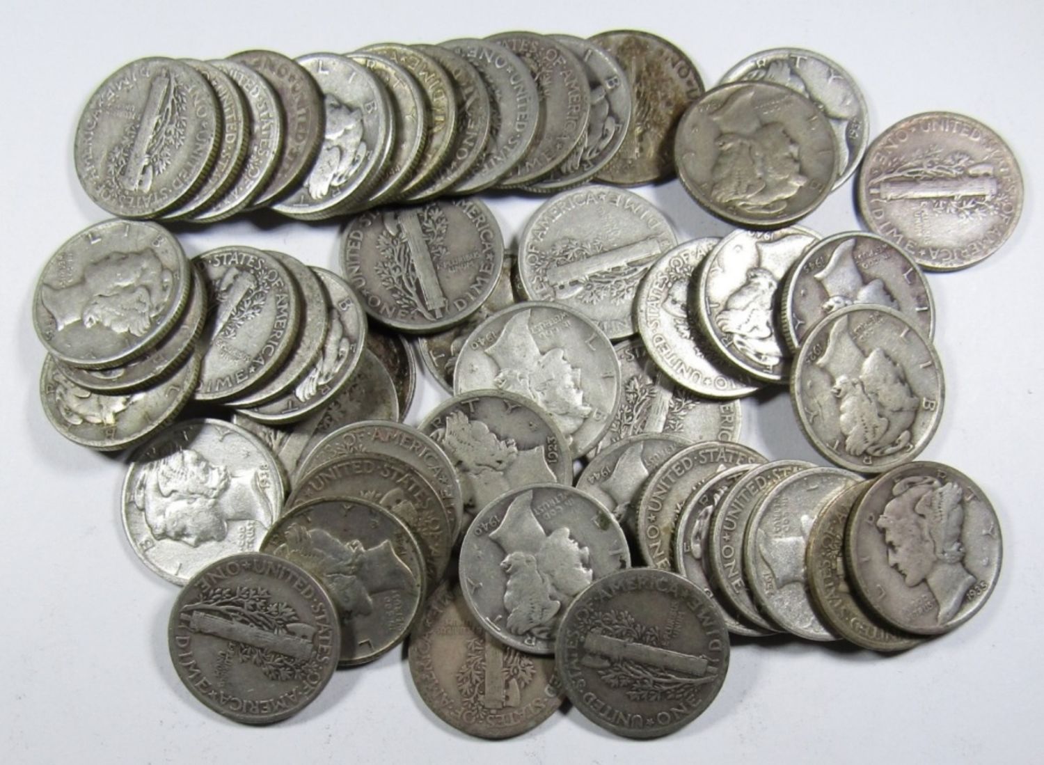 (50) MIXED DATE MERCURY SILVER DIMES