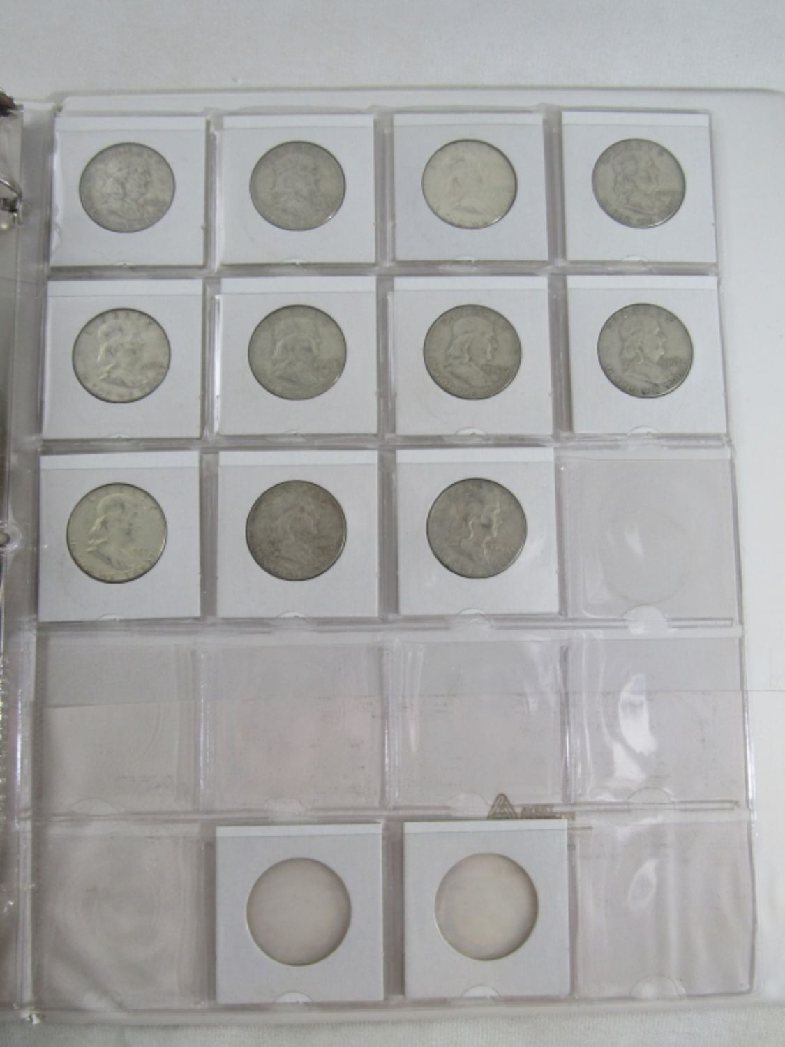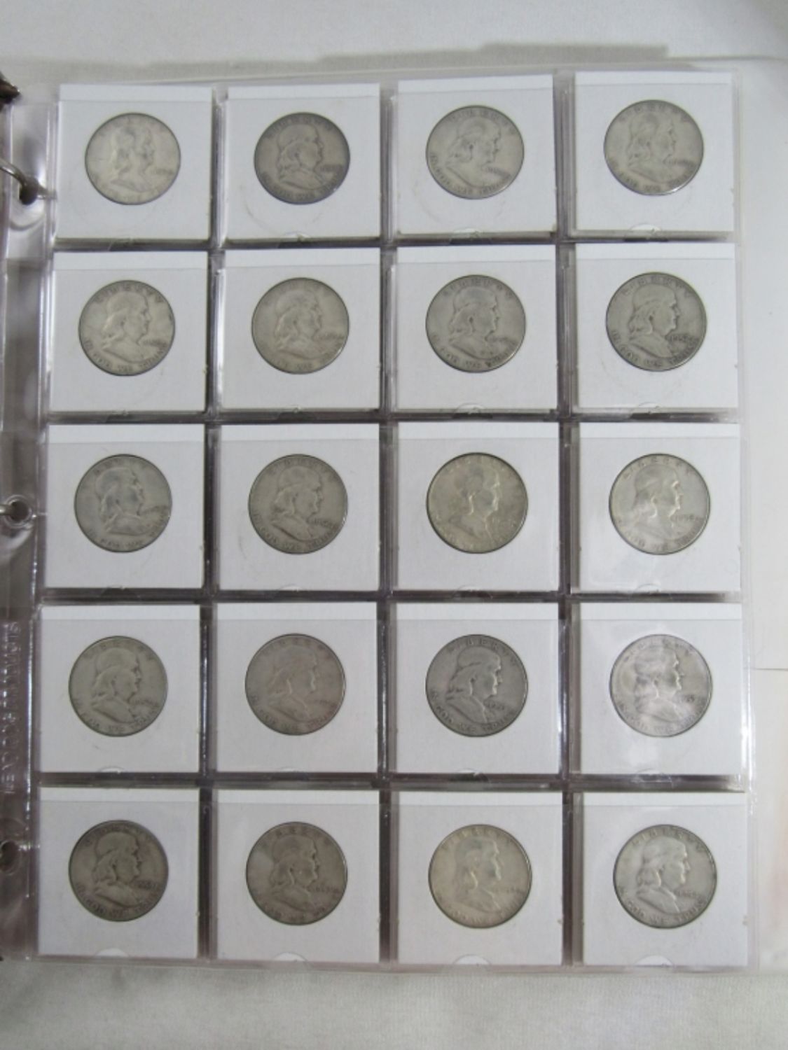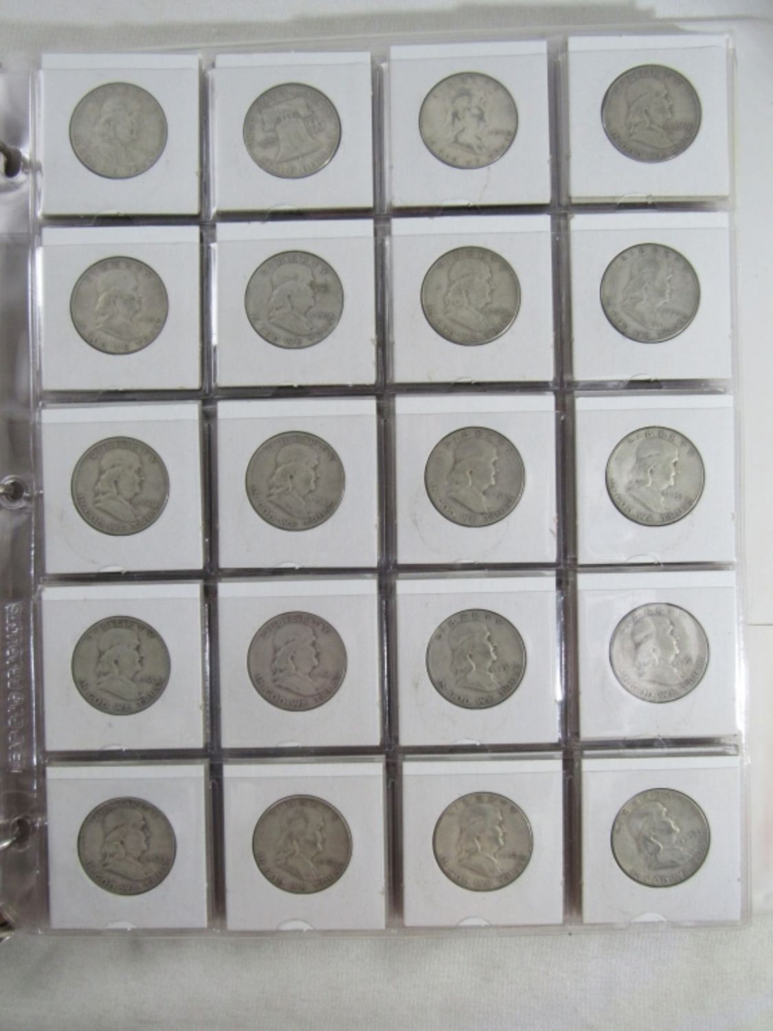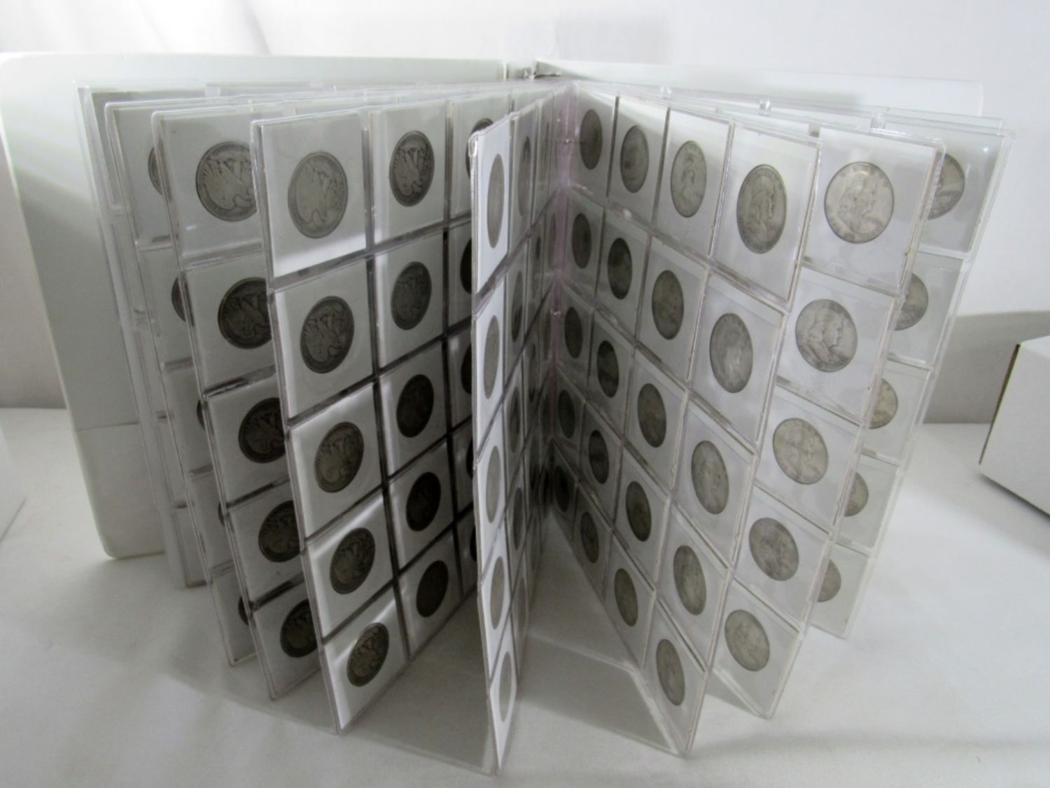 (119) WALKING LIBERTY HALF DOLLARS mostly 1930’s / 40’s with (1) 1917; (89) FRANKLIN HALF DOLLARS mostly 1950’s/60’s – ALL IN 2×2 FLIPS in ALBUM – NICE CIRC SILVER LOT