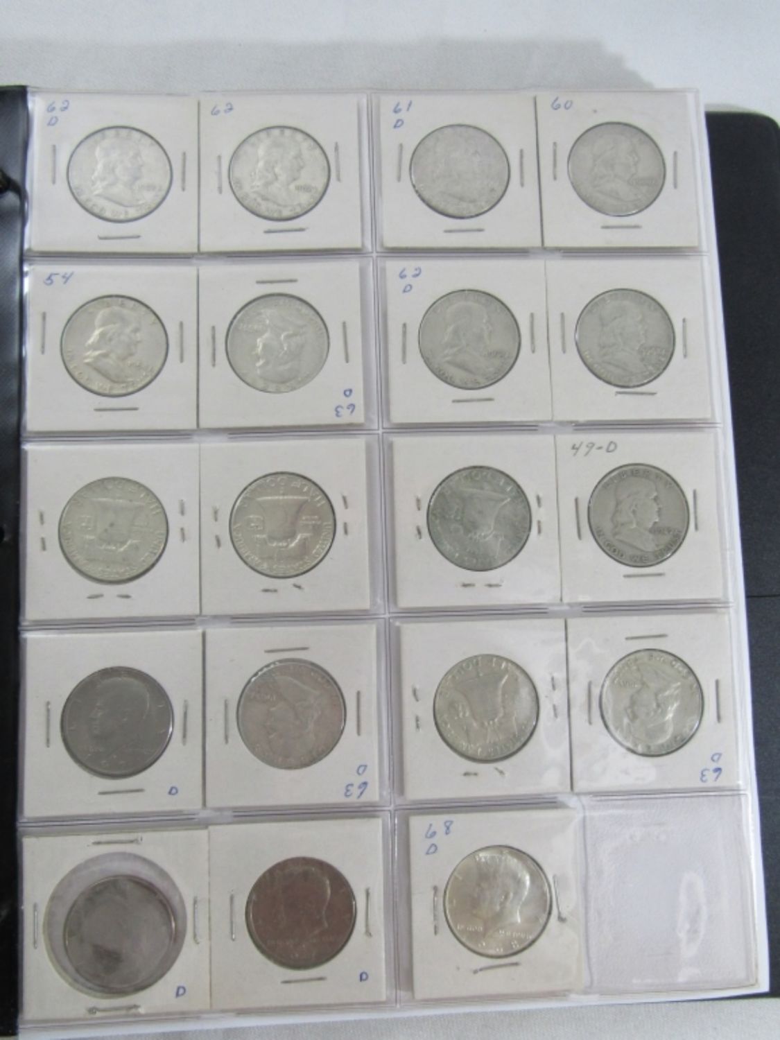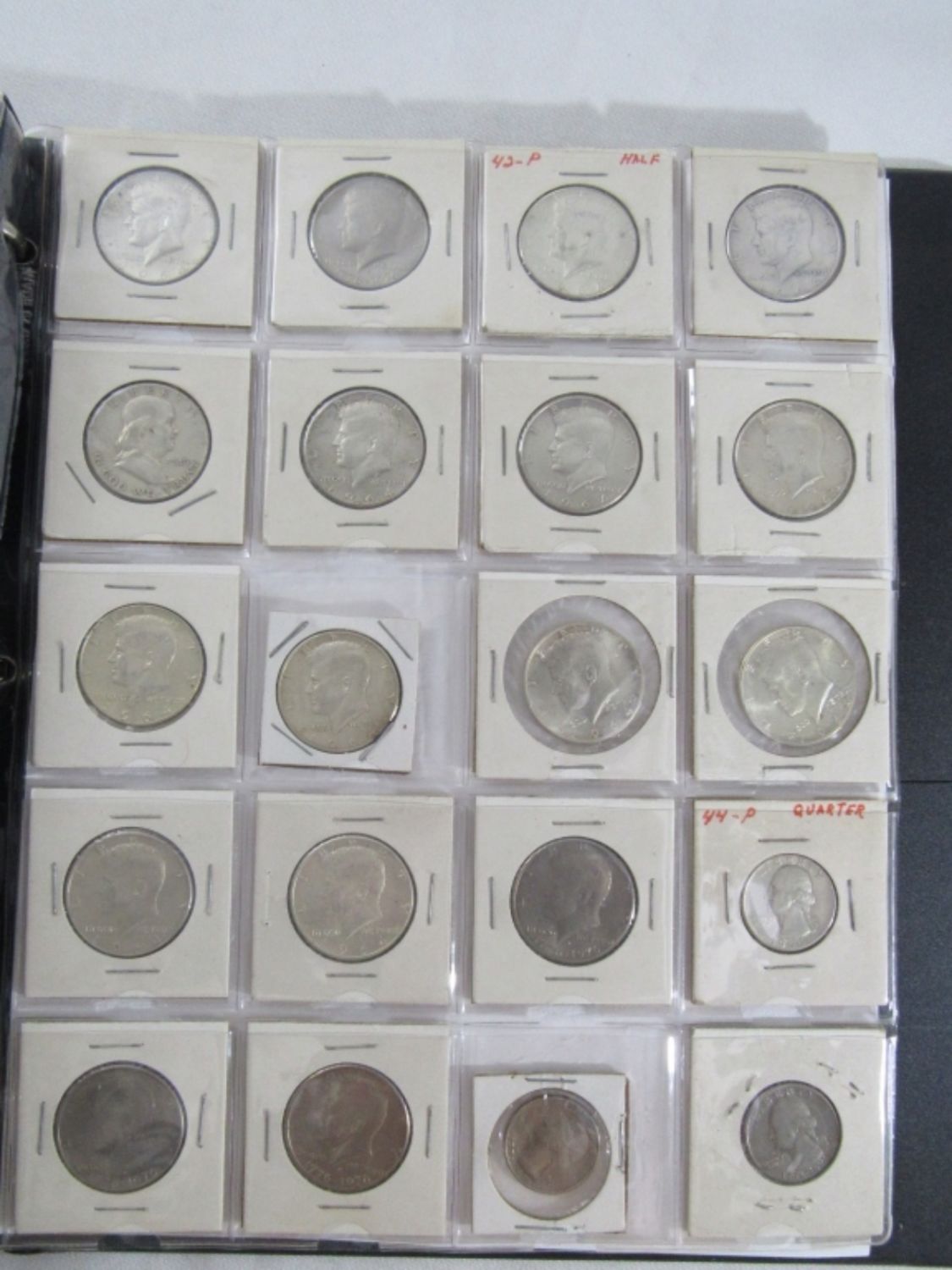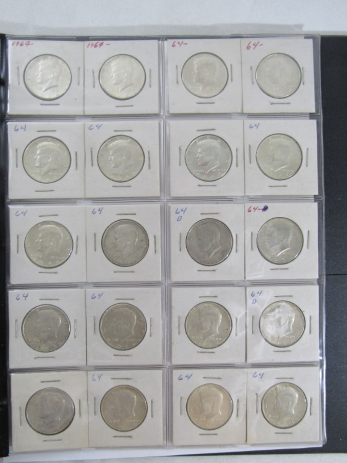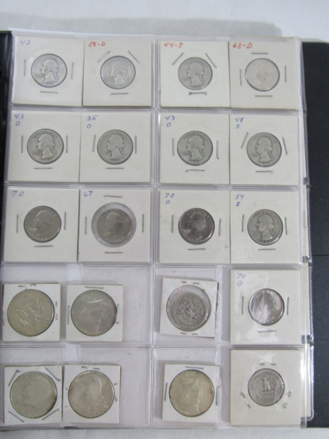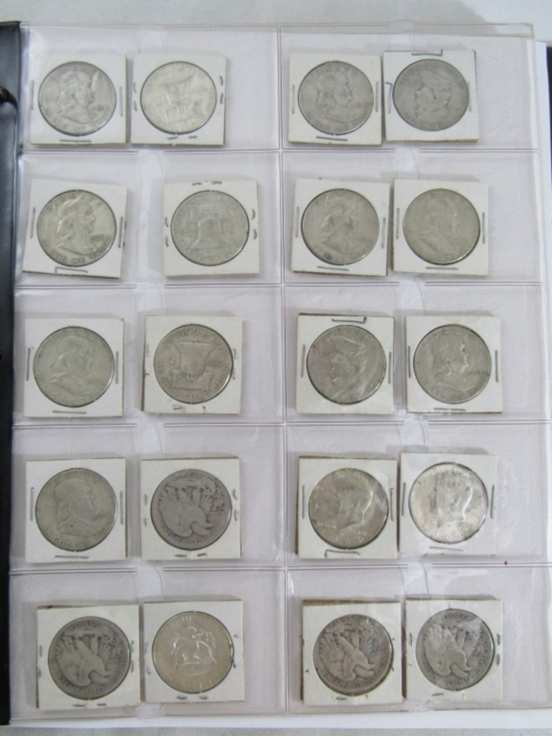ALL in 2×2 – (51) SILVER MERCURY DIMES 1920’s, 30’s, 40’s few TEENS; (4) WALKING LIBERTY 50c; (28) FRANKLIN HALF DOLLARS; (31) 1964 KENNEDY HALF DOLLARS; (10) 40% SILVER KENNEDY 50c; (12) SILVER QTRS plus (8) WHEAT