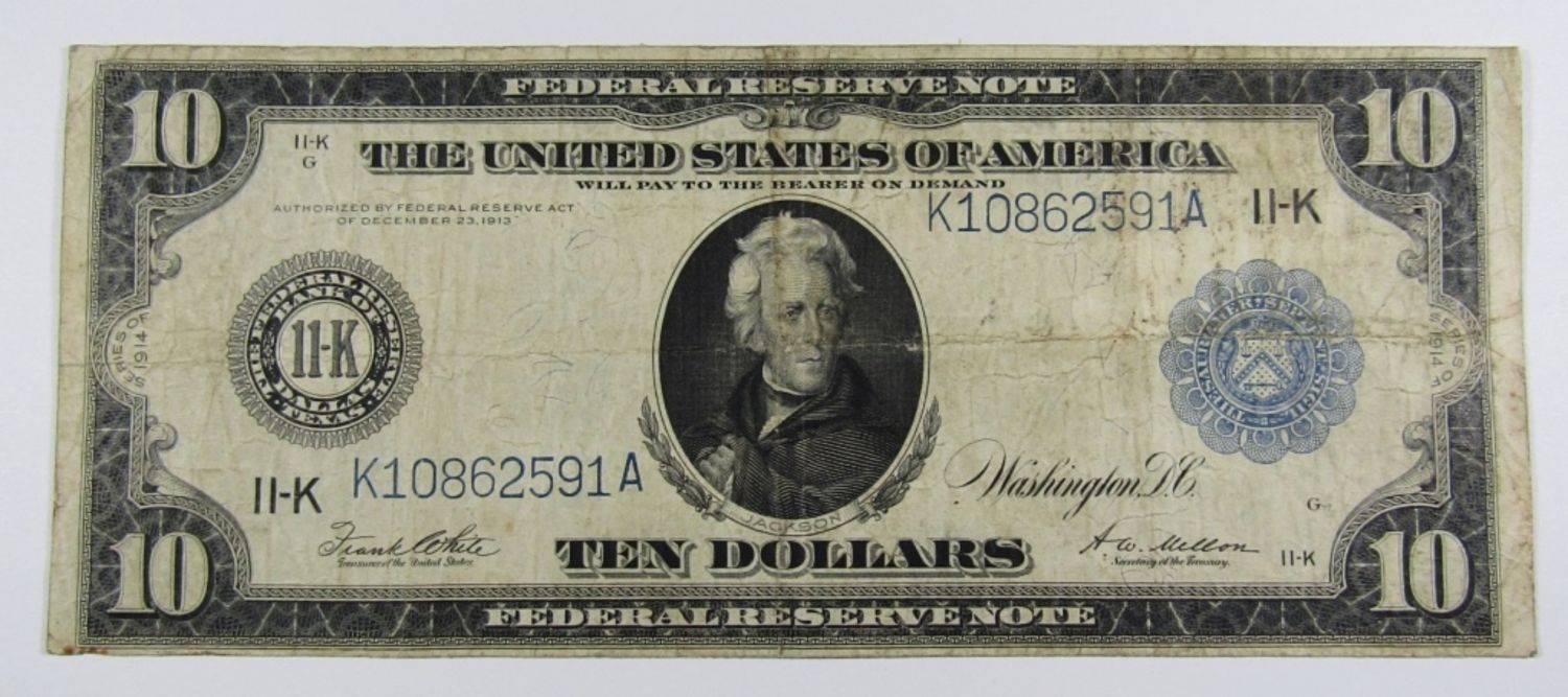 TEN DOLLARS U.S. LARGE SIZE CURRENCY – CIRC