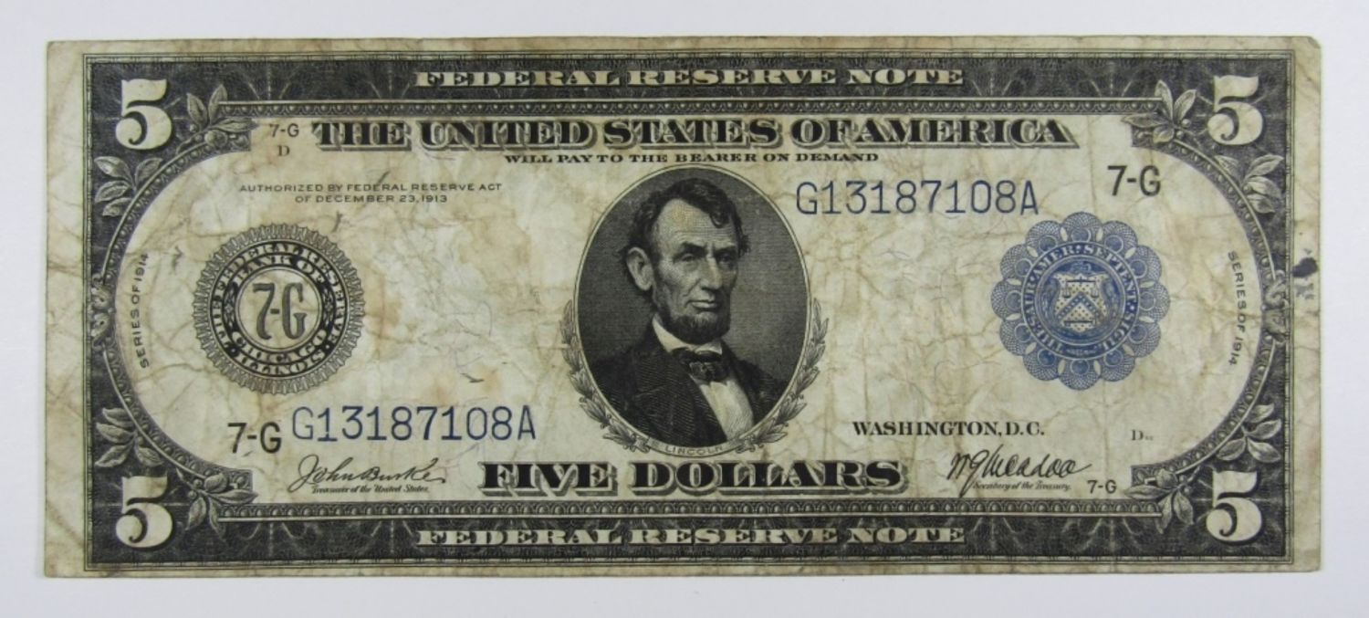 FIVE DOLLARS – U.S. LARGE SIZE NOTE – CIRC