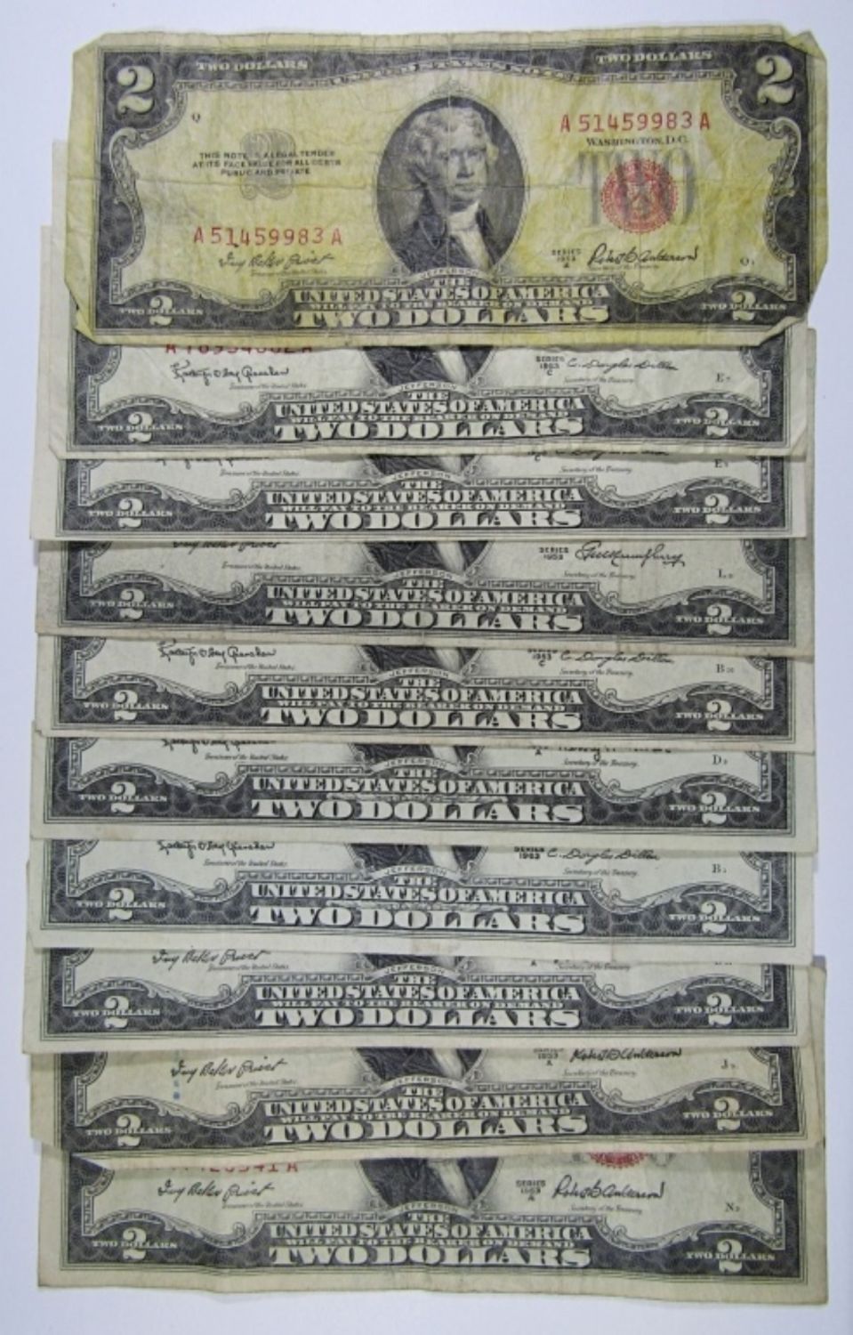 (10) $2 RED SEAL U.S. NOTES 1953 / 1963 MIX