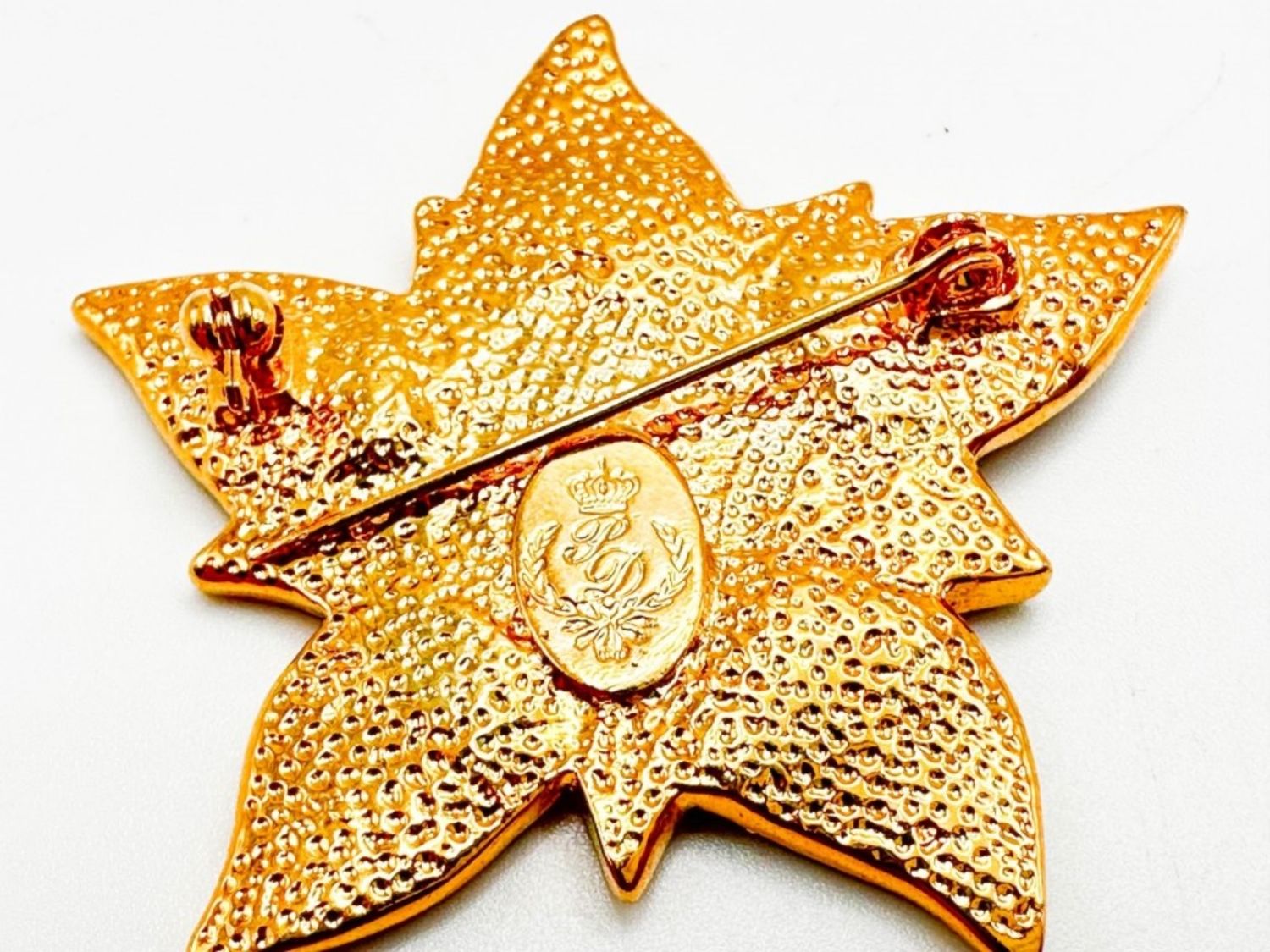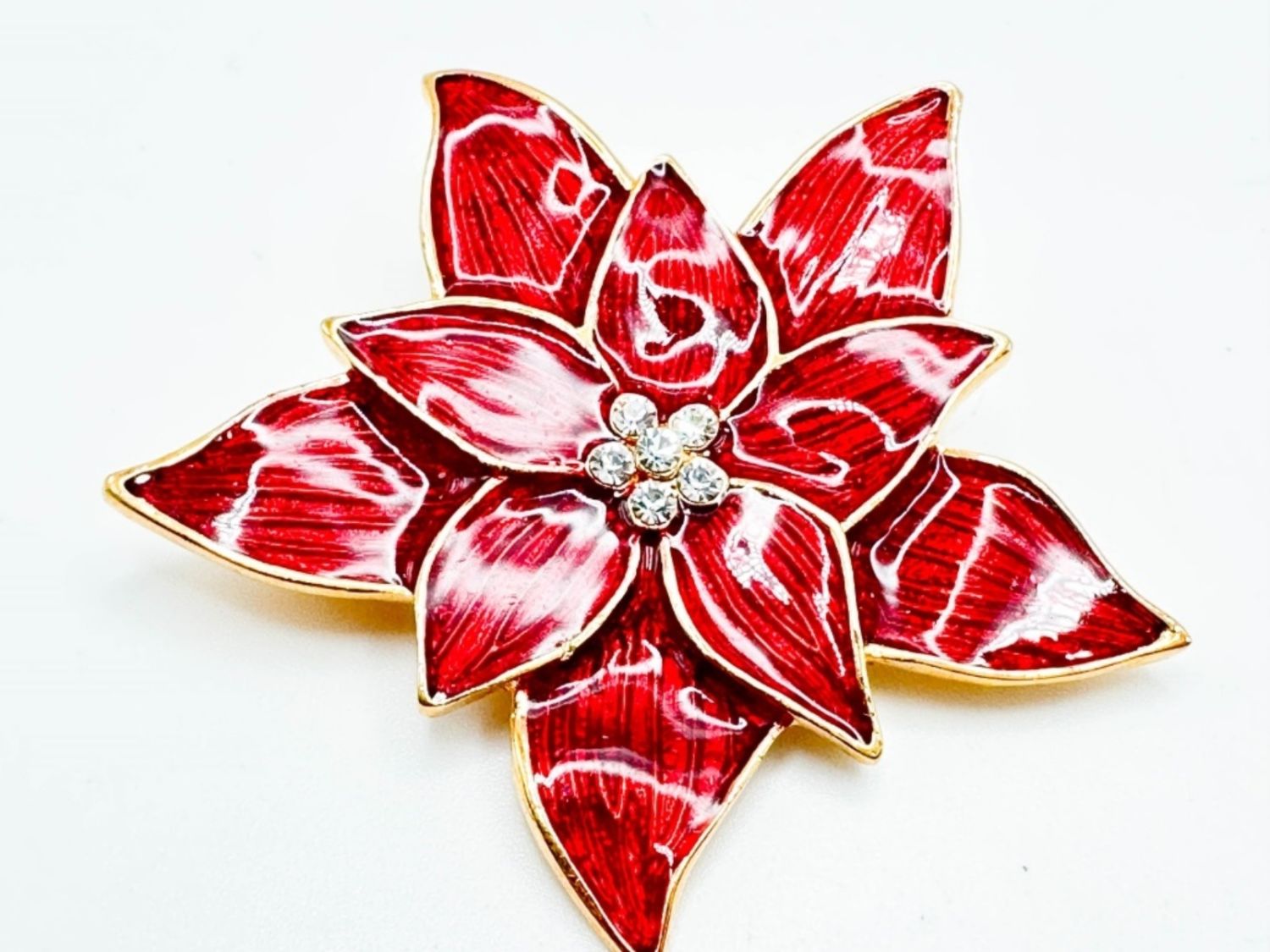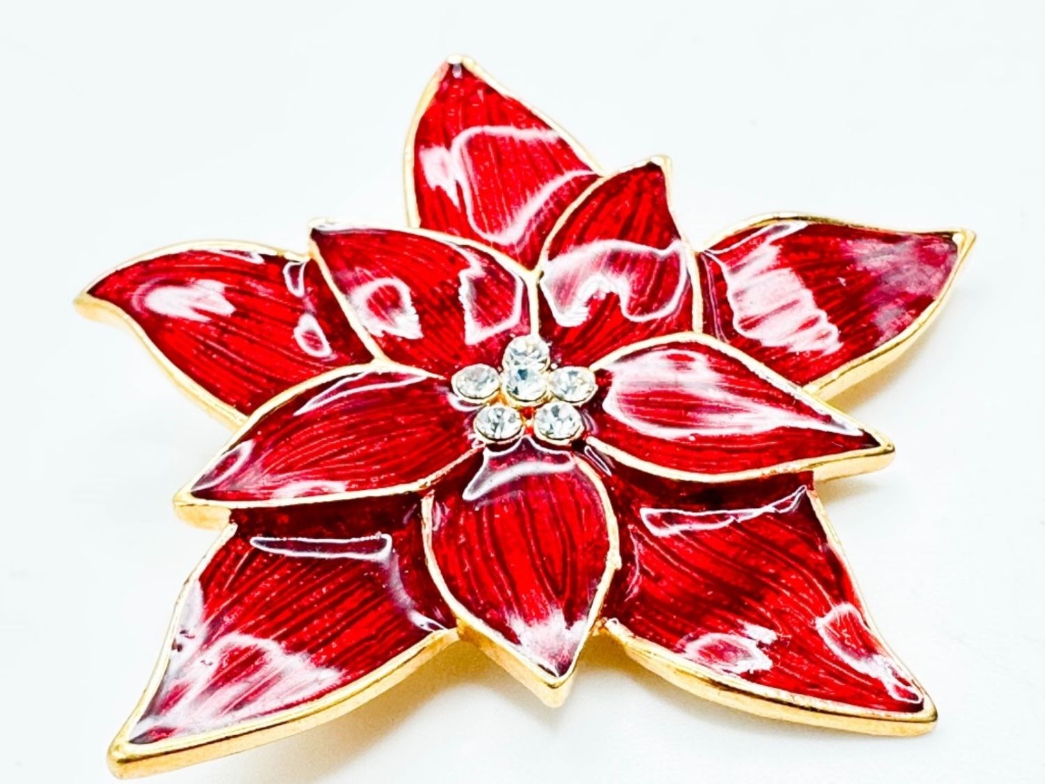 BEAUTIFUL PD POINTSETTA BROOCH WITH MAKERS MARK IN GOLD TONE