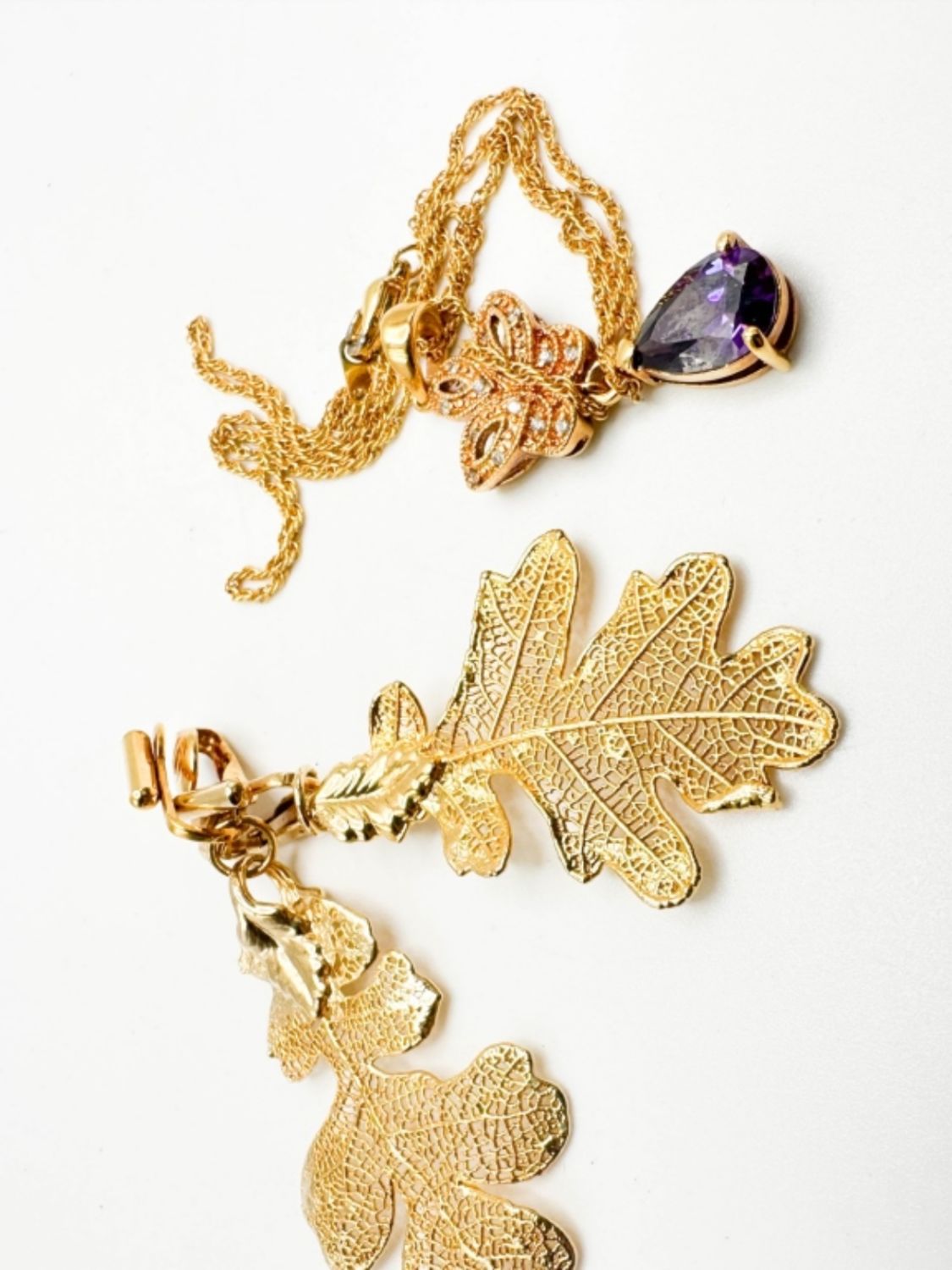 PUIRPLE STONE NECKLACE AND LEAF EARRINGS