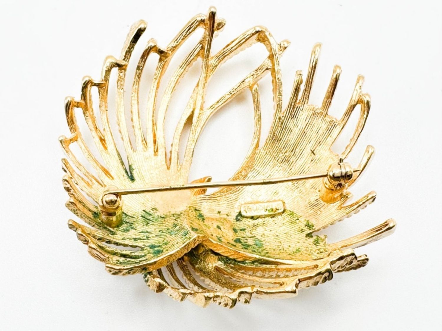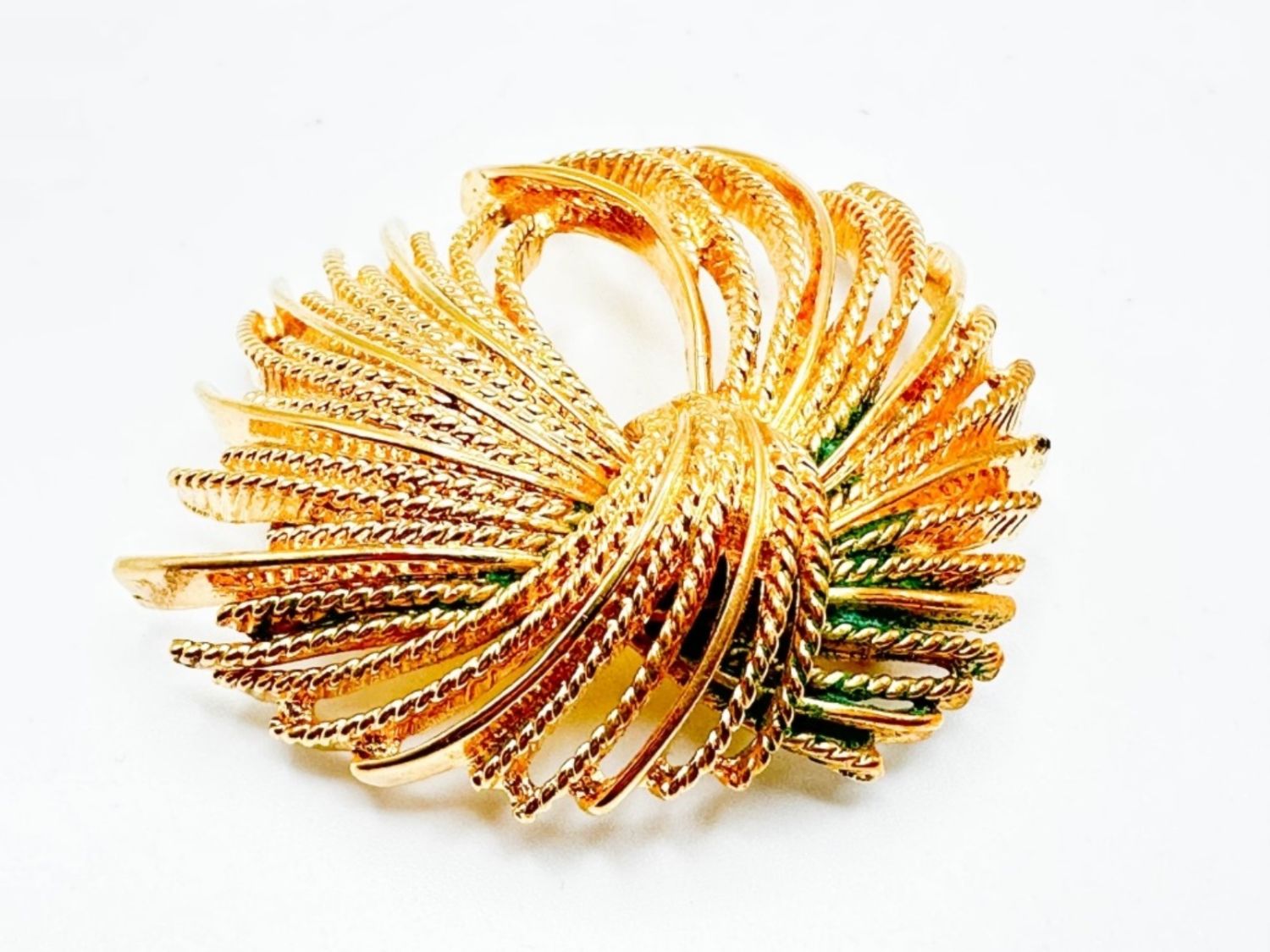 MOINET LARGE SIZE BROOCH, IN GOLD TONE, HAS SOME GREEN ON IT