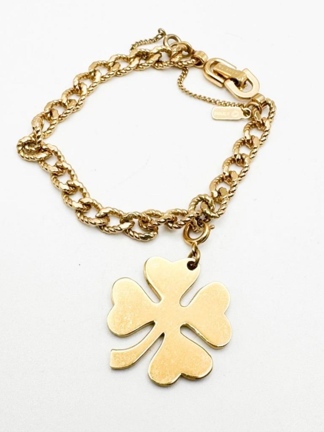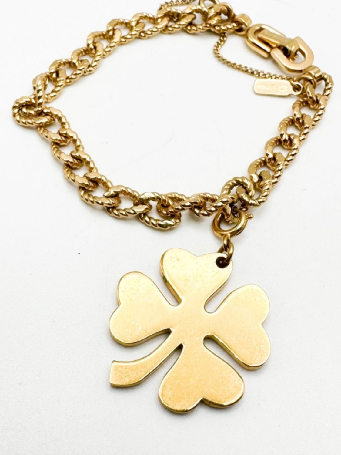 MONET SIGNED LUCKY FOUR LEAF CLOVER IN GOLD TONES