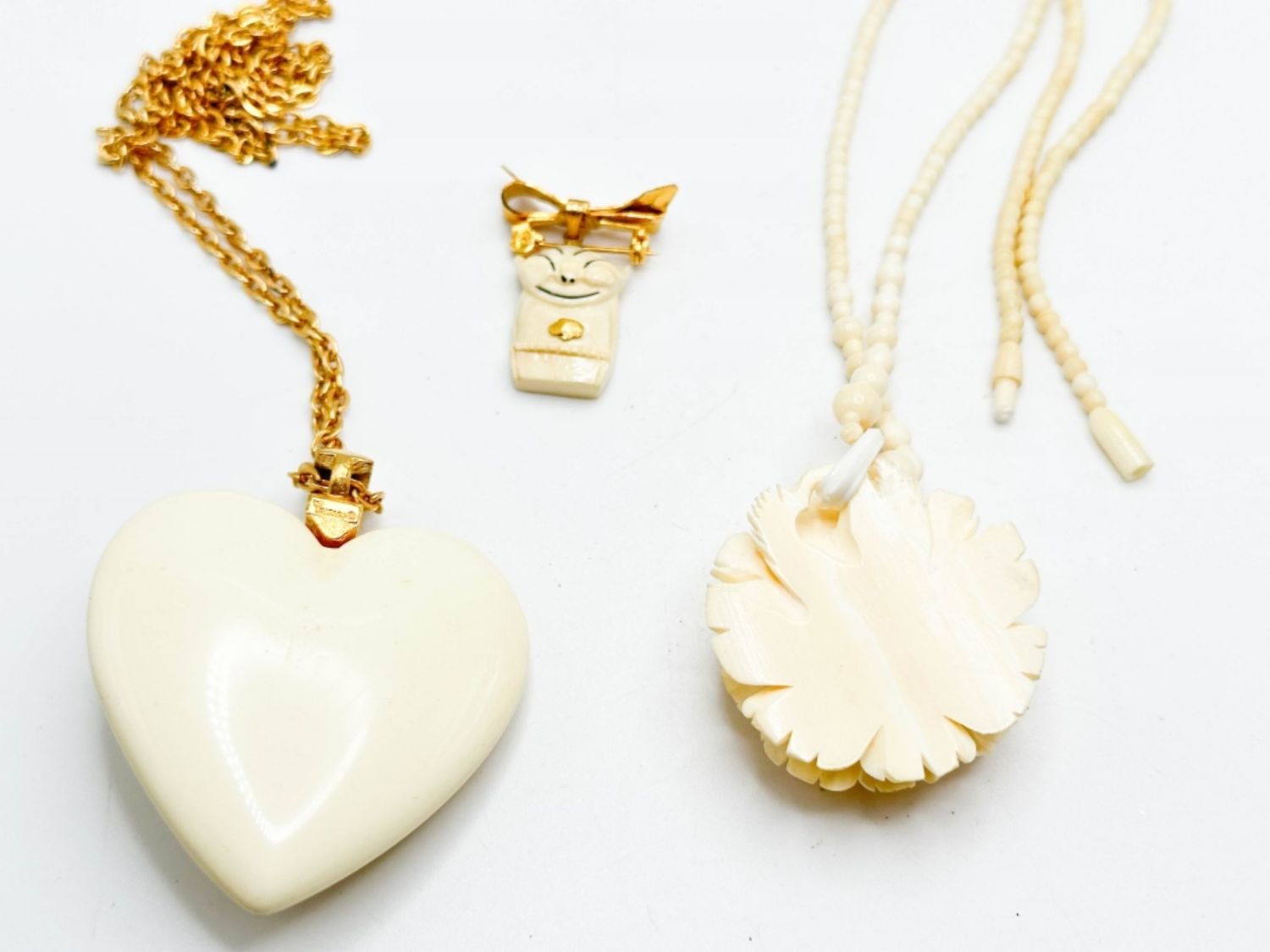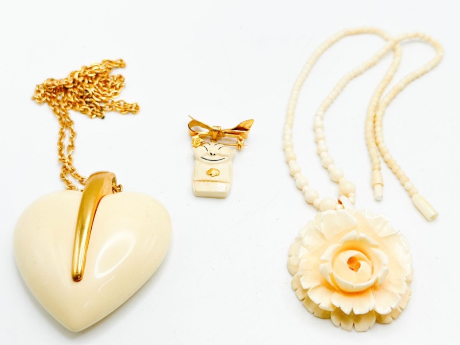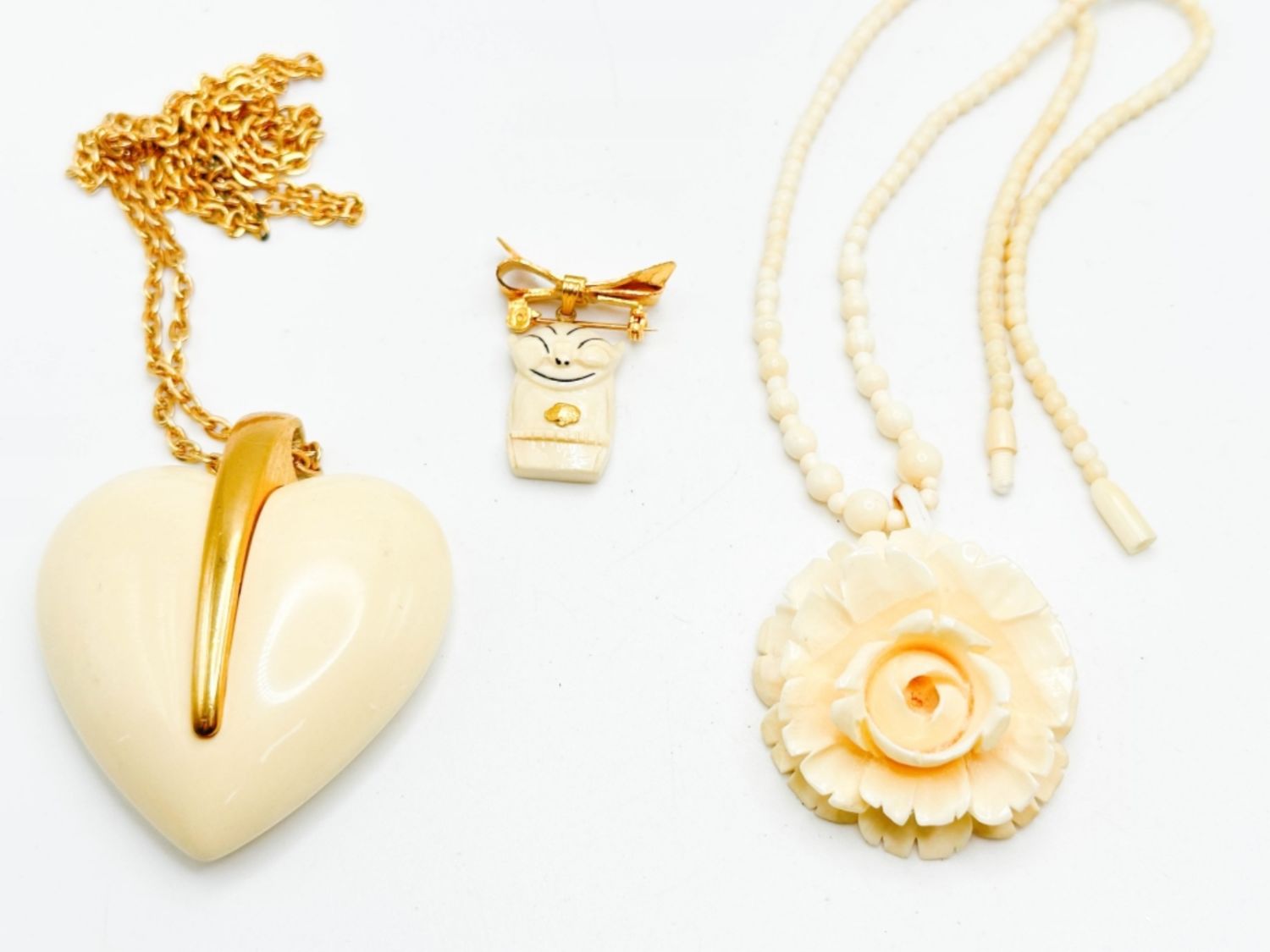 TRIFARI CROWN LARGE HEART AND CARVED NECKLACE +