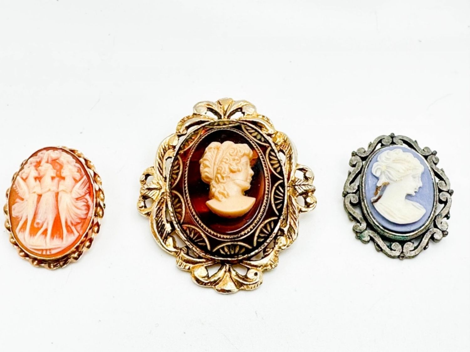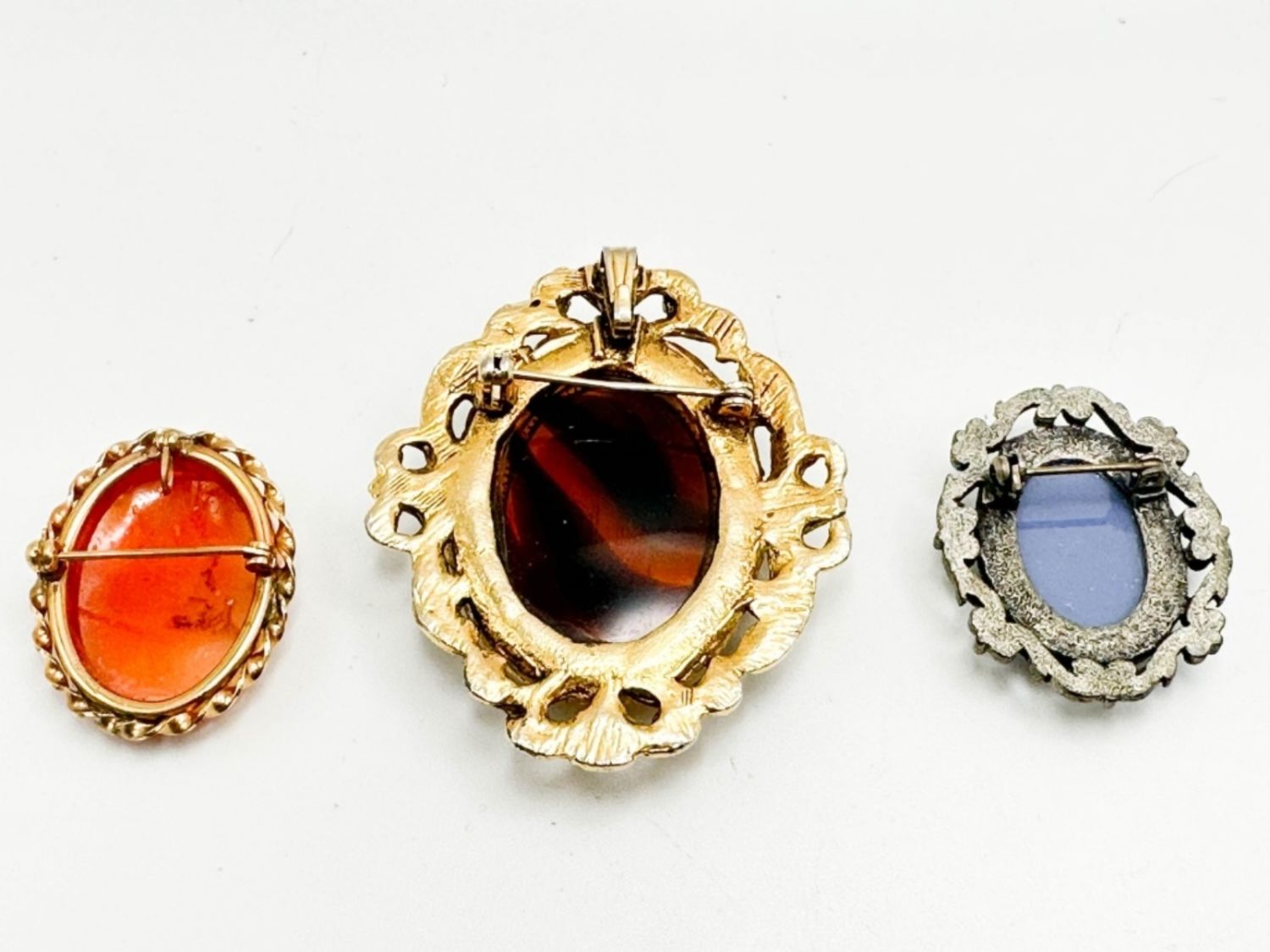 3 CAMEO BROOCHES , 1 LARGE , 2 MEDIUMS
