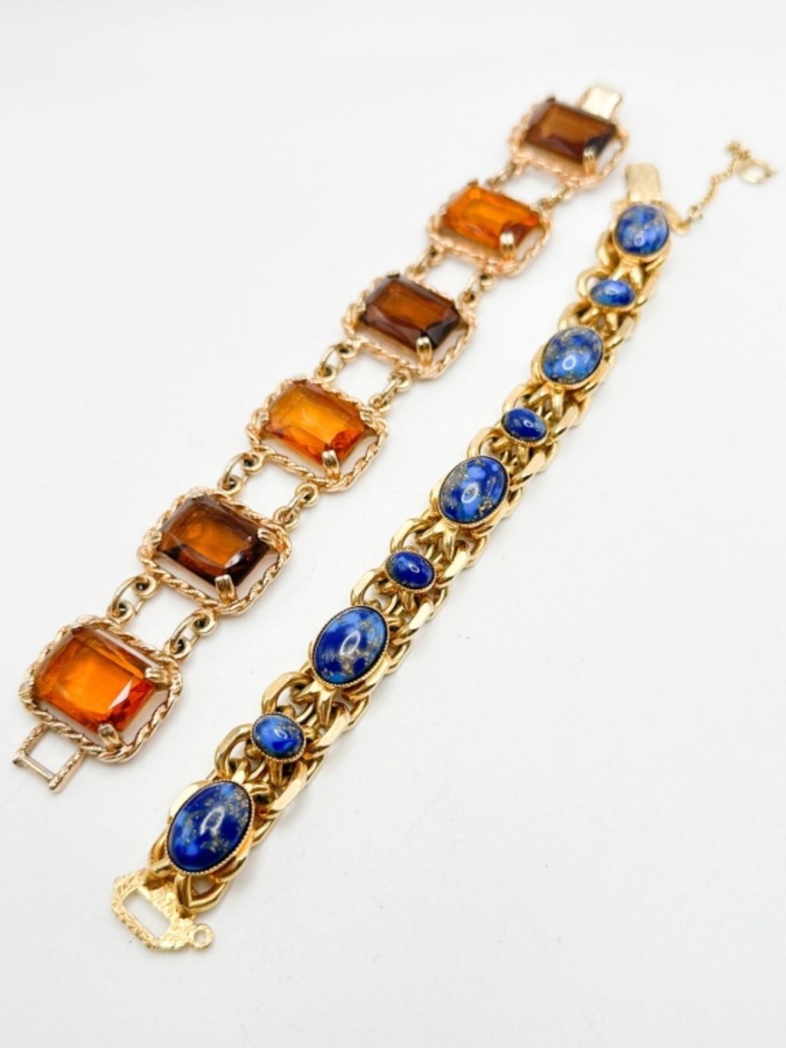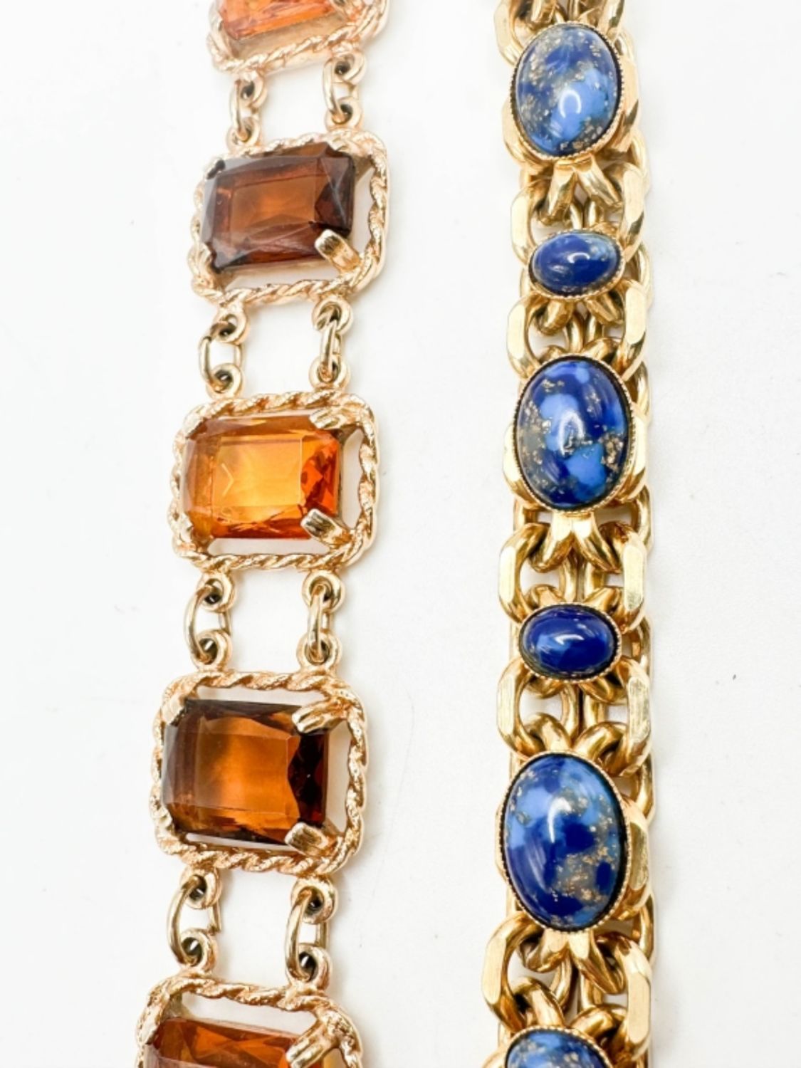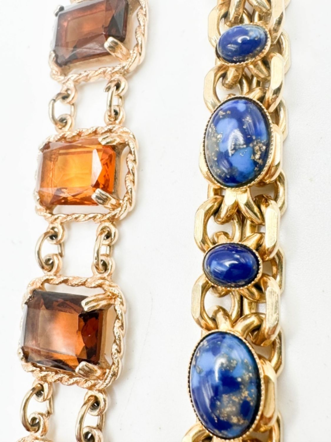 TWO STONE BRACELTS, ONE CONFETTI LIKE, ONE AMBER COLOR STONES