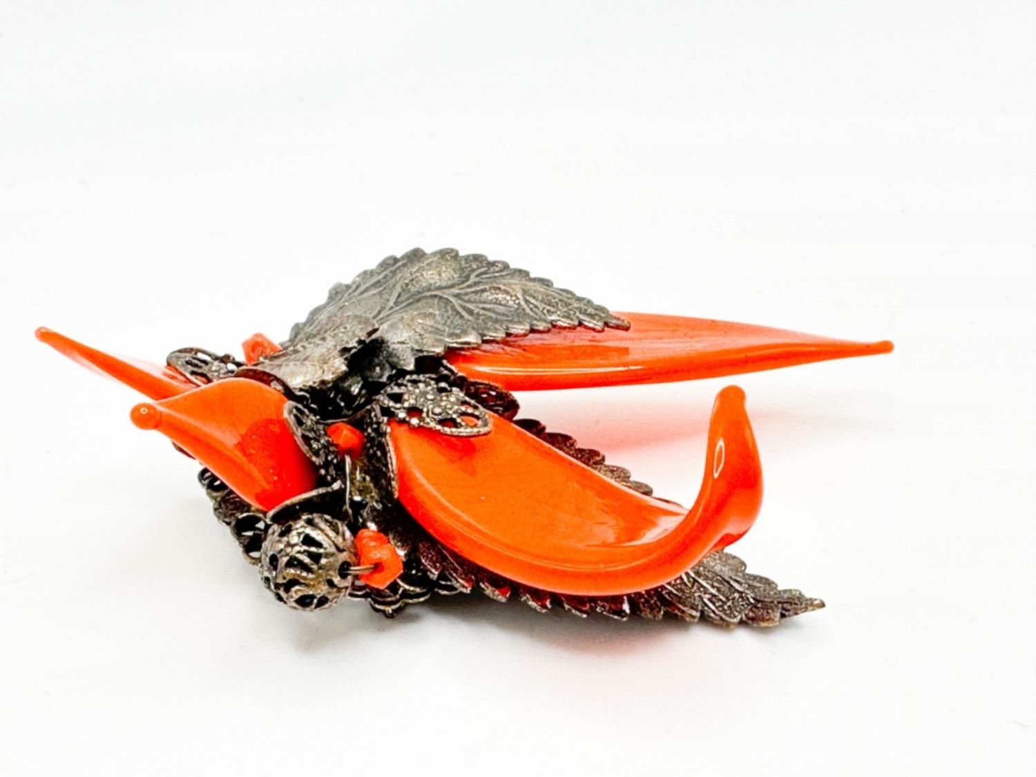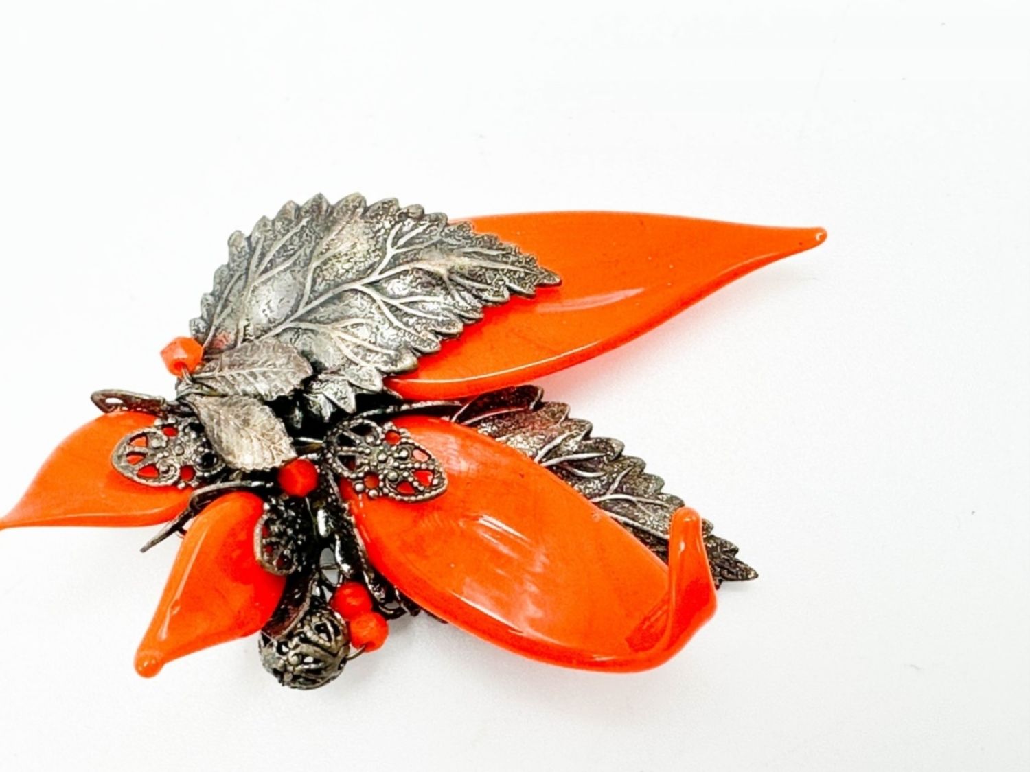 MIRIAM HASKELL SIGNED BROOCH WITH FLORAL AND LEAVES , VINTAGEDESIGNER HASKELL