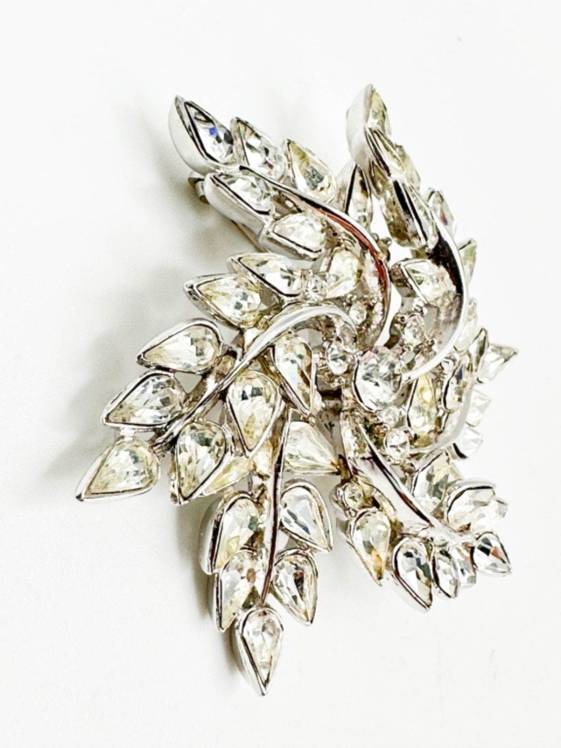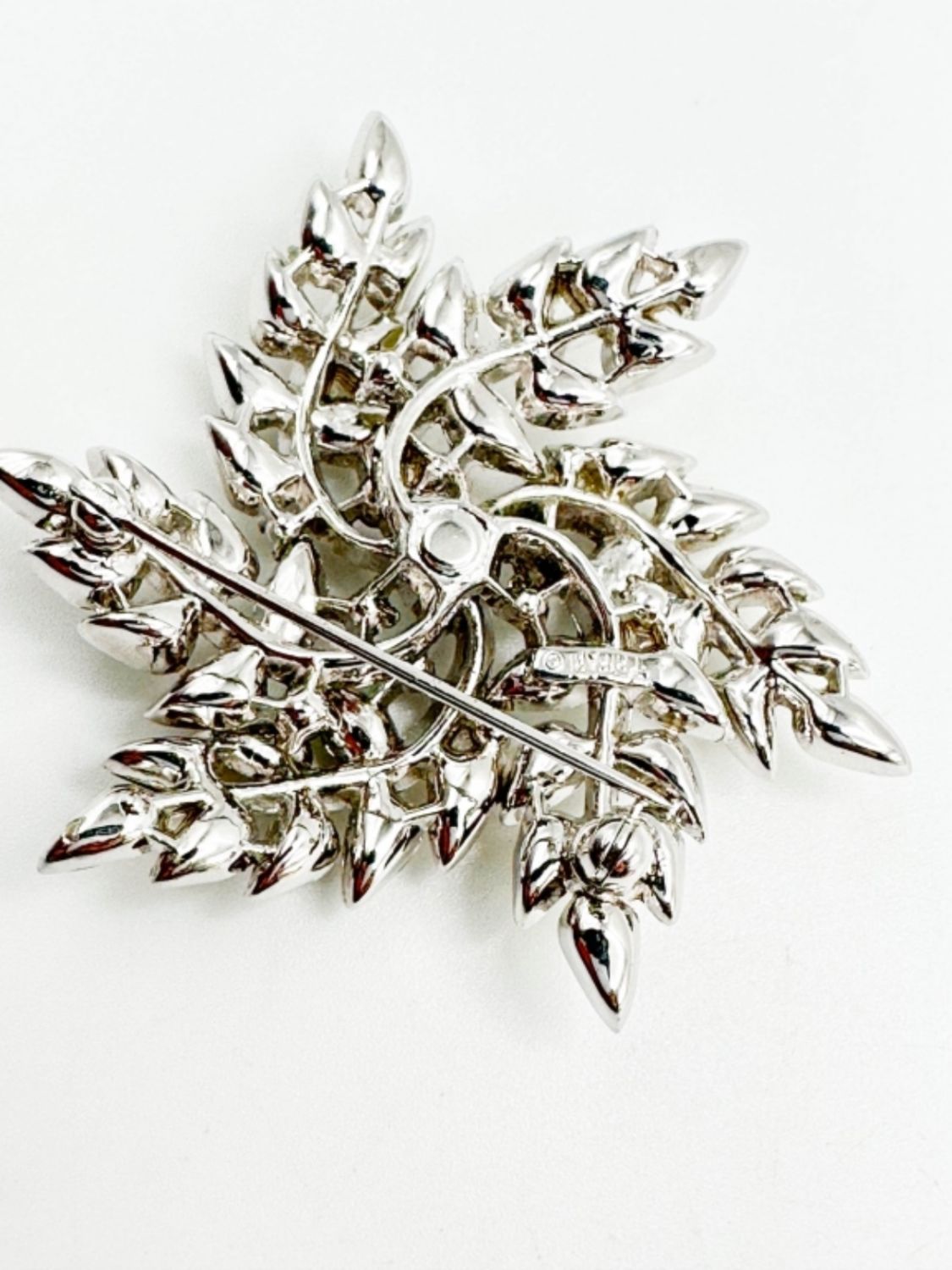 TRIFARI SIGNED CLEAR STONE BROOCH, VINTAGE TRIFARI