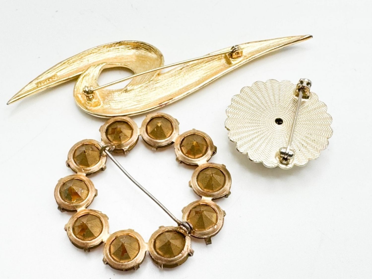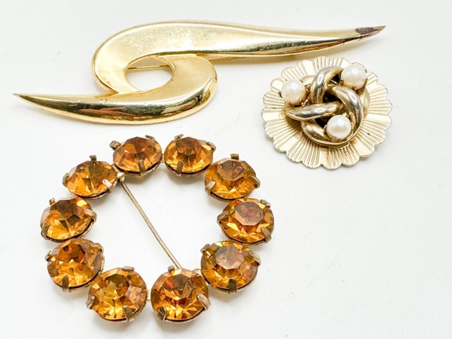 3 ASSORTED BROOCH, ONE STONE, 1 FAUX PEARL, 1 ART DECO STYLE