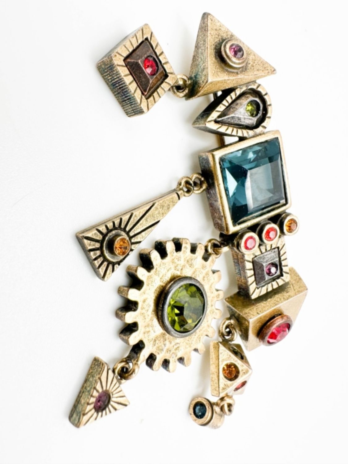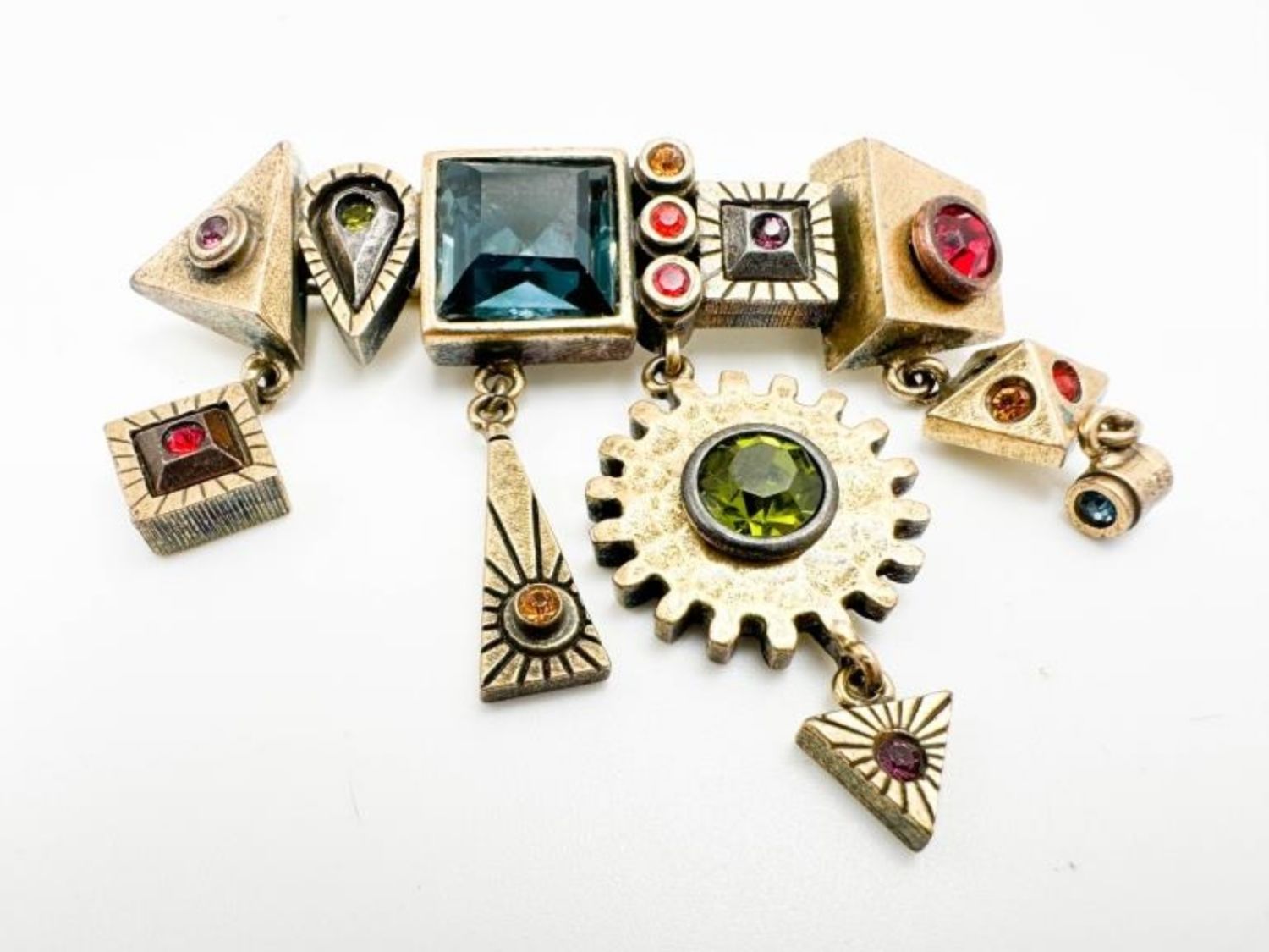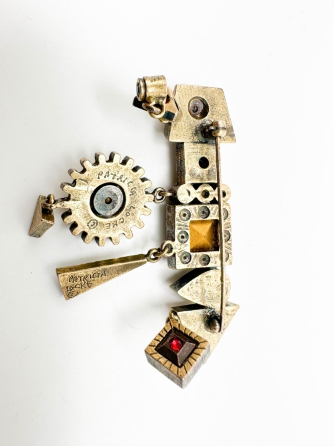 PATRICIA LOCKE ” ART TO WEAR” STYLE BROOCH WITH DANGLES, HARD TO FIND , SIGNED PATRICIA LOCKE, DANGLES ARE SIGNED PATRICIA LOCKE