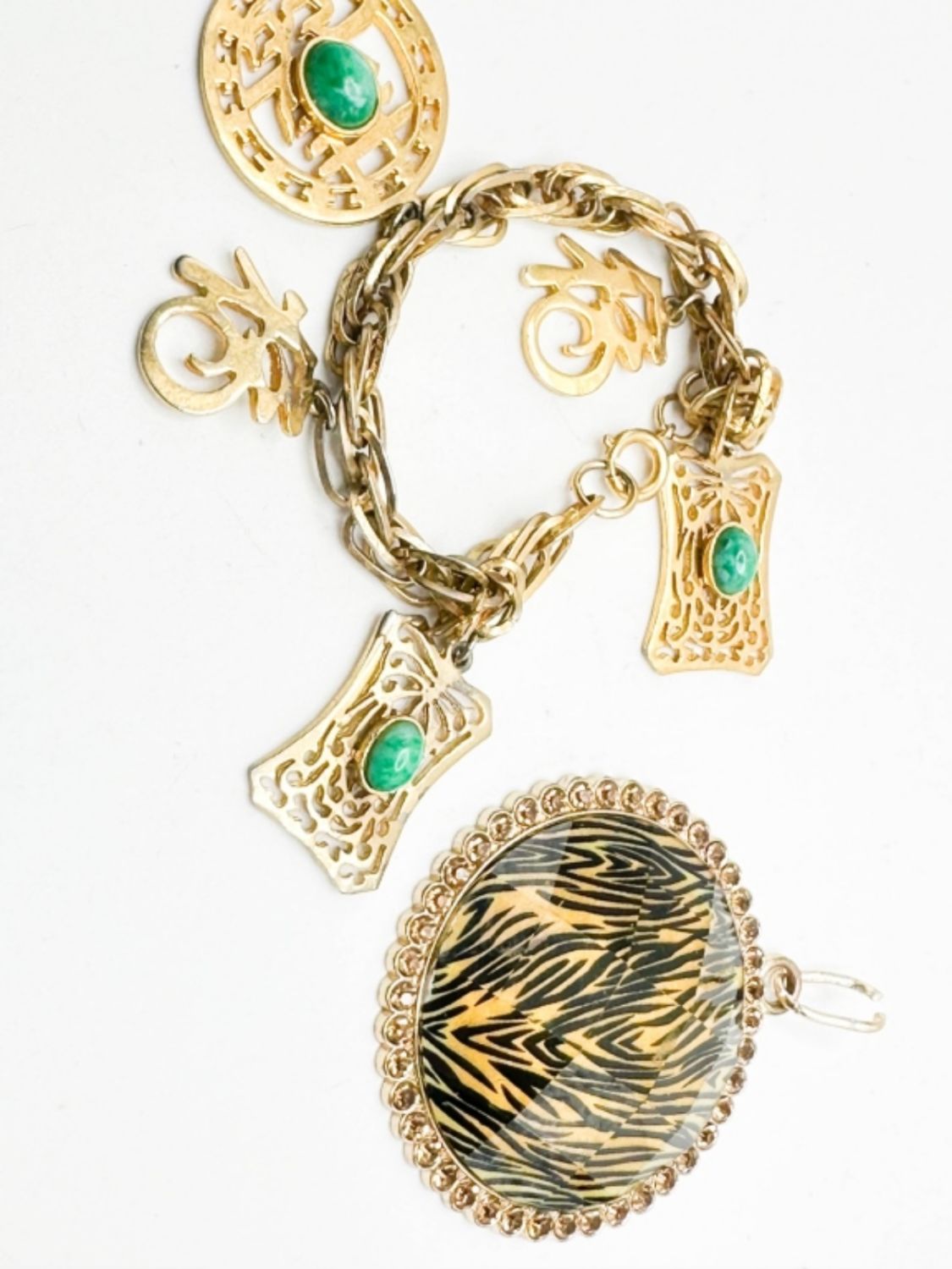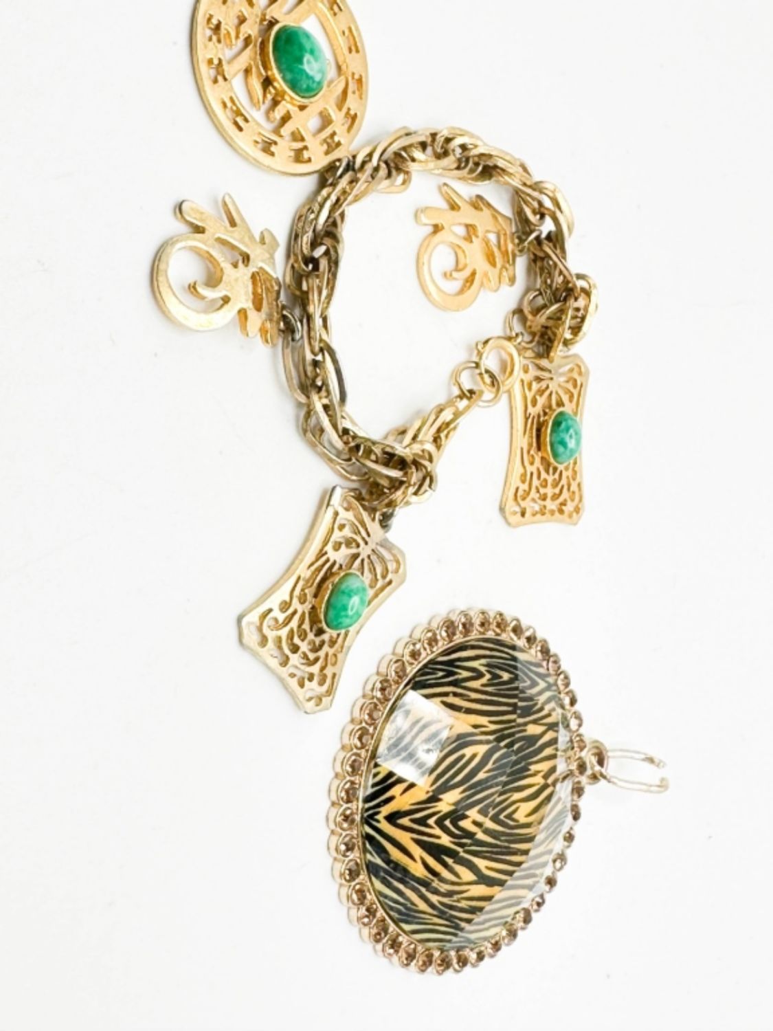 ASIAN STYLE BRACELET WITH STONES AND STRIPE PENDANT