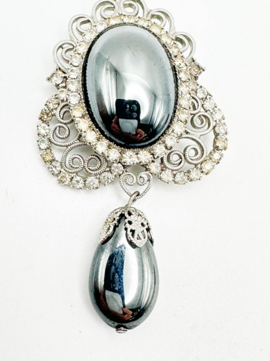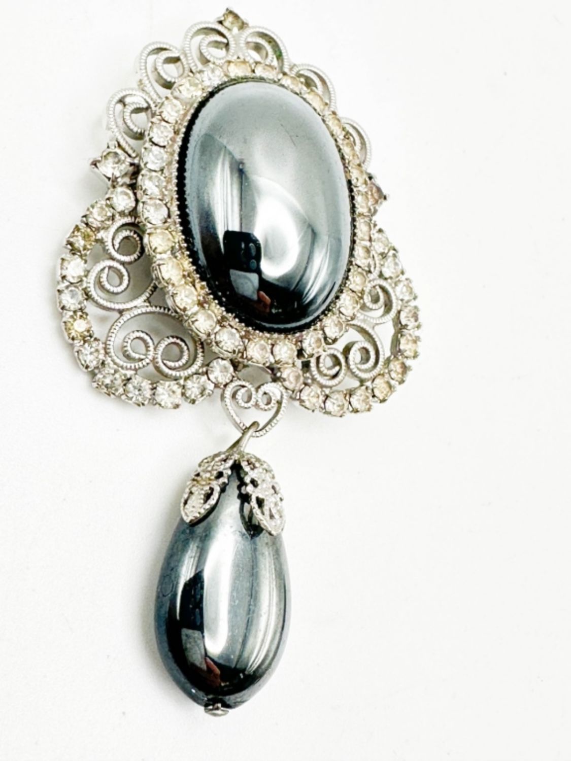 LARGE DARK STONE BROOCH WITHDROP DANGLE STONE