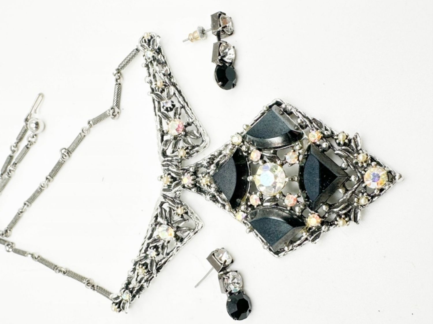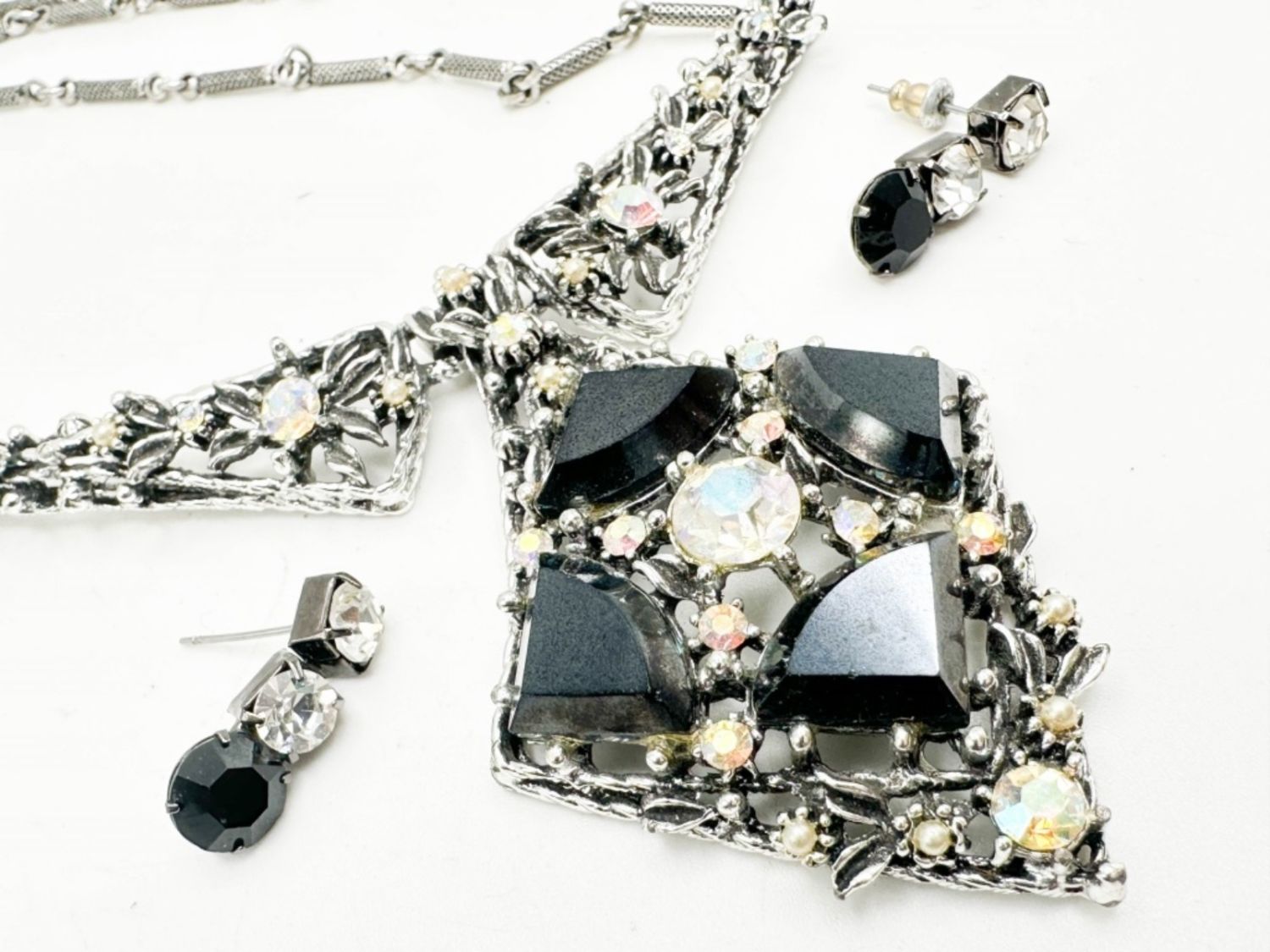 BLACK NECKLACE AND EARRINGS WITH CLEAR STONES