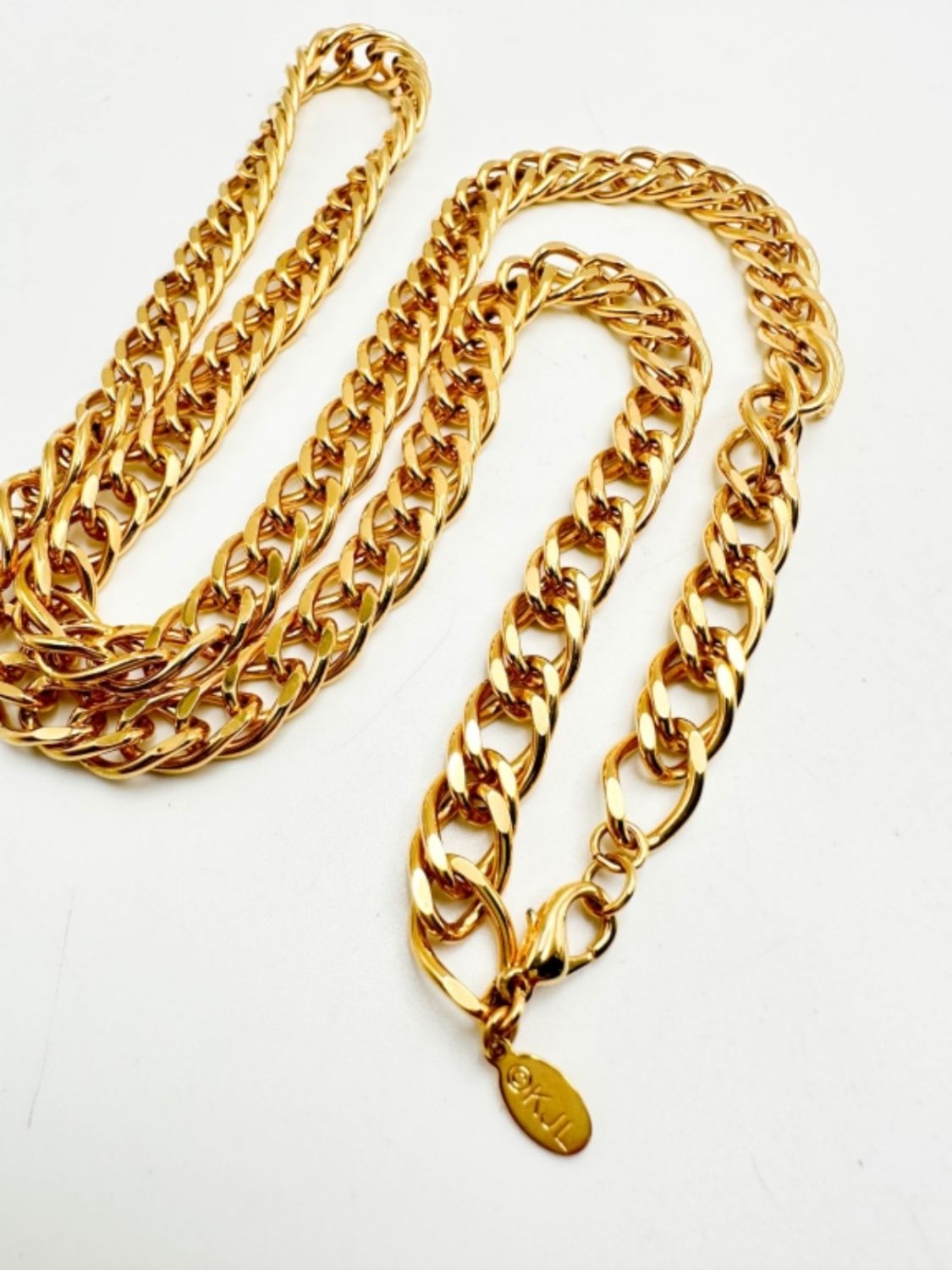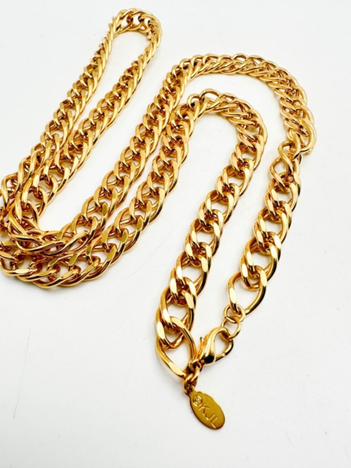 KJL SIGNED CHAIN LINK BRACELET IN GOLD TONE, VINTAGE TIMELESS DESIGNER KENNETH JAY LANE