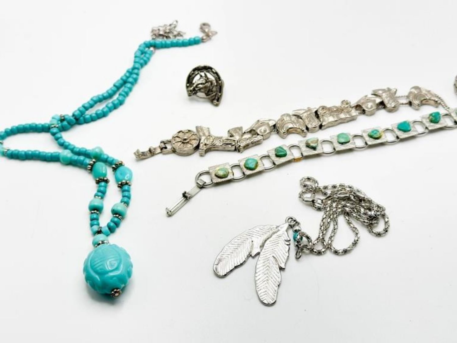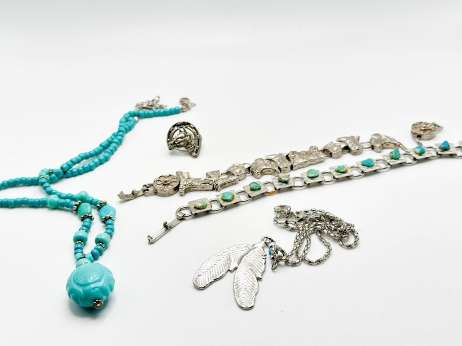 TURQUISE COLOR NECKLACE AND BRACELET WITH STONES AND MORE
