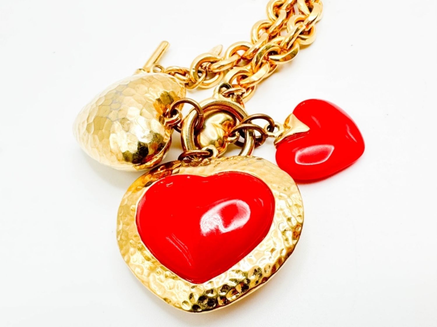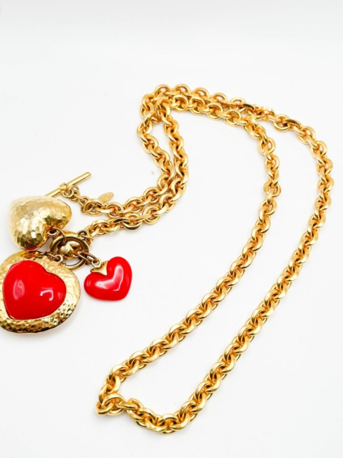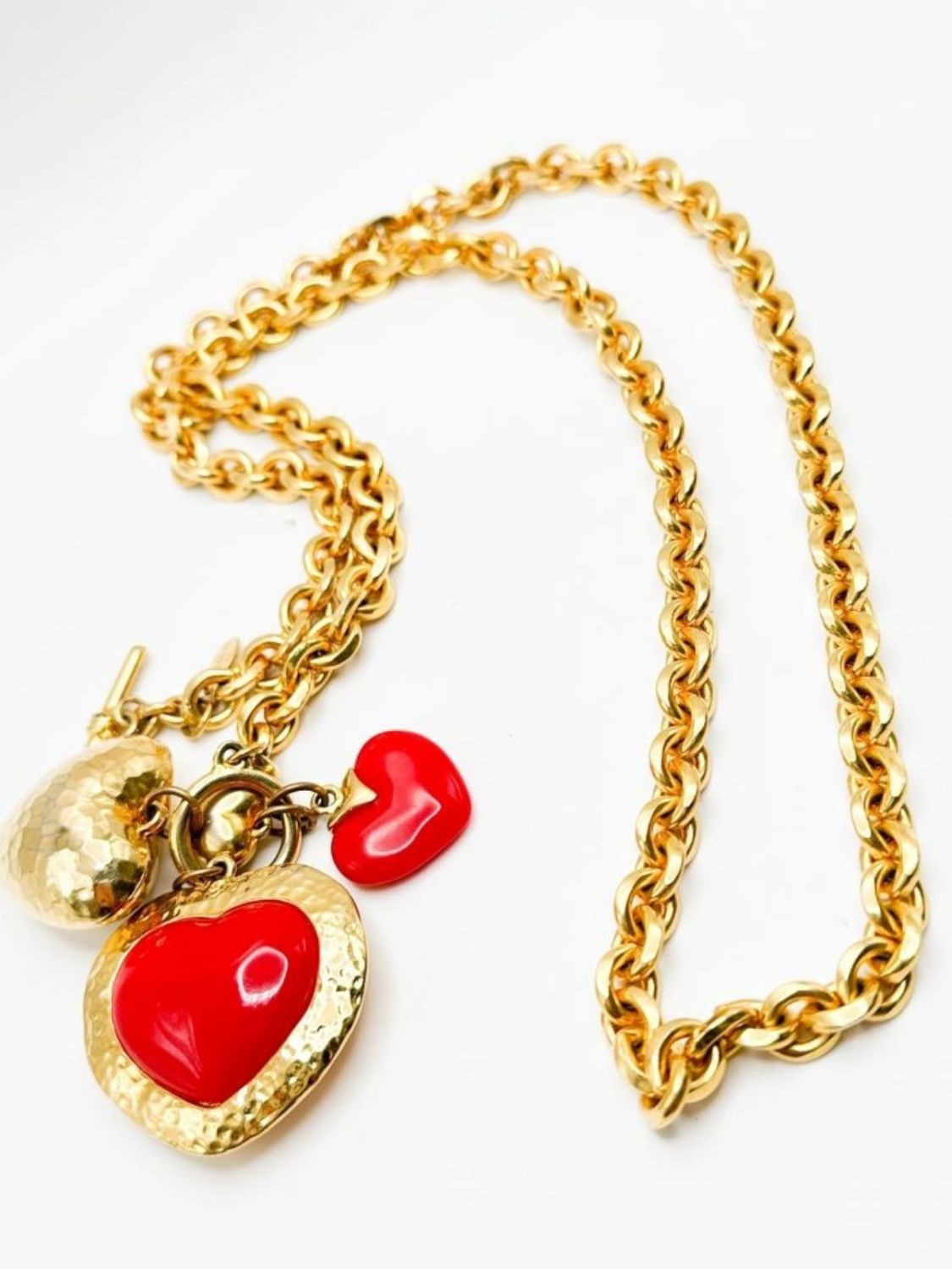 CAROL LEE LARGE RED AND GOLD HEARTS NECKLACE