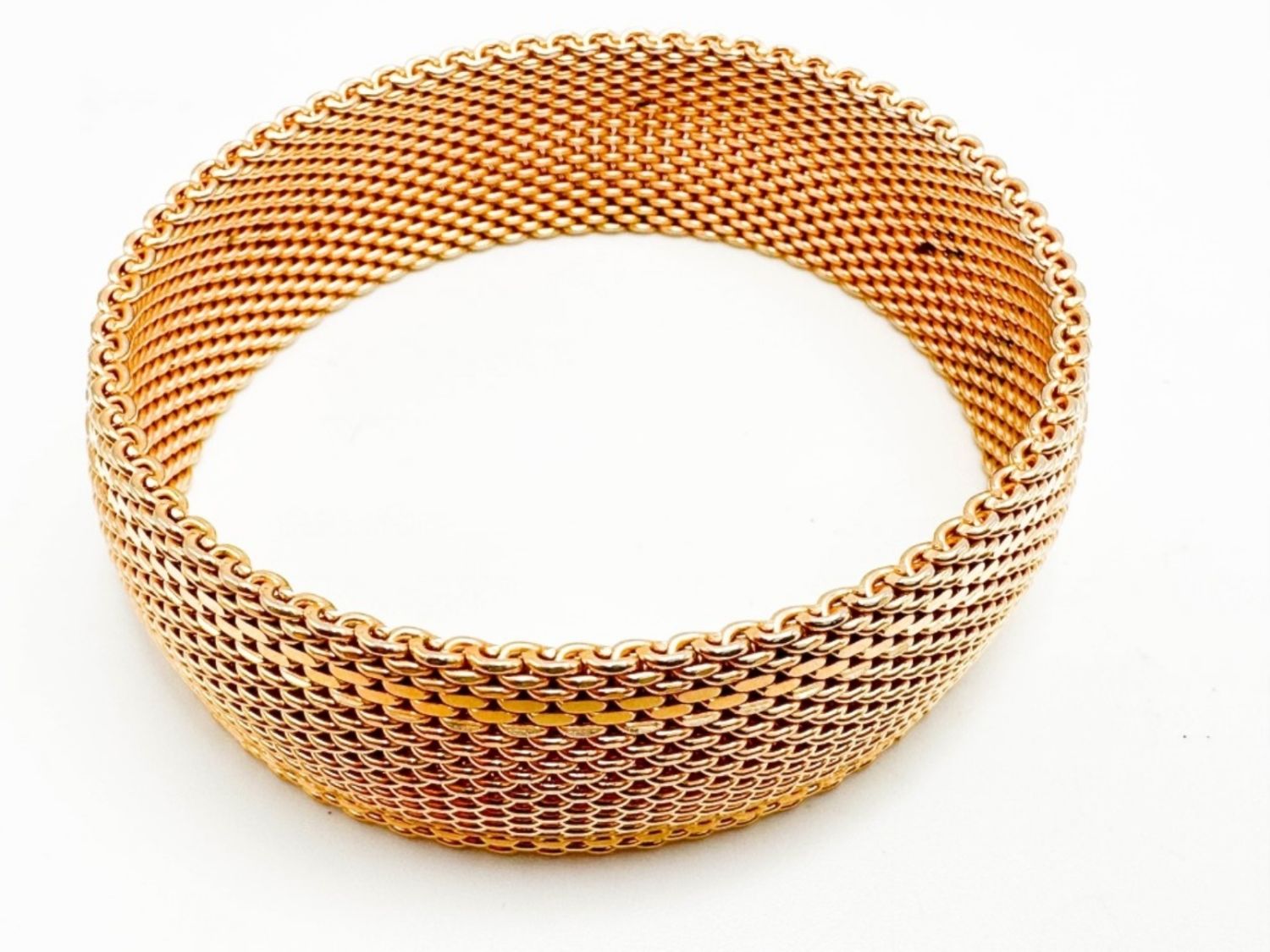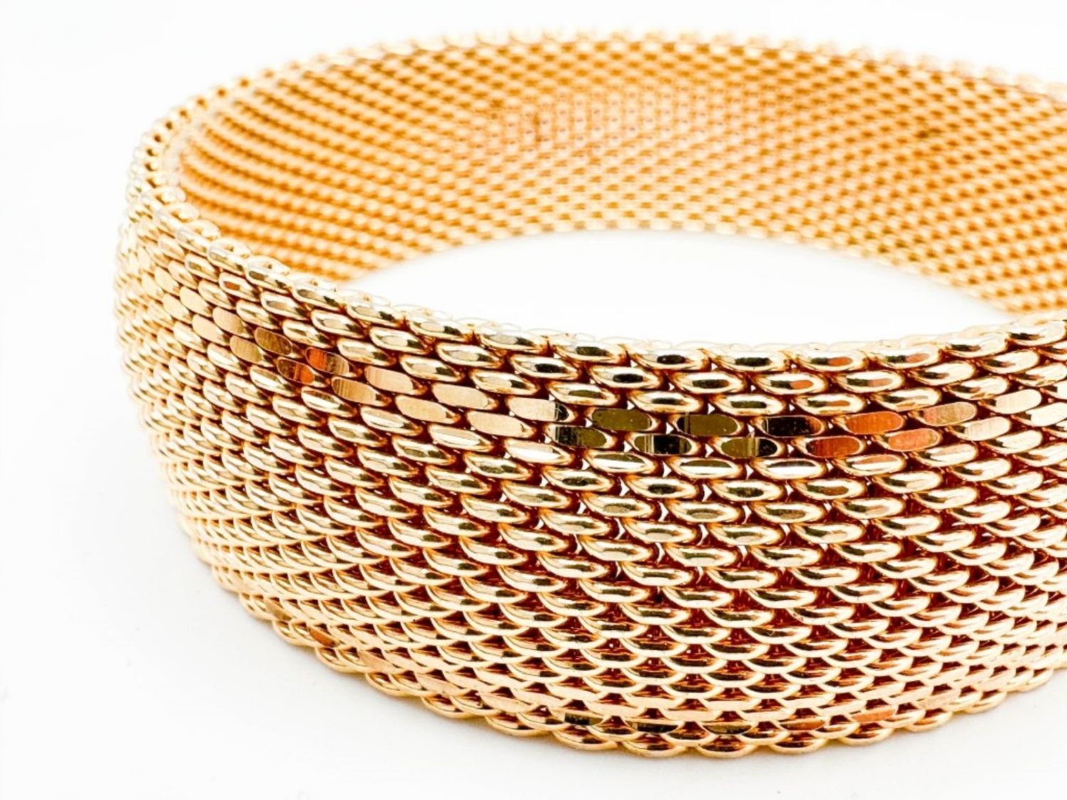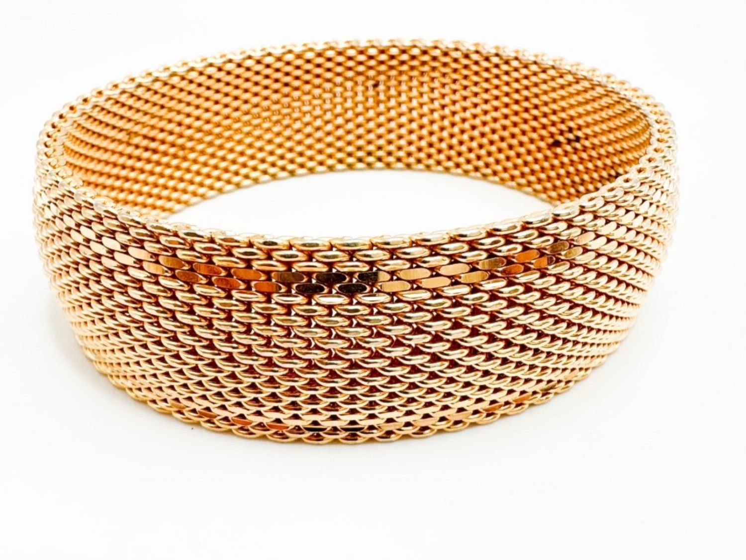 GOLD TONE FOIL MESH BRACELET WITH INSET RINGS ON OUTER EDGES