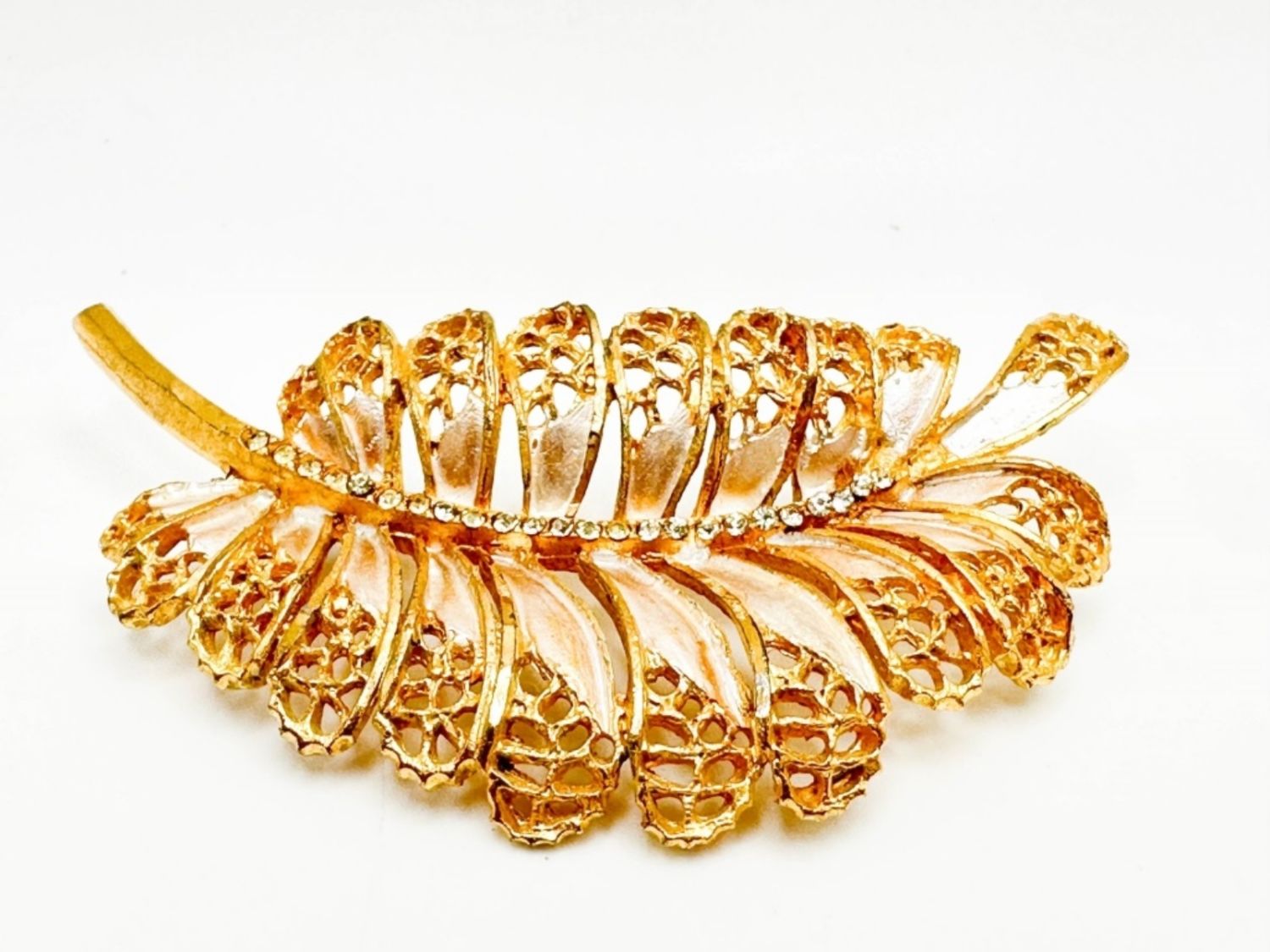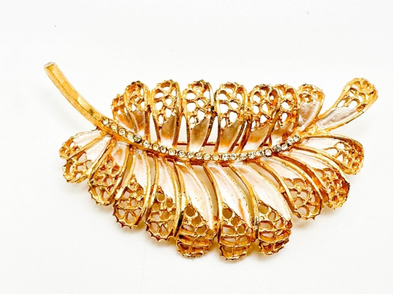 BSK SIGNED BROOCH WITH STONES ON GOLD TONE