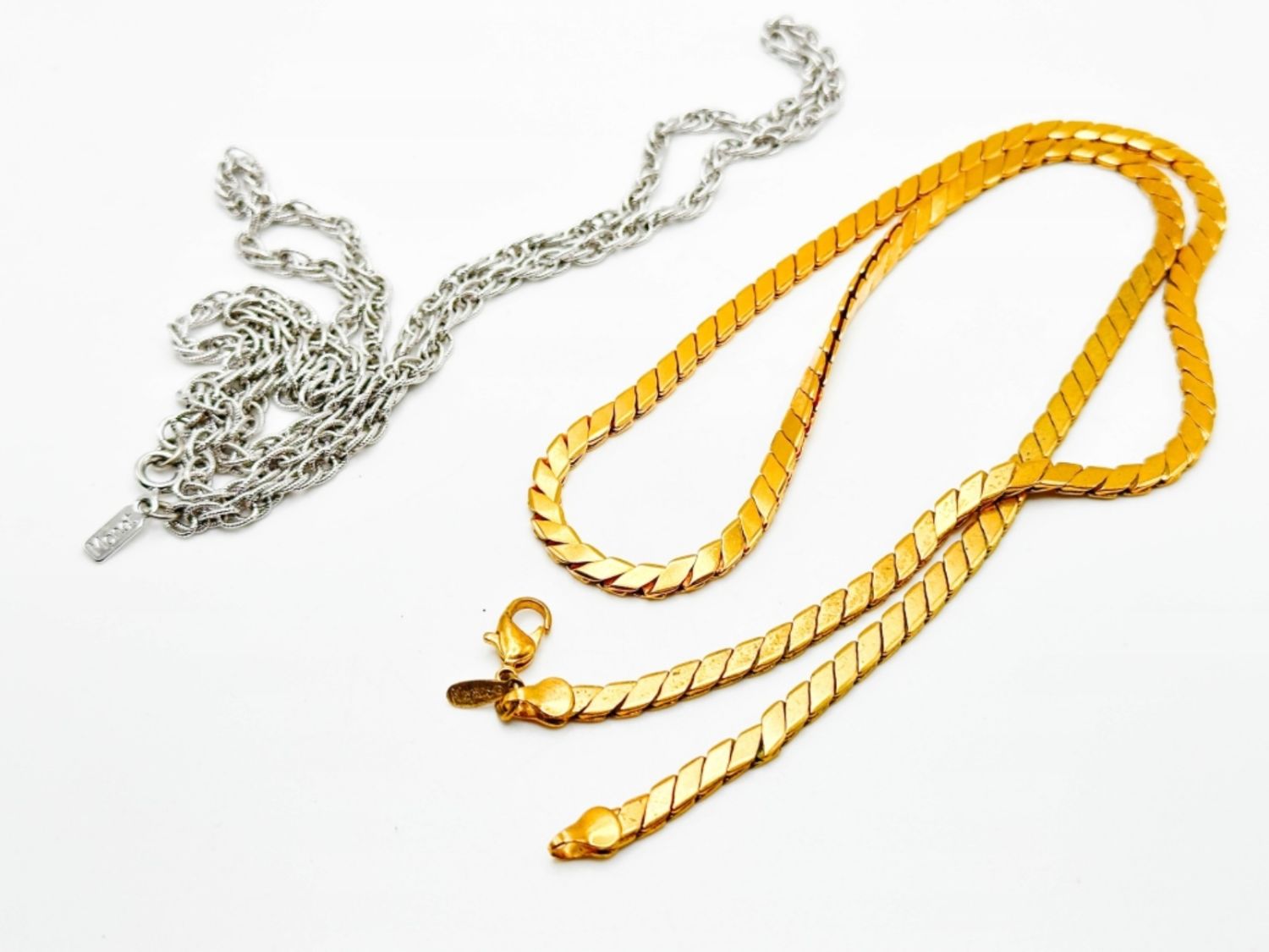 NAPIER SIGNED NECKLACE GOLD TONES, MONET NECKLACE IN SILVER TONE , VINTAGE