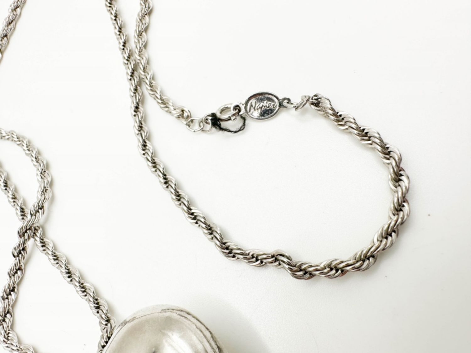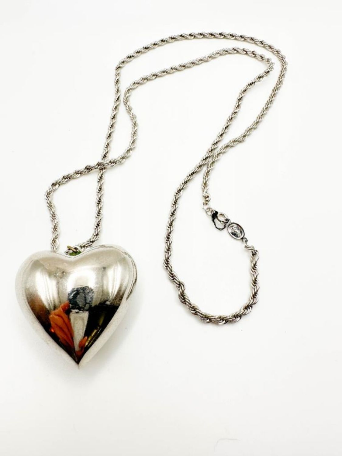 NAPIER HEART NECKLACE, LARGE HEART PENDANT IN SILVER TONE