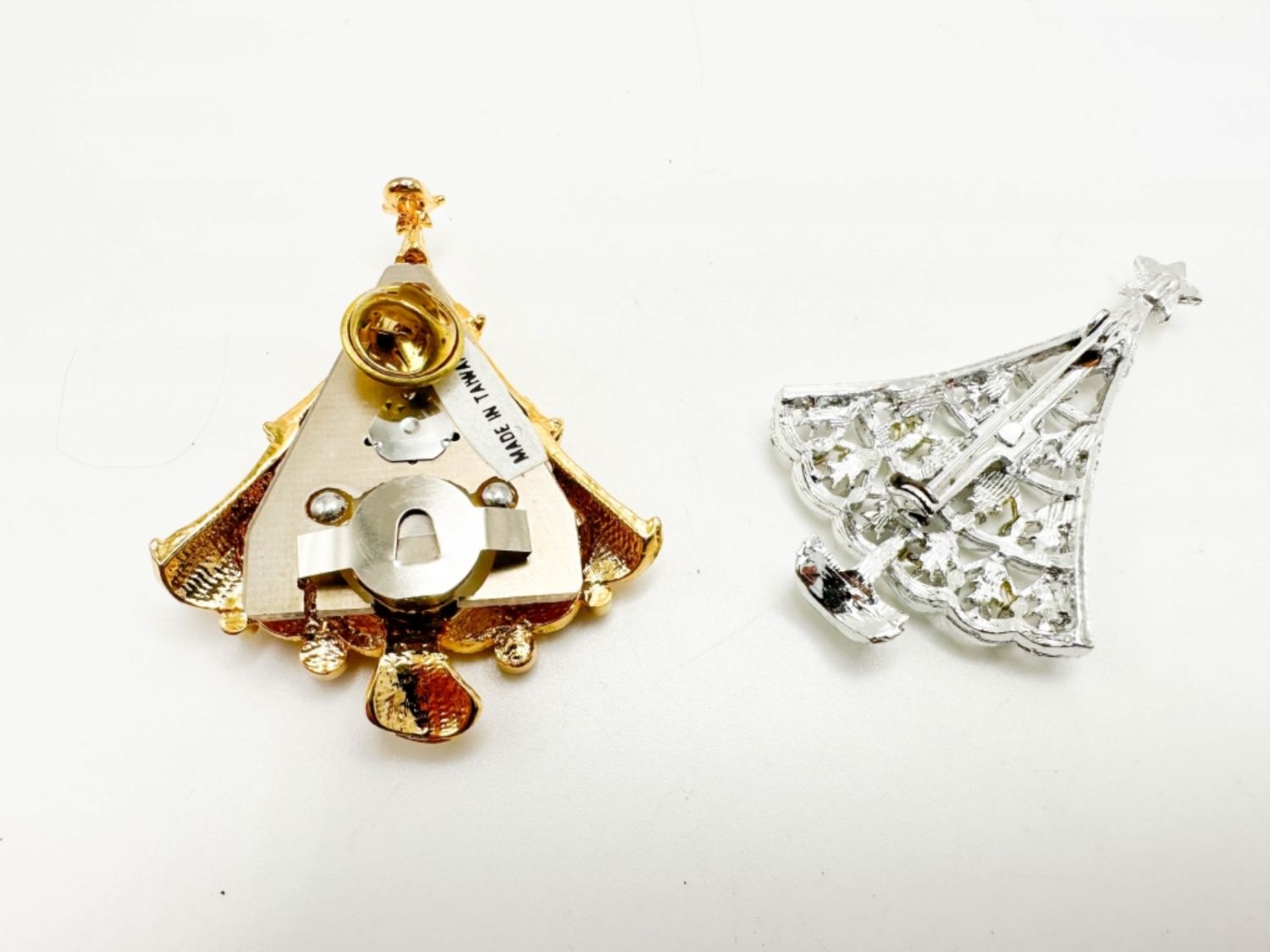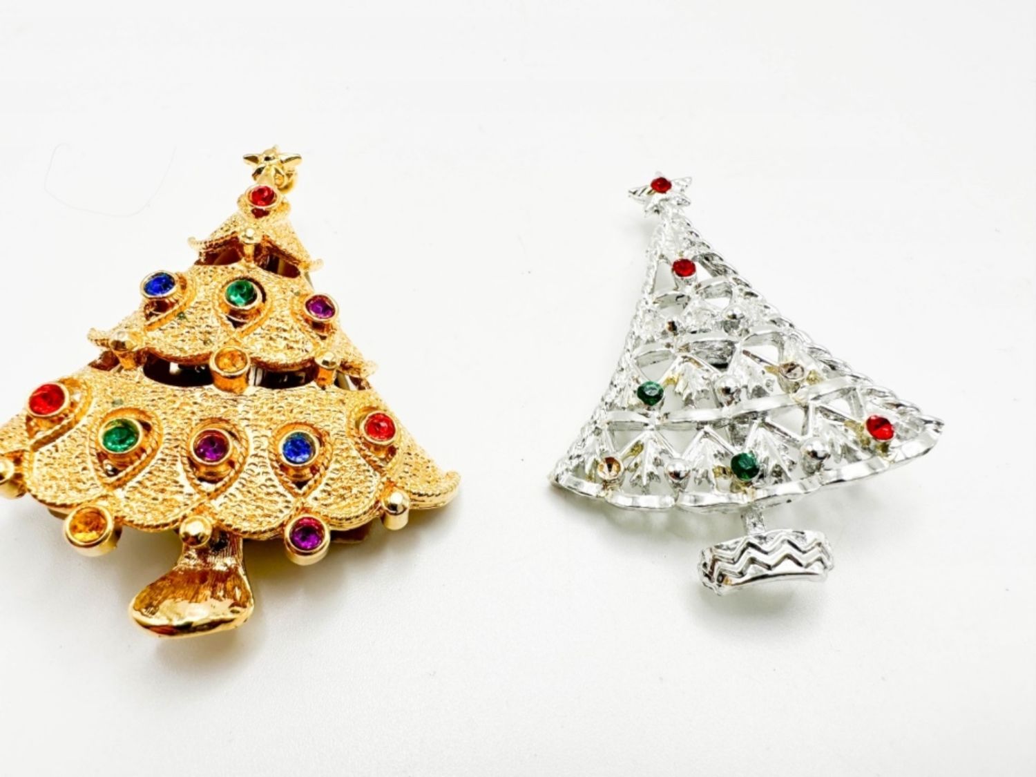 AMAZING CHRISTMAS TREES, GOLD TONE MAY BE MUSIC BOX, SILVER TONE MISSING TINY RED STONE