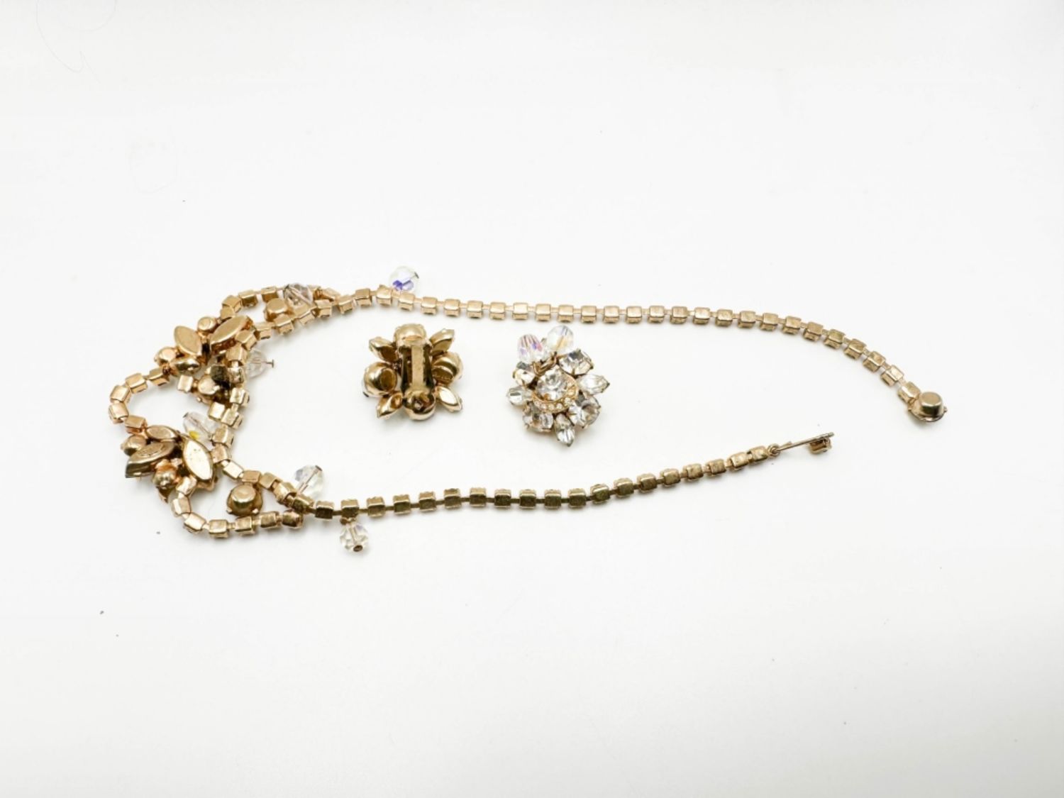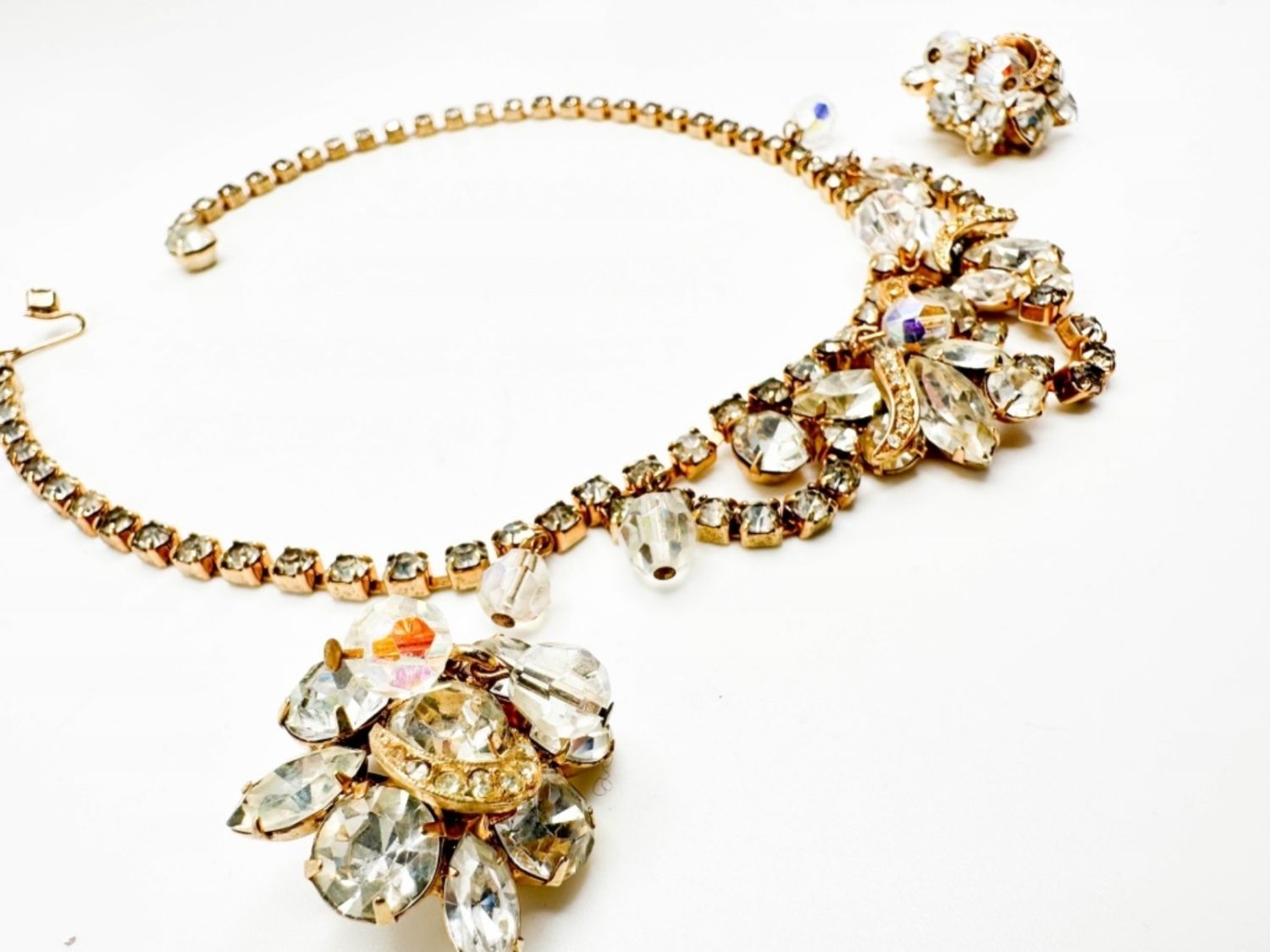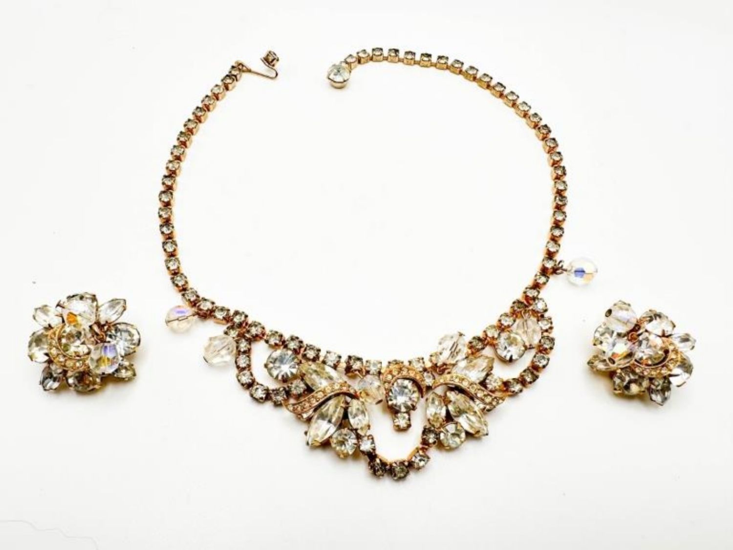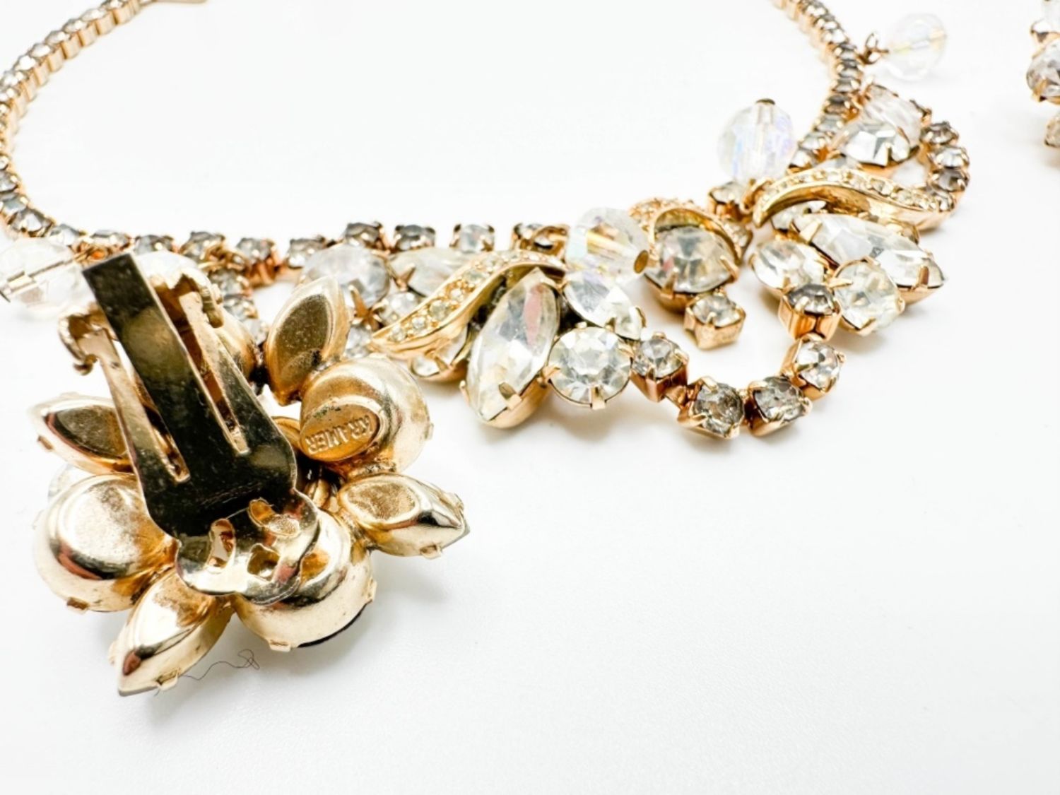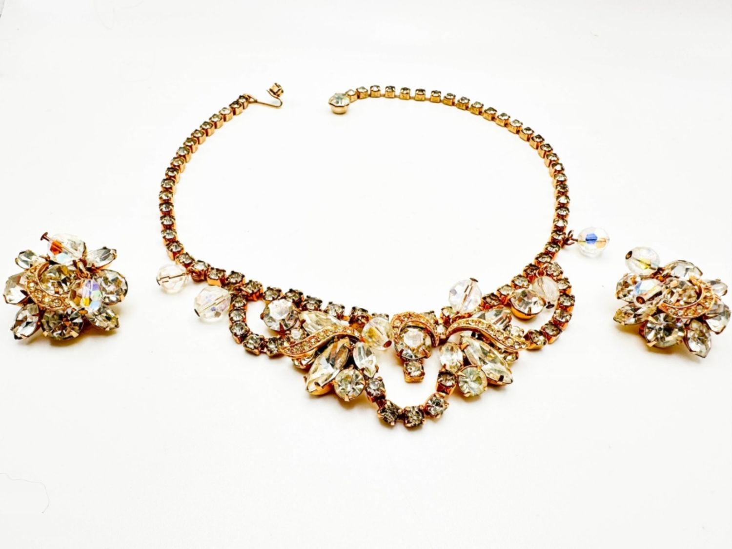 EXQUISITE SIGNED KRAMER VINTAGE EARRINGS AND NECKLACE SET WITH STONES ,LARGE AND SMALL STONE , AMAZING !!!