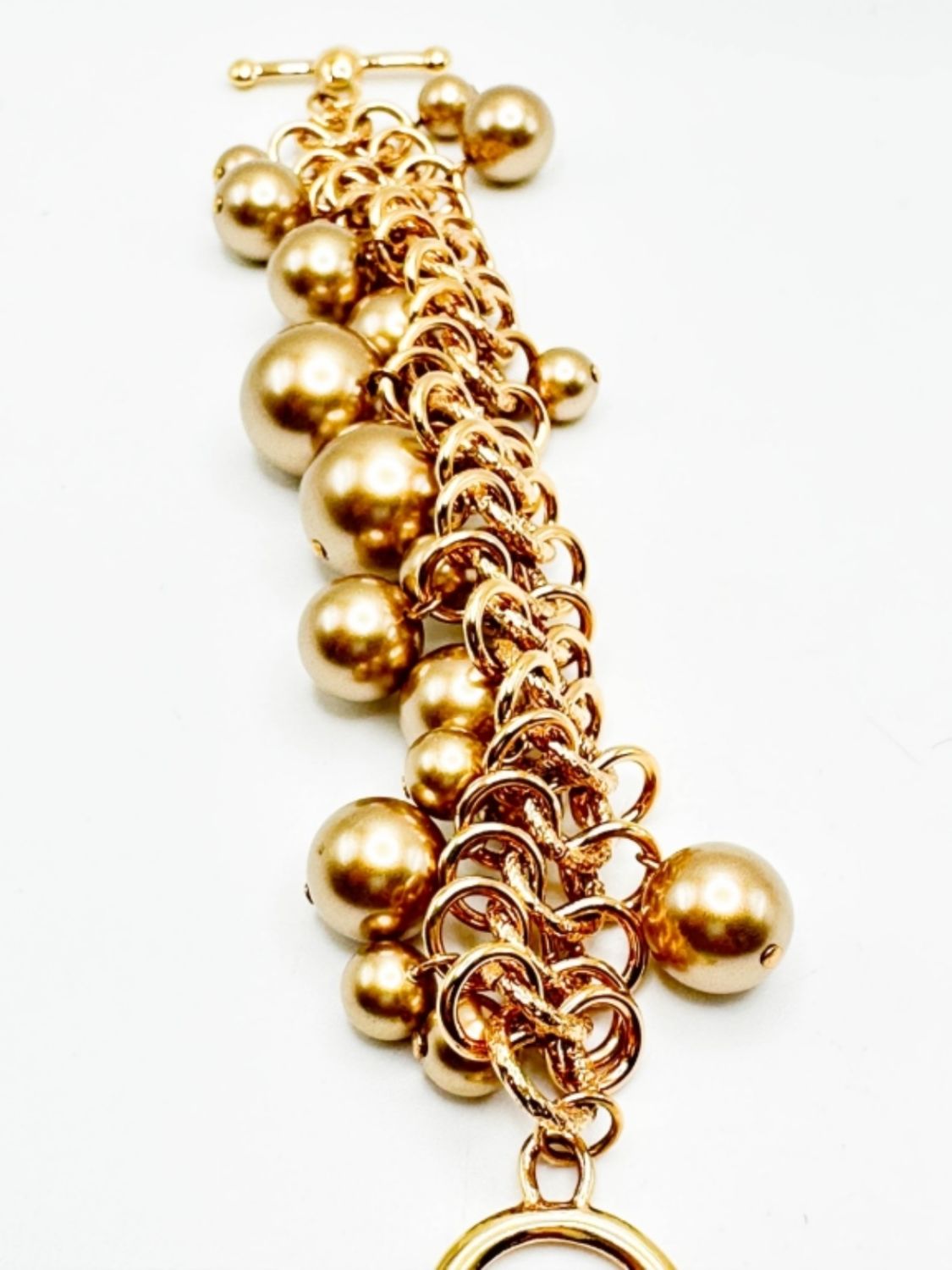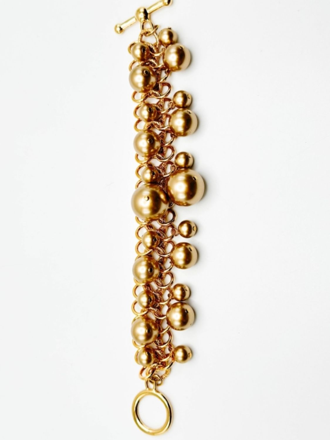 KJL SIGNED BEAD AND CHAIN LINK BRACELET IN GOLD TONE, VINTAGE TIMELESS DESIGNER KJL