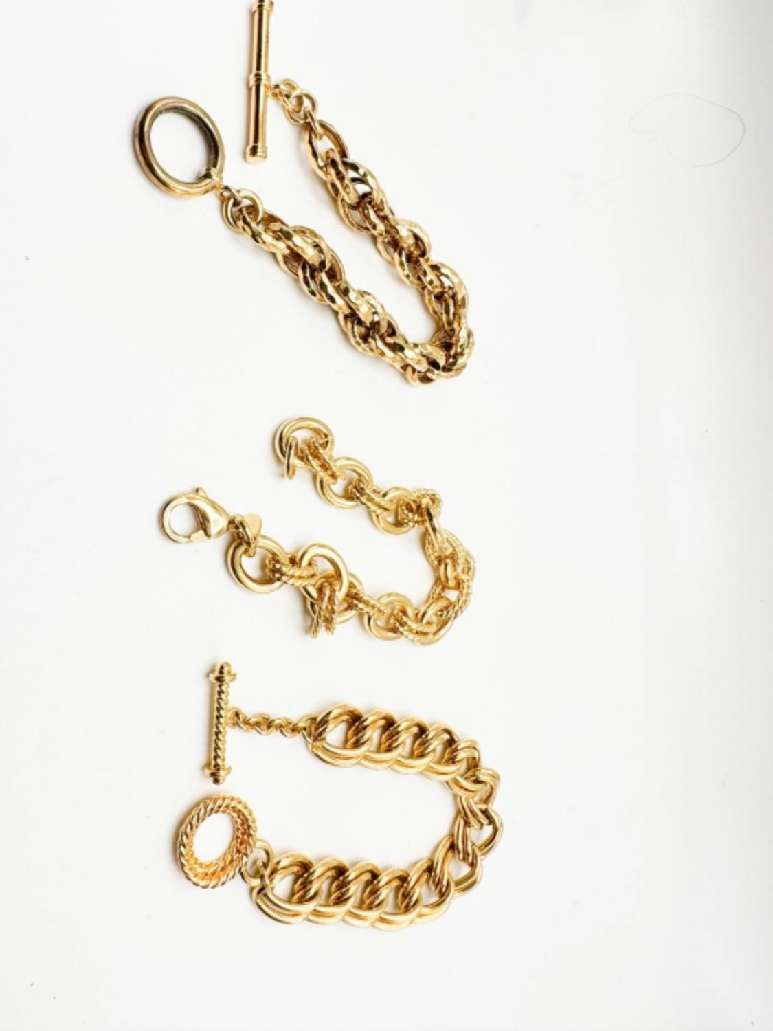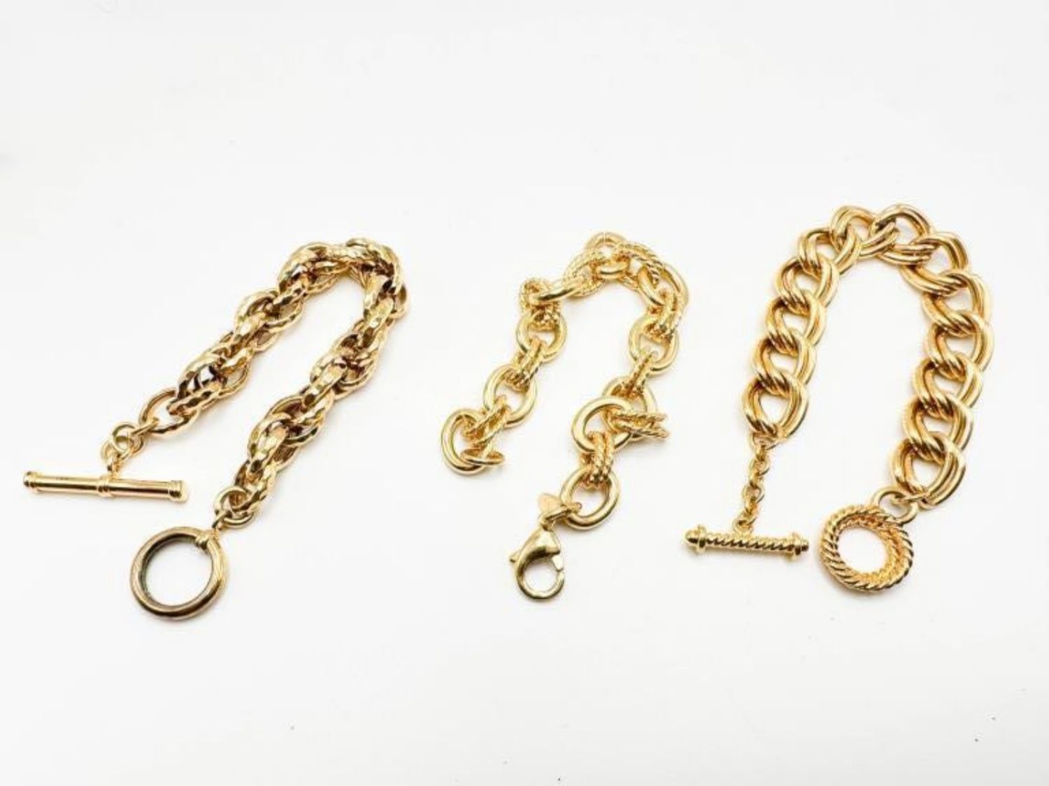 3 HEAVY LINK CHAIN BRACELETS IN GOLD TONES