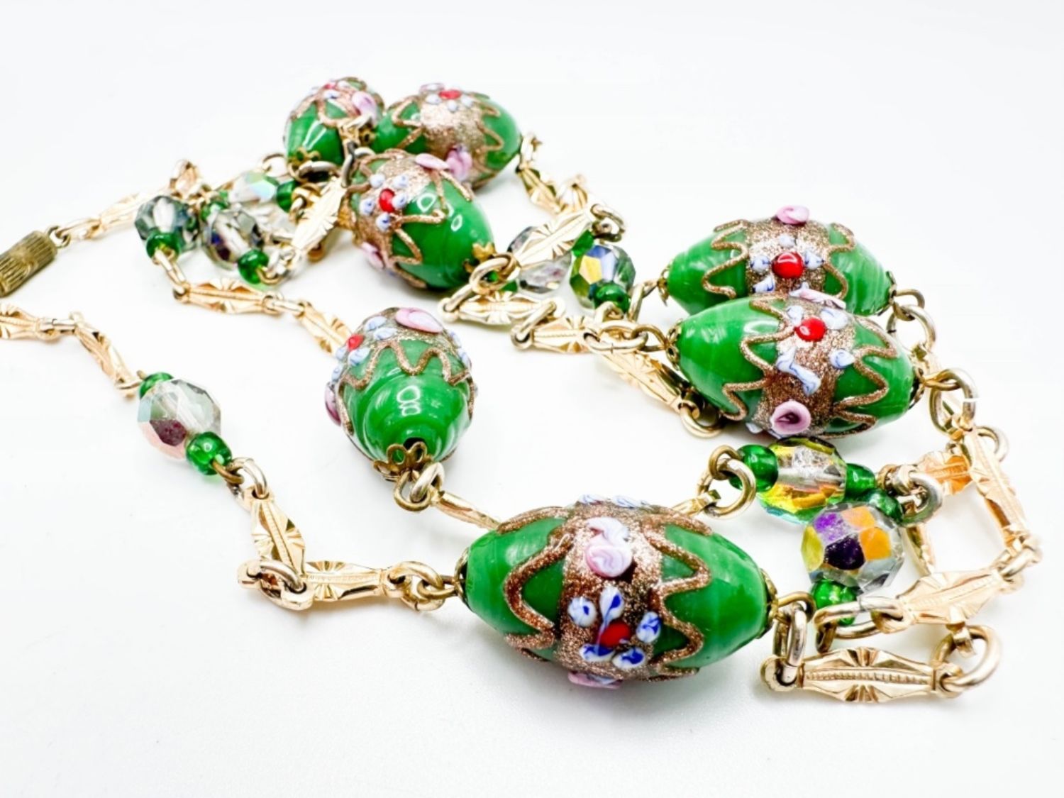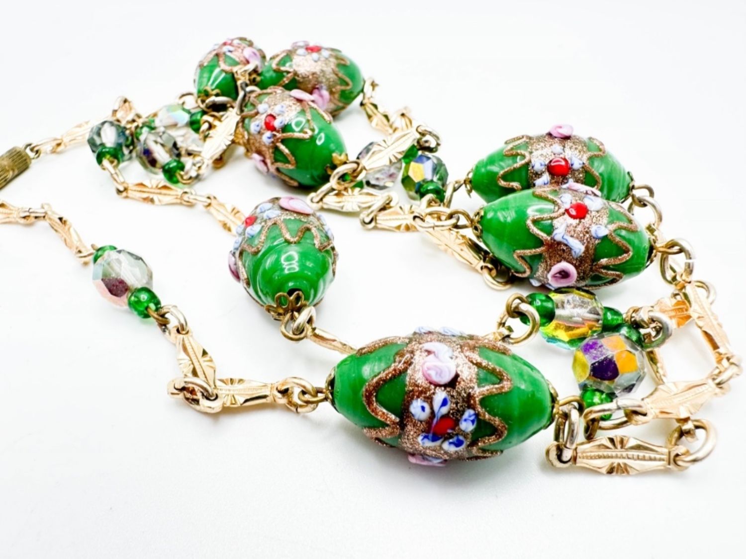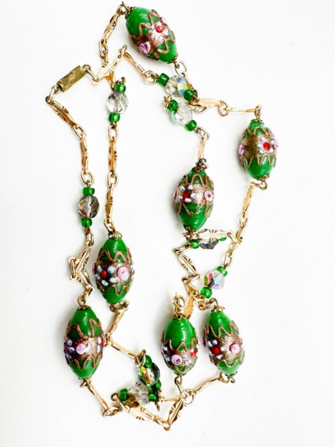 GREEN NECKLACE WITH HEAVY COLOR DESIGNS