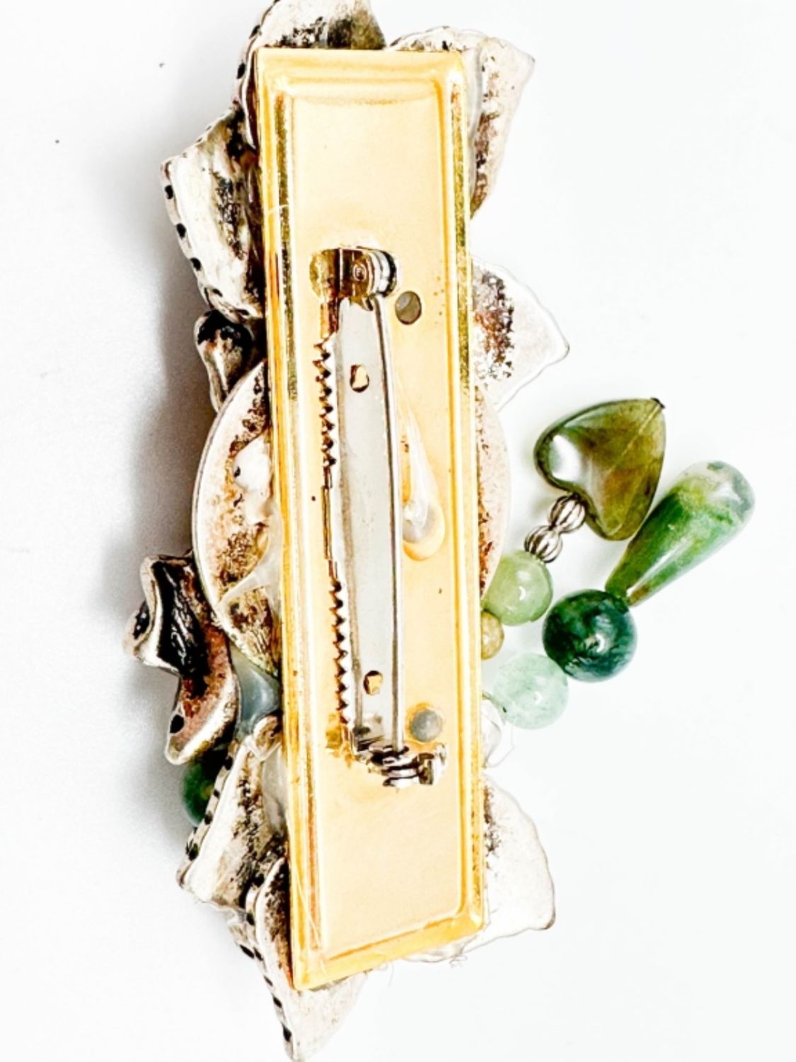 GREEN TONES LEAF BROOCH WITH DANGLES