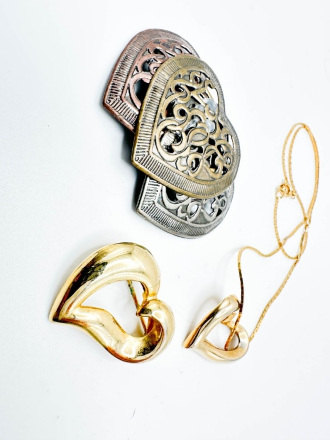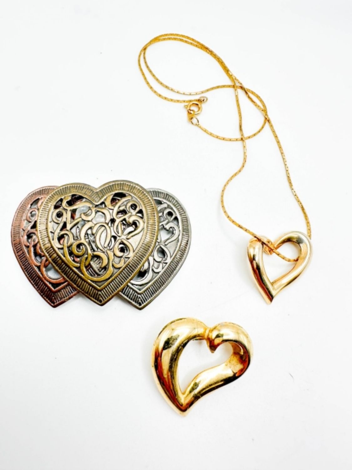 HEARTS BROOCH AND 2 OTHER HEARTS , 1 BROOCH, 1 NECKLACE