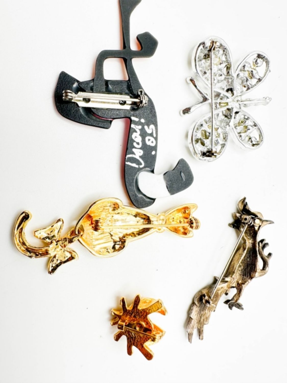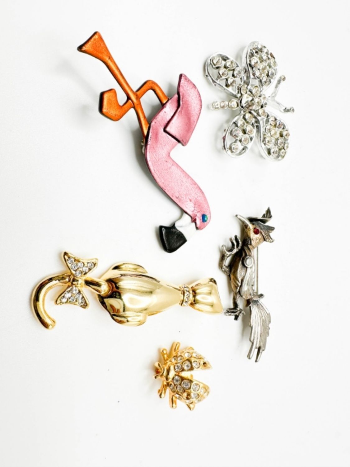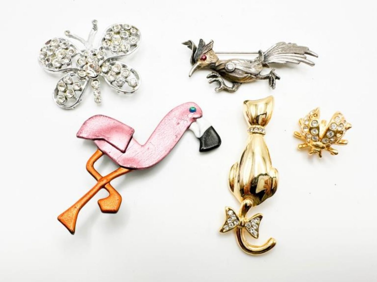 STONE BROOCHES, CAT, BEE, BUTTERFLY AND OTHER BROOCHES , BIRD , FLAMINGO
