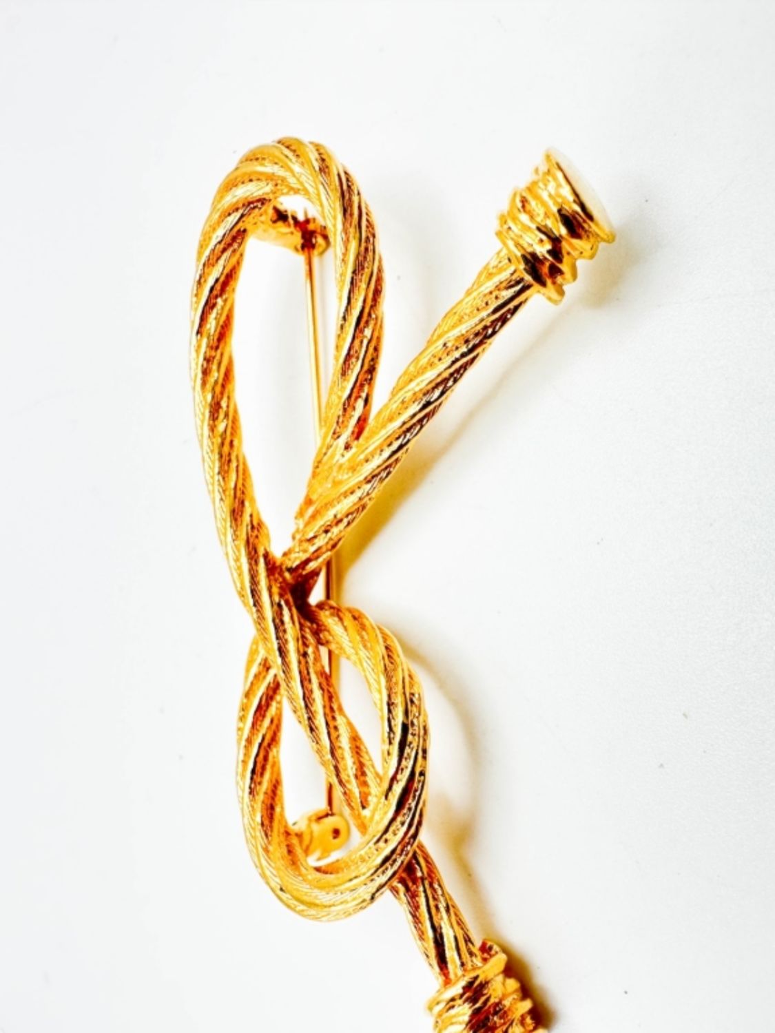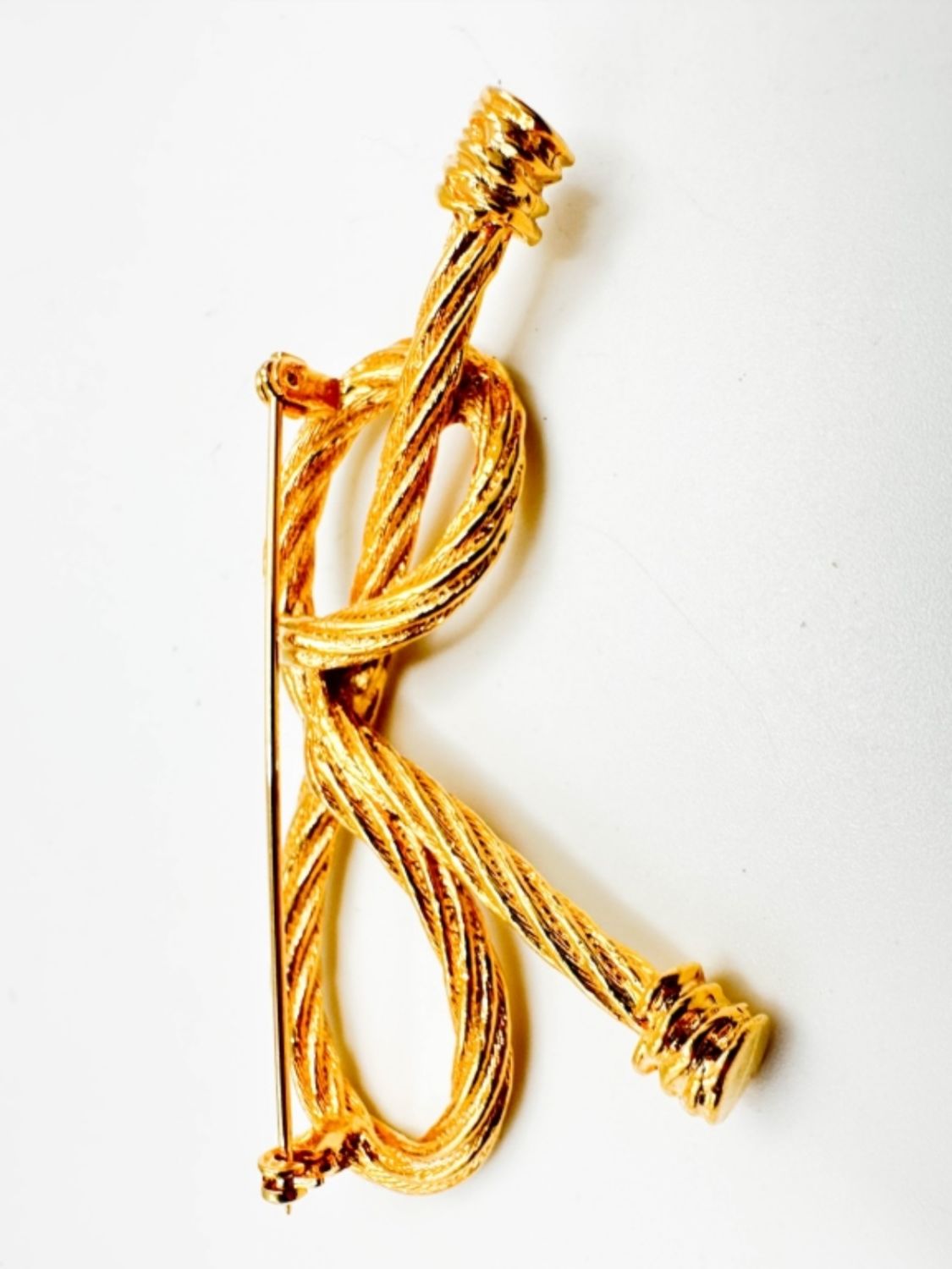 LARGE GOLD TONE BRAIDEDSWIRLS STYLE BOW BROOCH