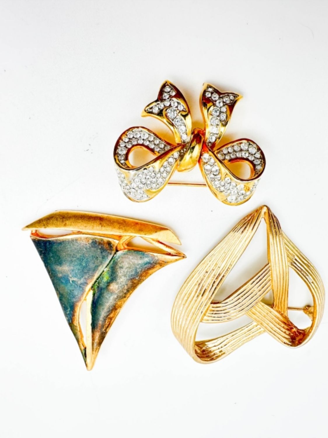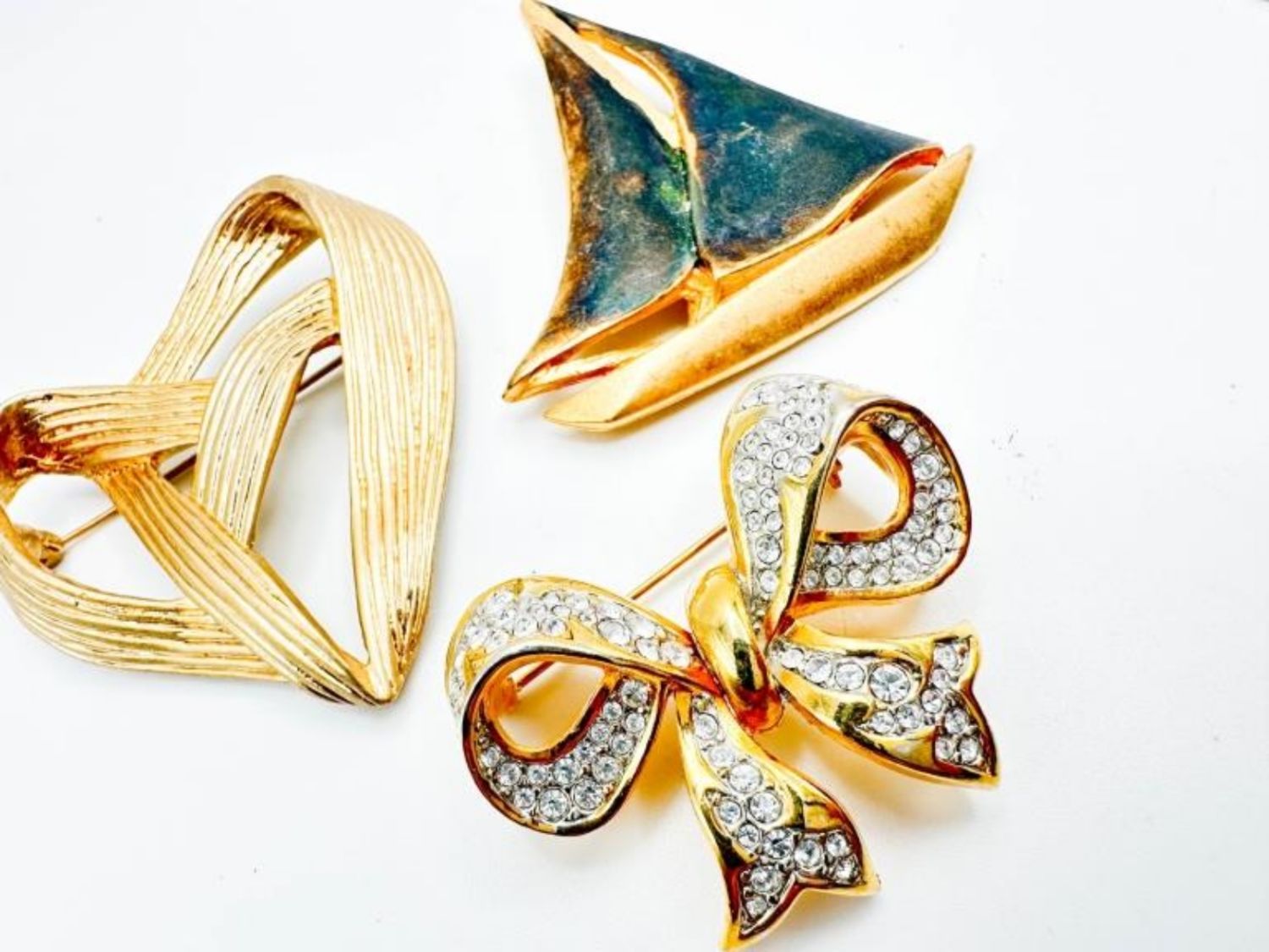 SAILBOAT, LIZ CLAIRBORNE HEART, BOW BROOCH WITH STONES