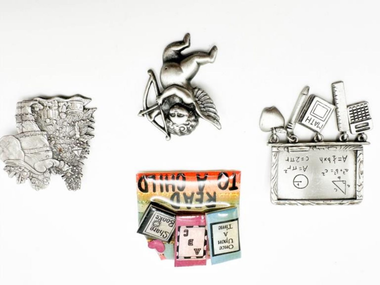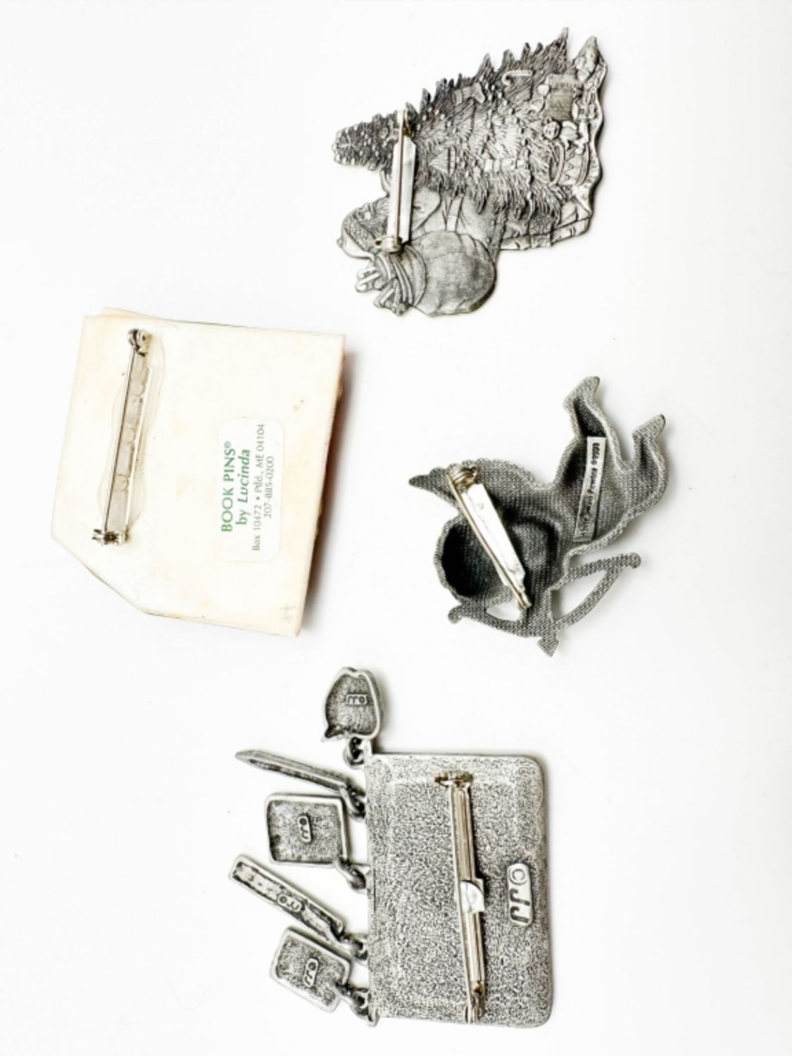 SMALL BROOCH ASSORTMENT, PEWTER AND MORE